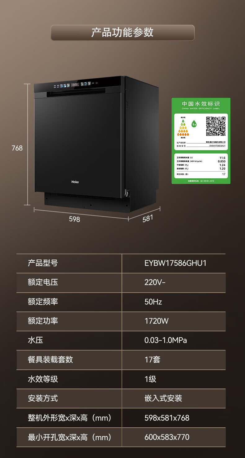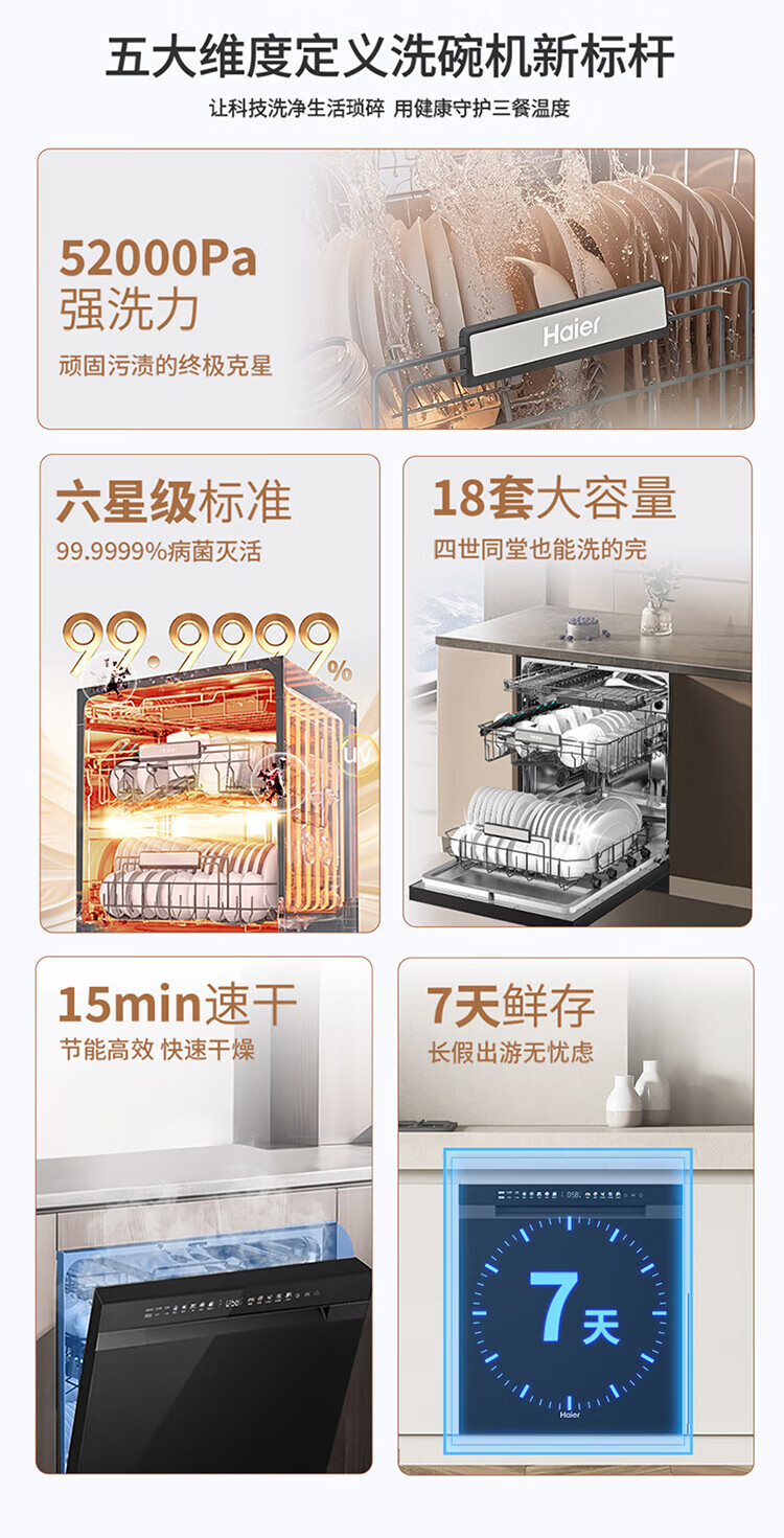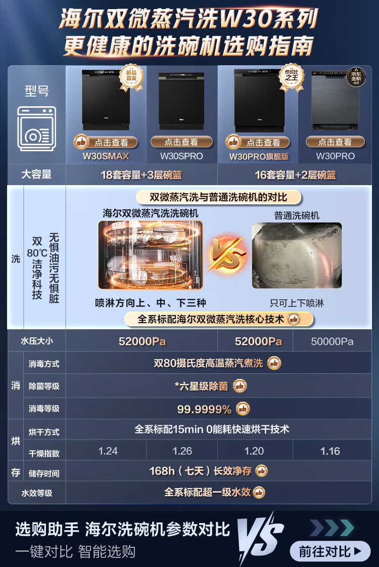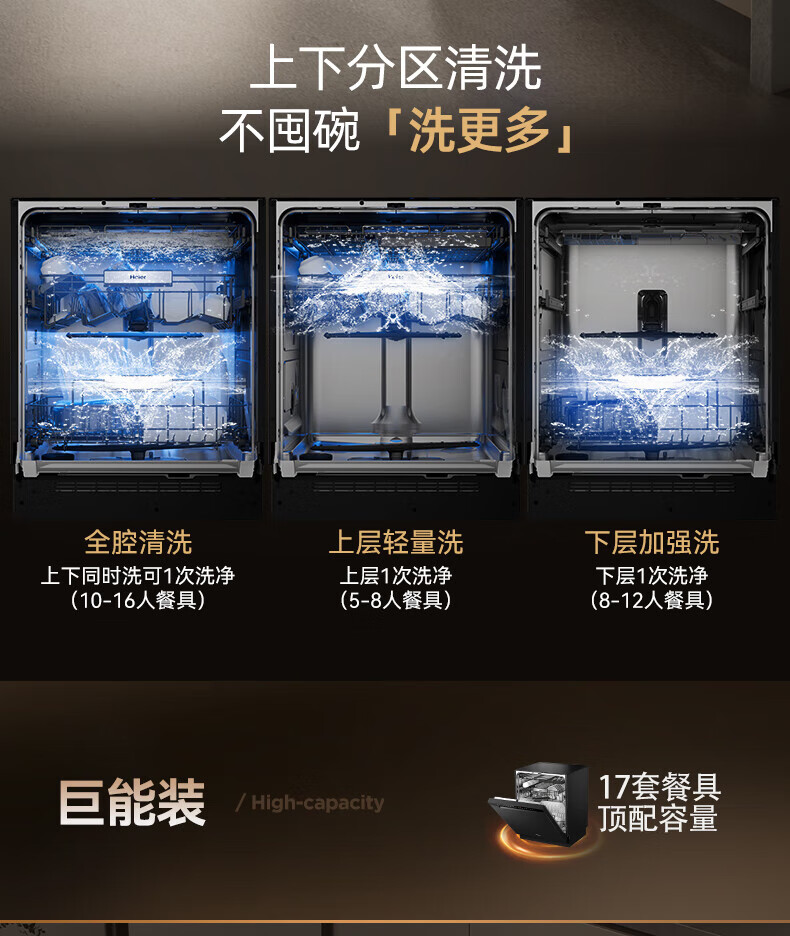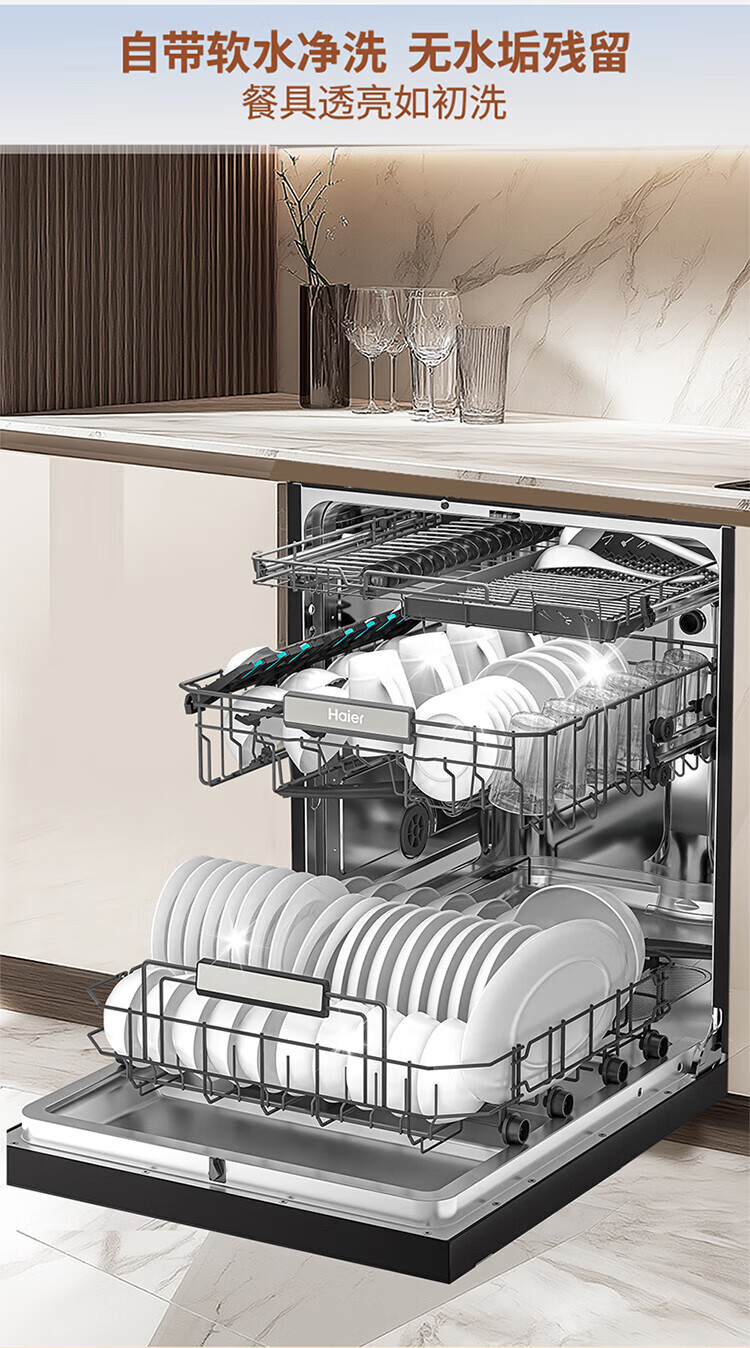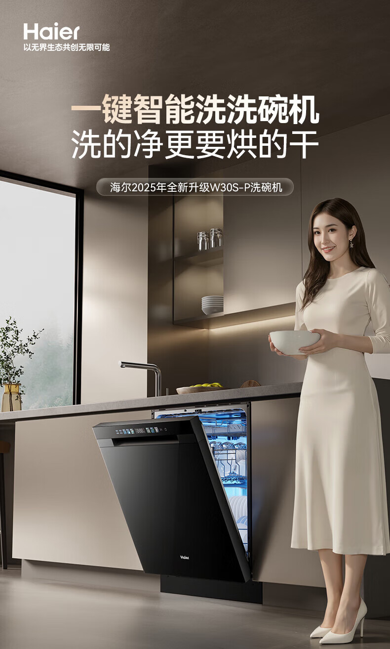 海尔洗碗机w30升级嵌入式家用高端大容量17套大容量一级水效母婴级抗菌全自动开门烘干洗消烘存一体 【常规仓17套+3层】六星级消杀W30S-P