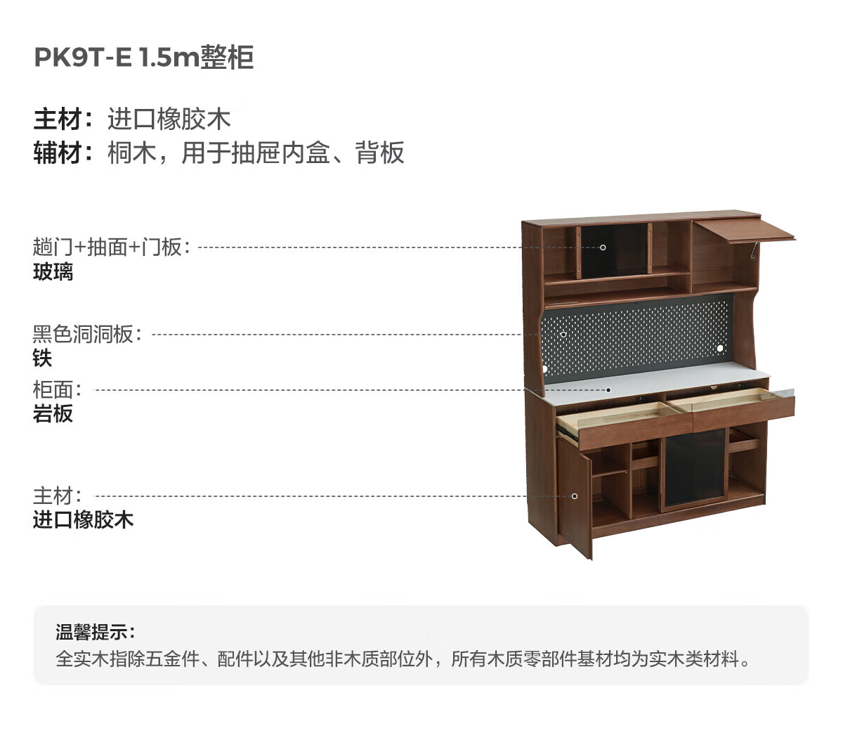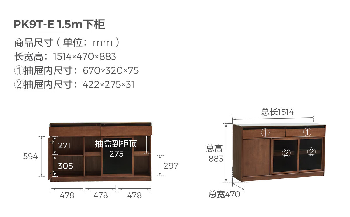 林氏家居实木餐边柜靠墙一体储物柜客厅置物柜子2025新款小满系列PK9T 【1.5m|下柜】全实木餐边柜