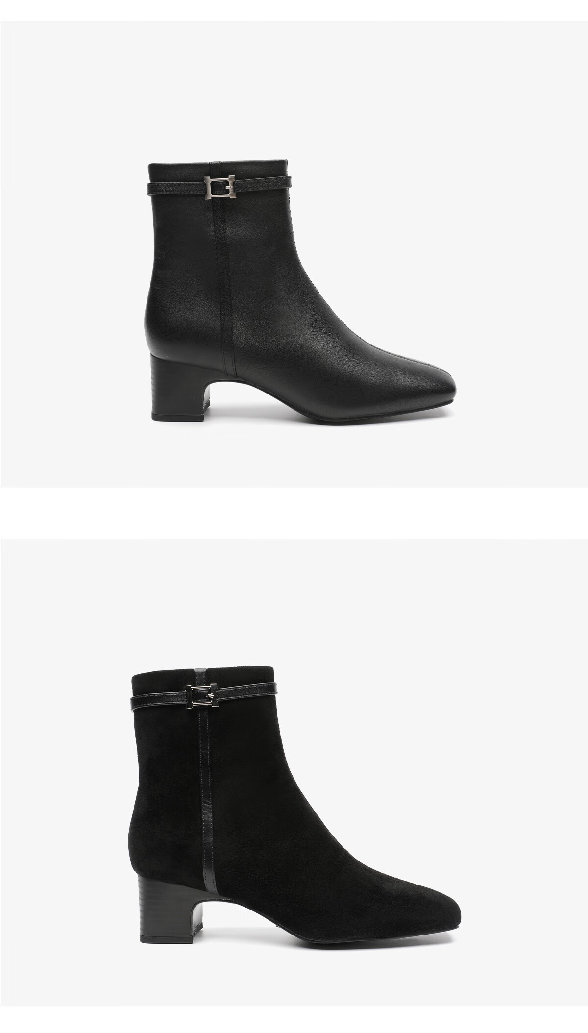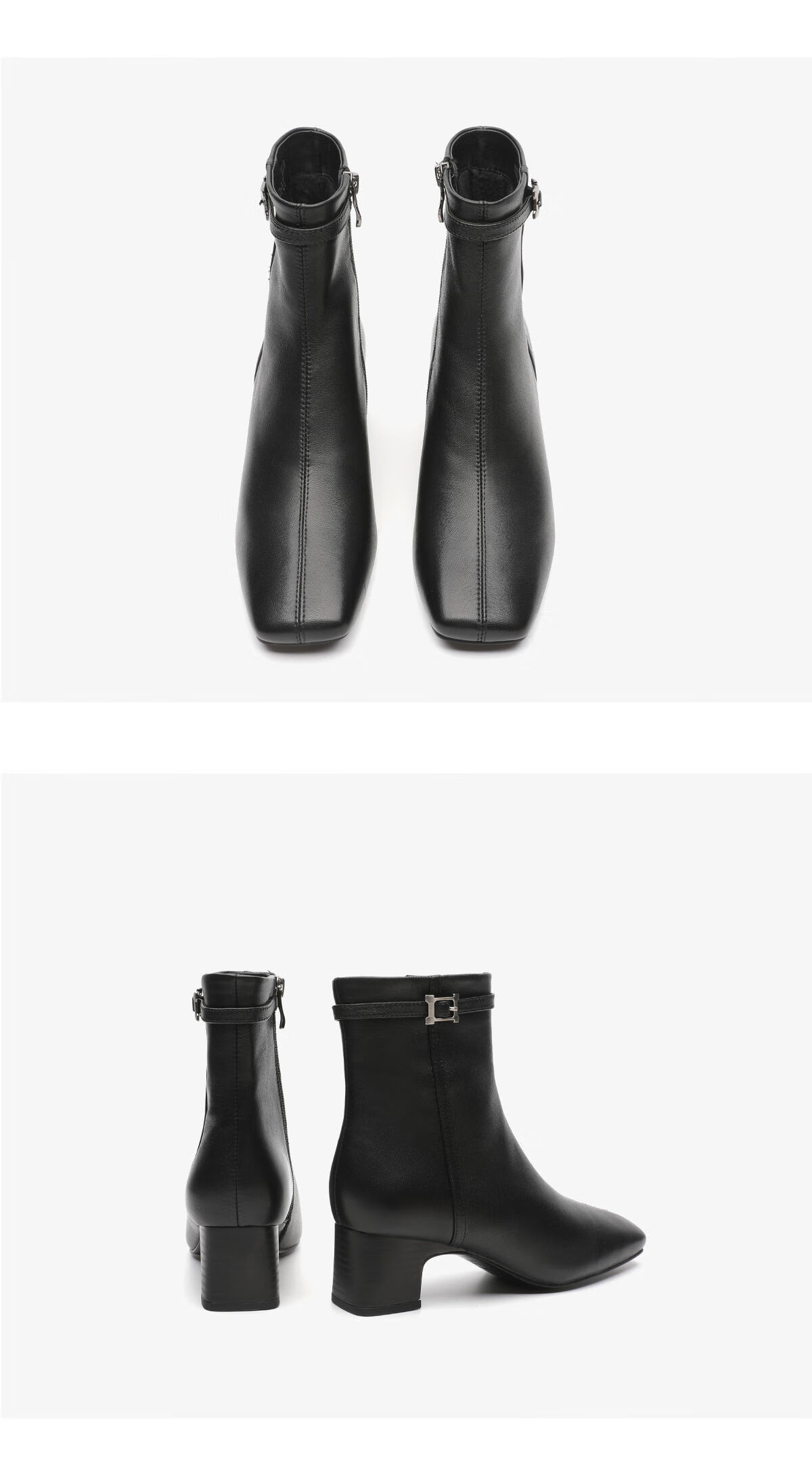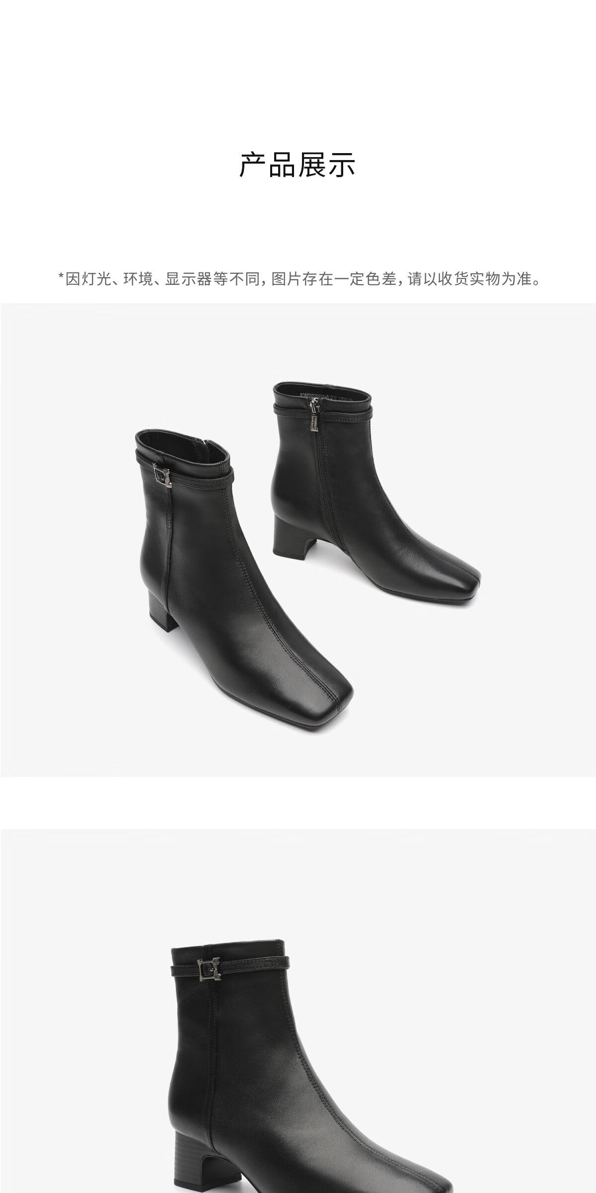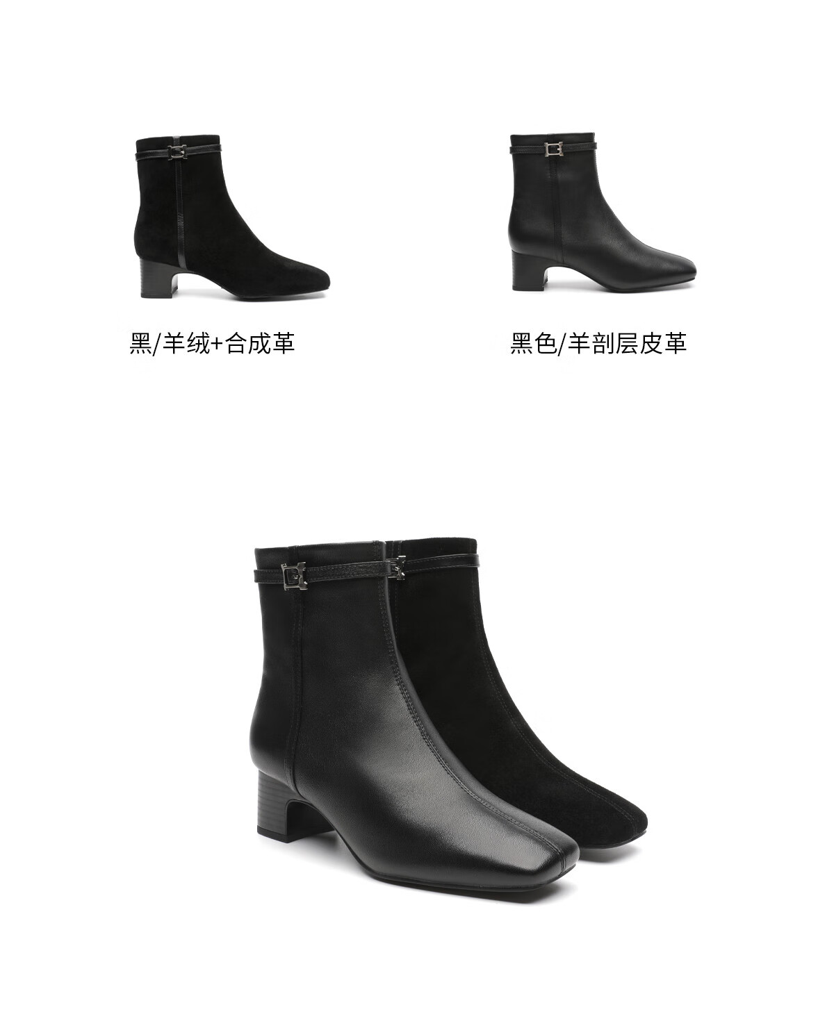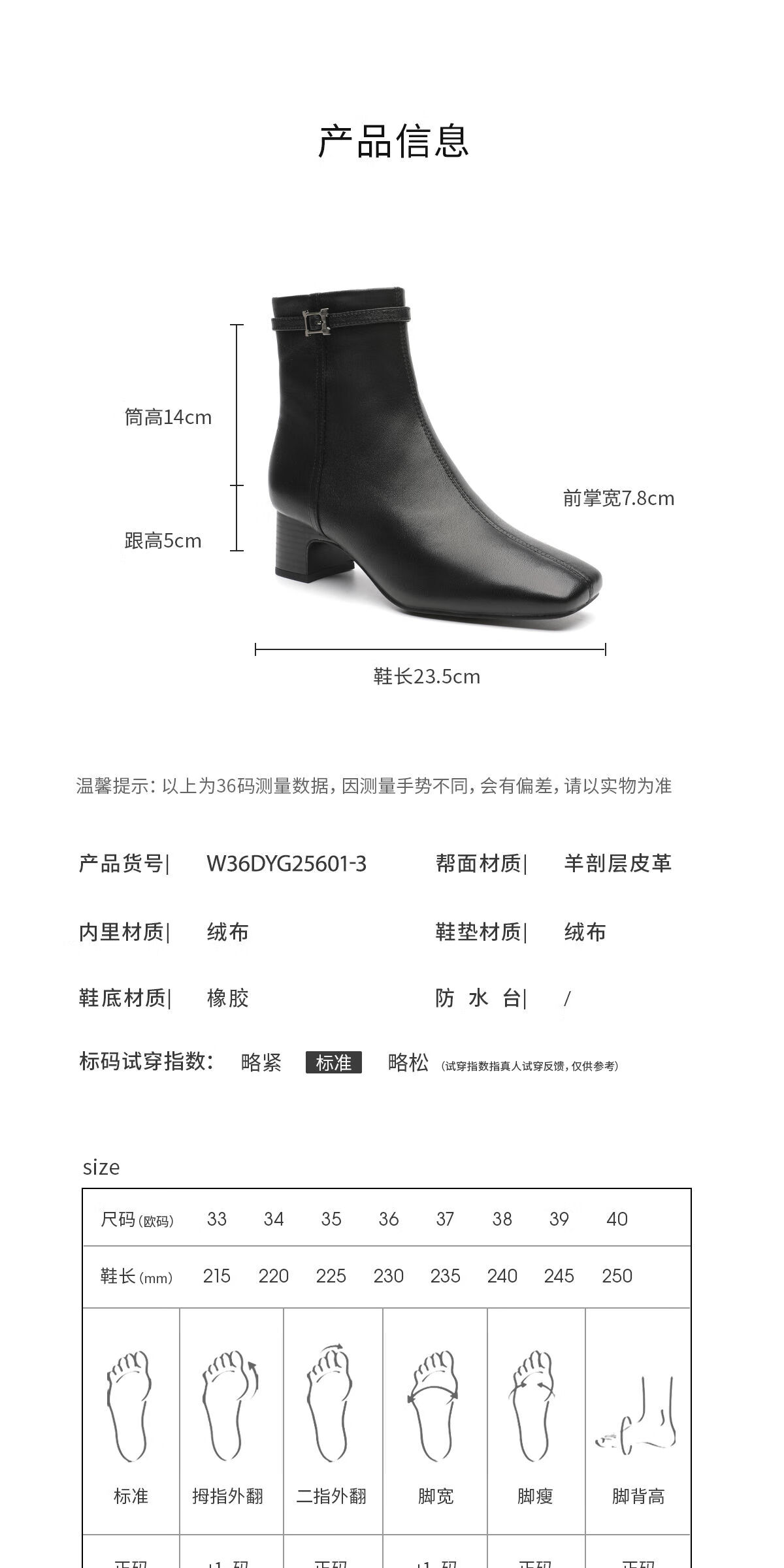 月芽儿方头短靴女2025新款秋冬英伦风高跟鞋马丁靴切尔西女靴 绒里黑色01T 34