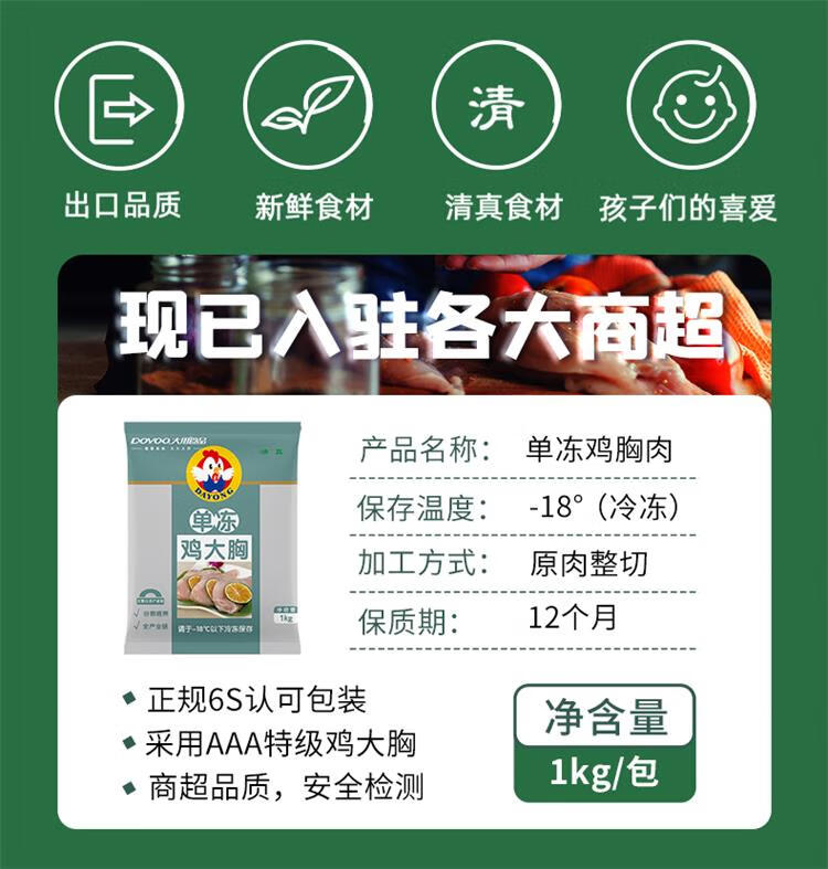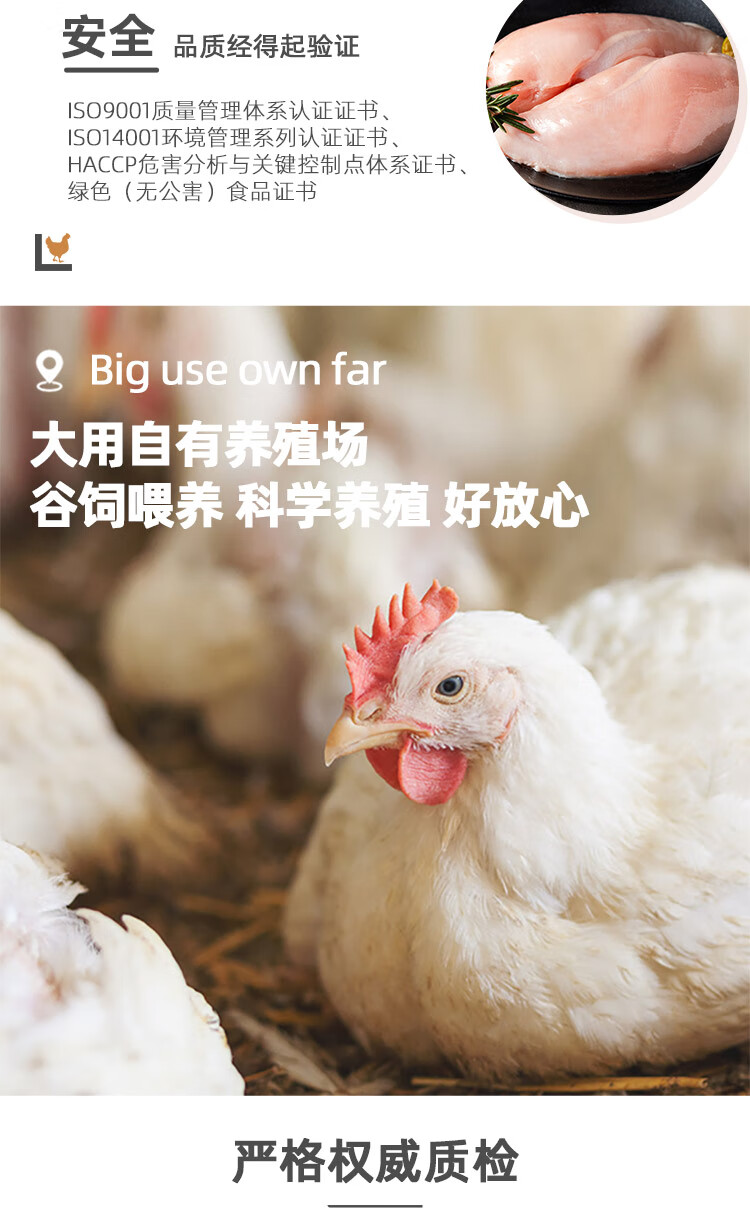 大用单冻鸡大胸 2斤 冷冻生鲜 健身鸡胸肉鸡肉轻食 清真食品 白羽肉鸡