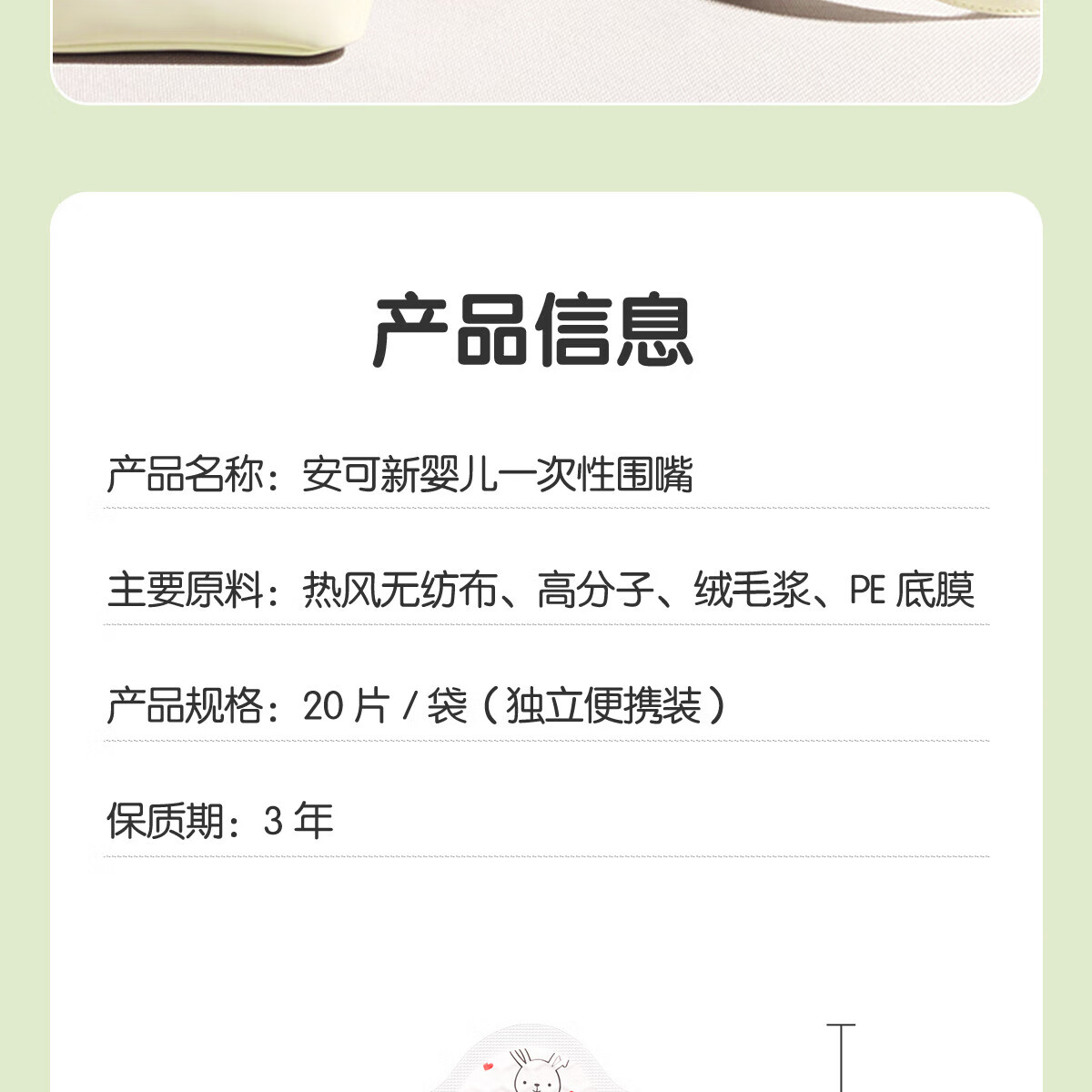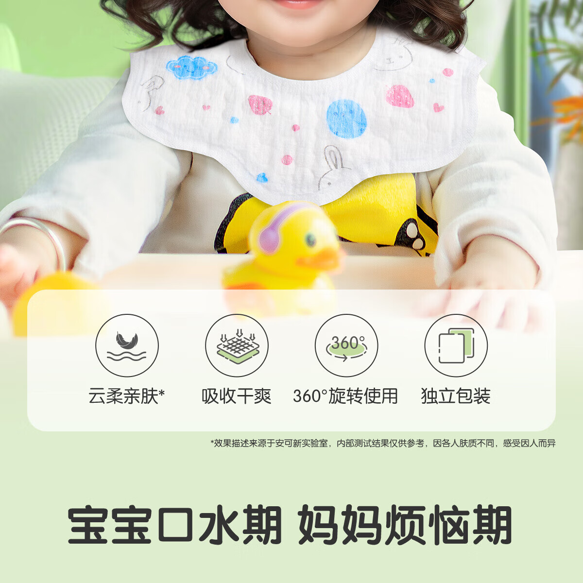 安可新 婴儿一次性口水巾婴幼儿围嘴可旋转免洗围兜独立装兔子款20片