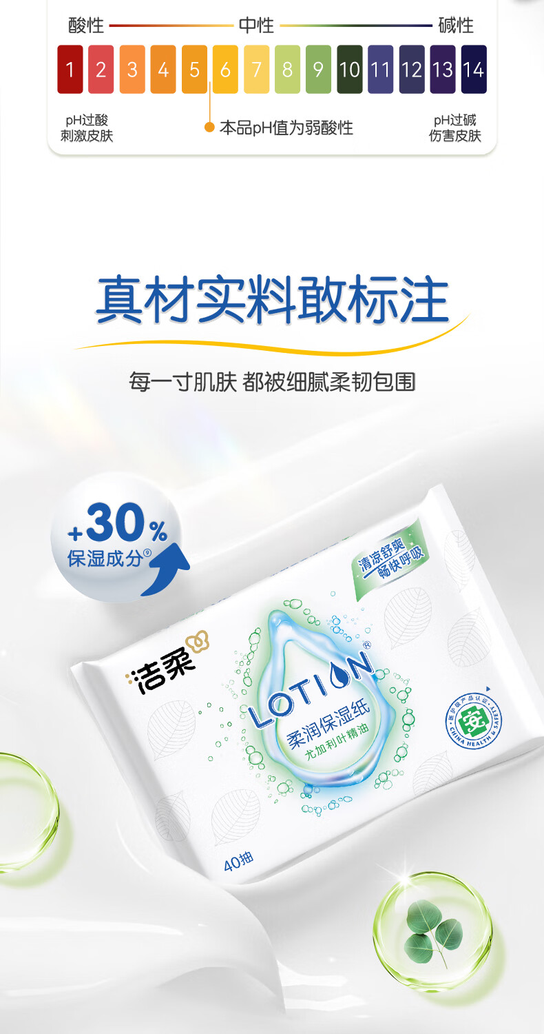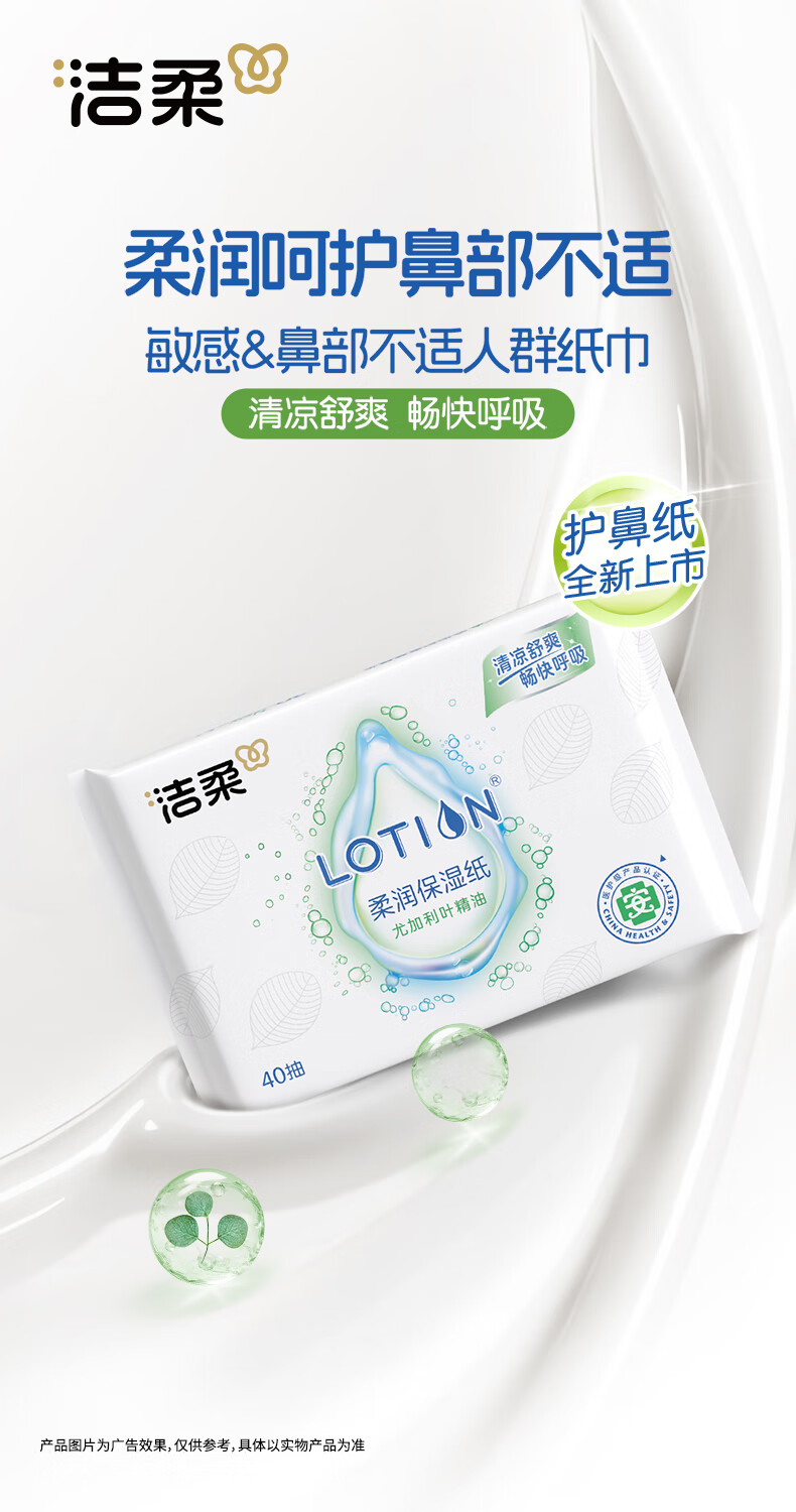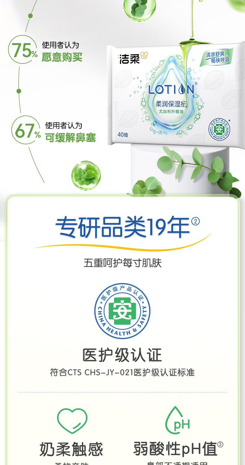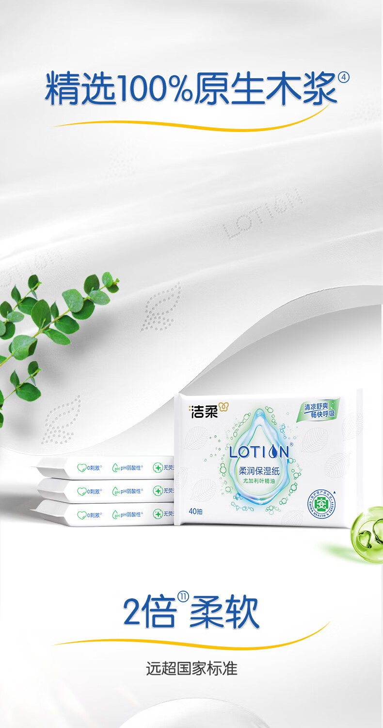 洁柔乳霜纸 Lotion保湿抽纸3层40抽5包 尤加利叶云柔巾 清凉舒爽护鼻