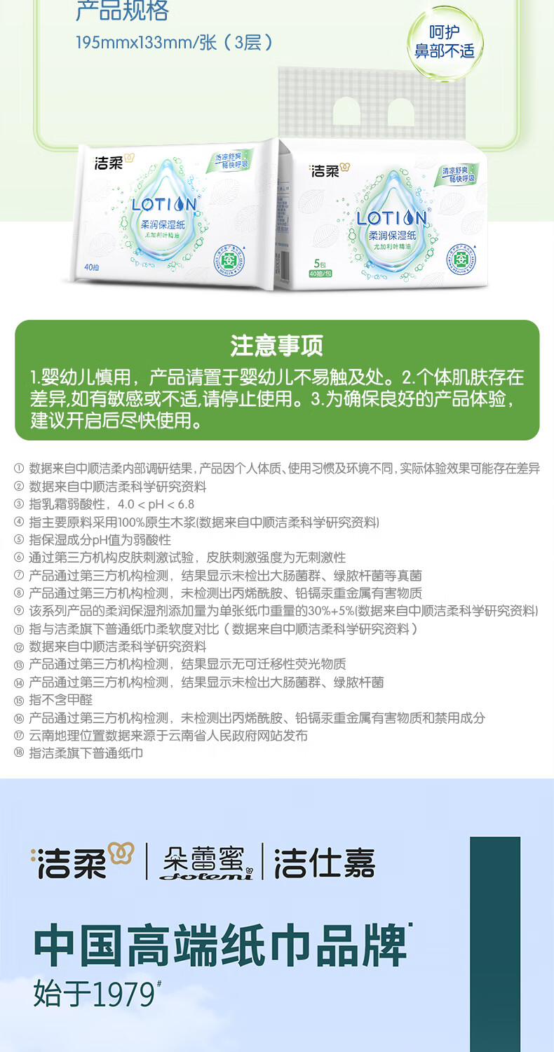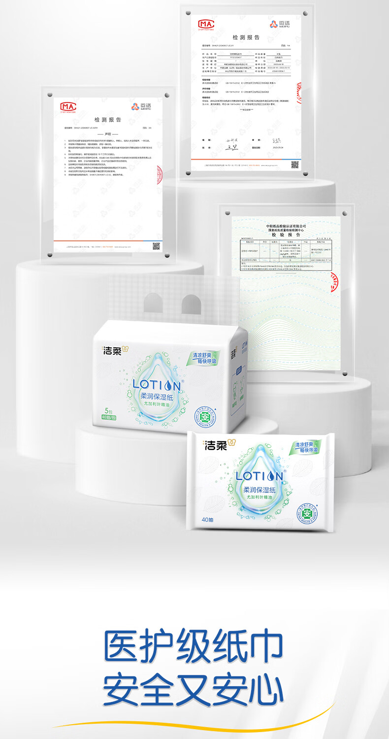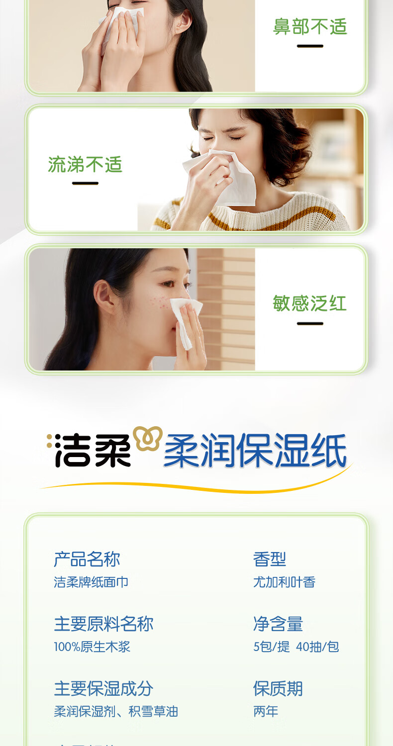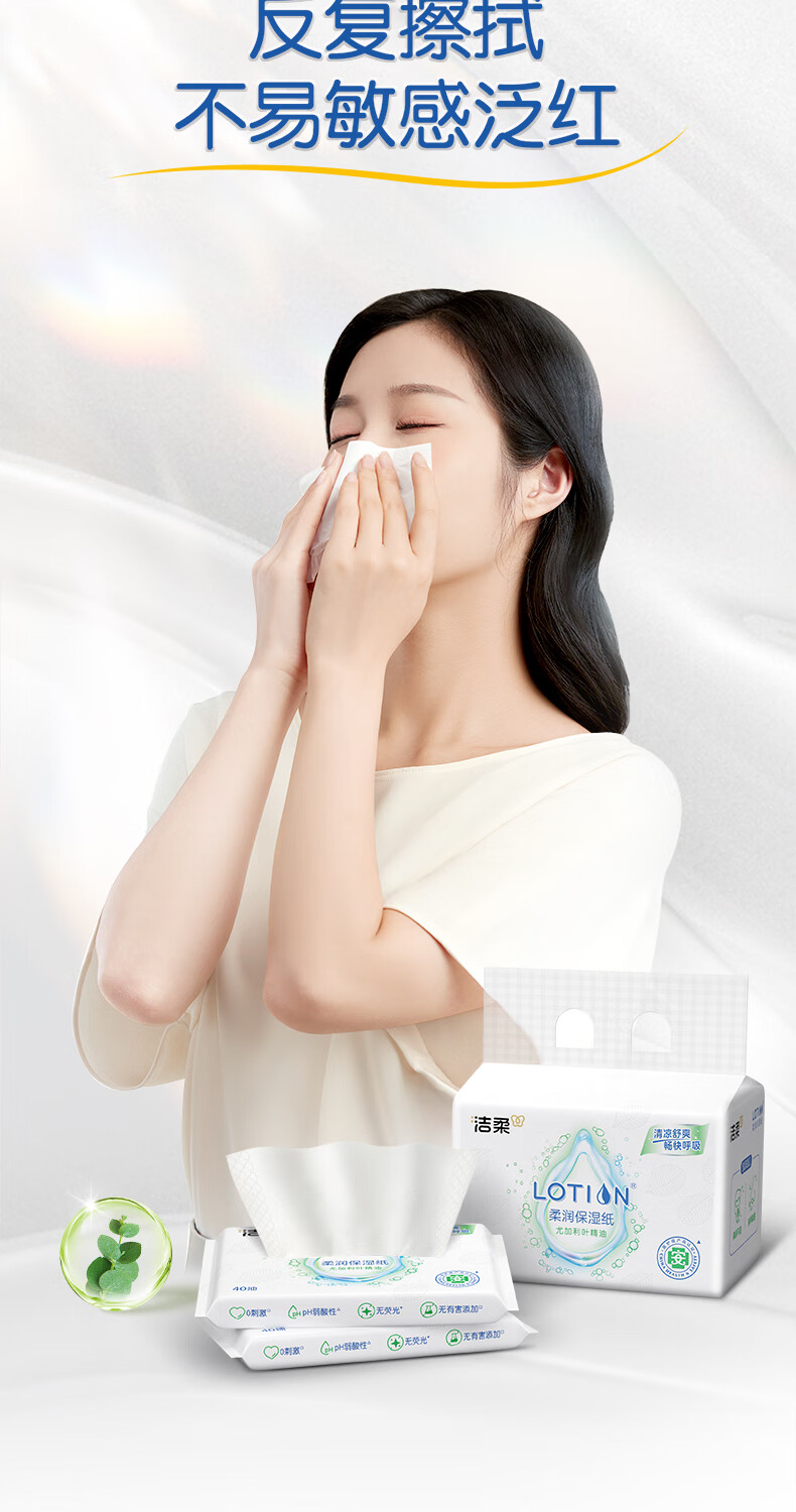 洁柔乳霜纸 Lotion保湿抽纸3层40抽5包 尤加利叶云柔巾 清凉舒爽护鼻