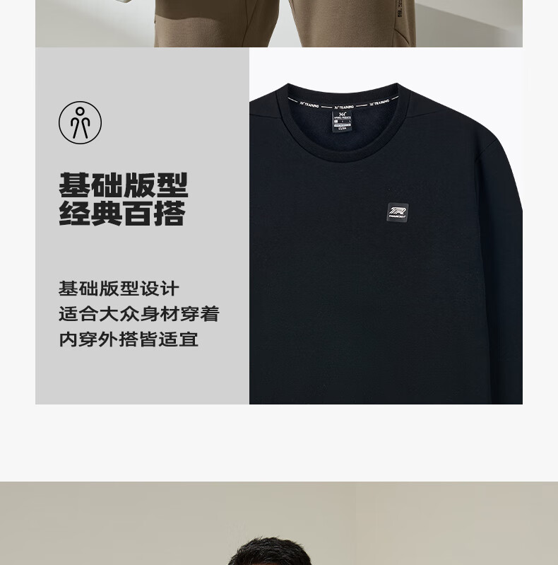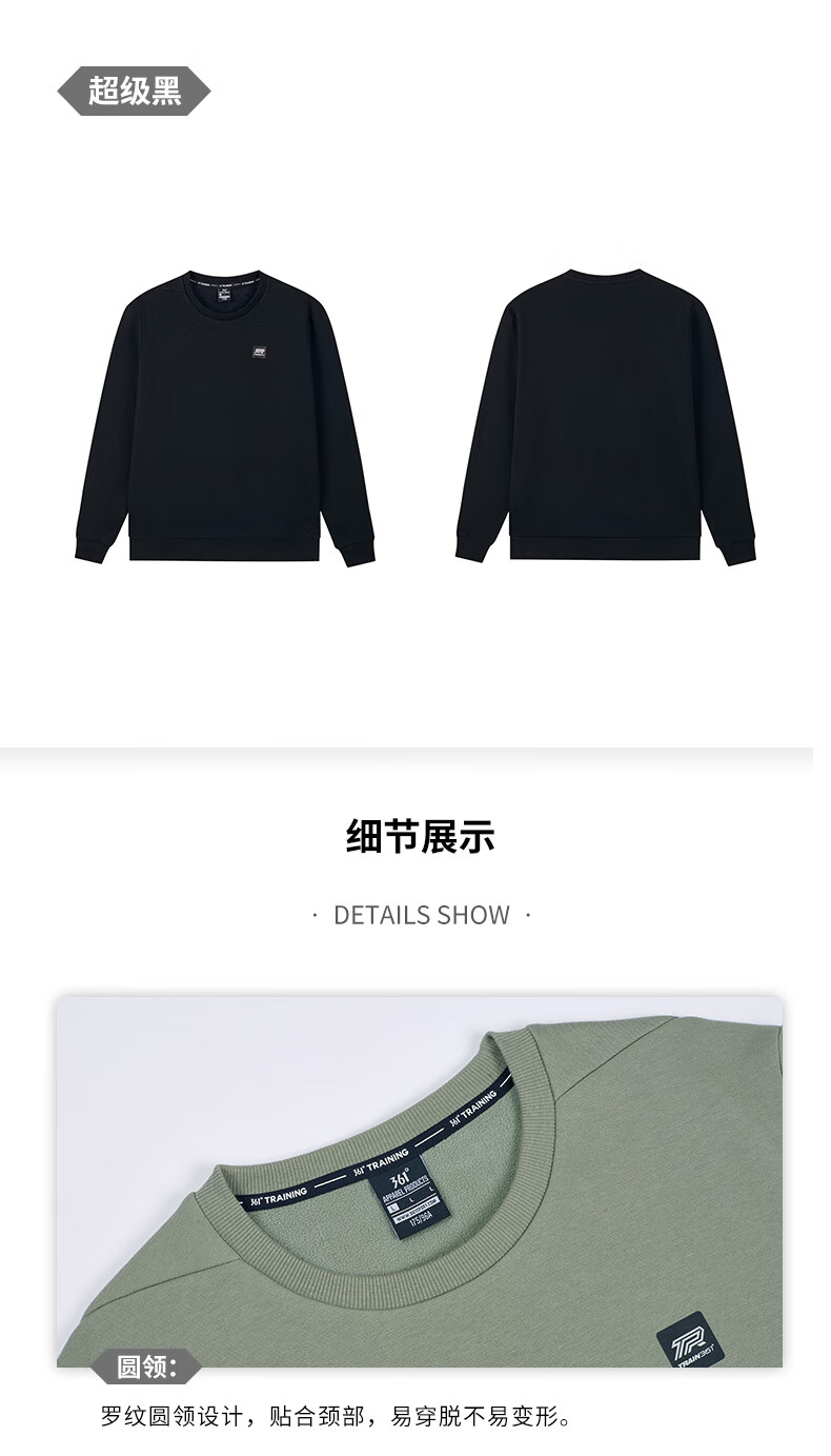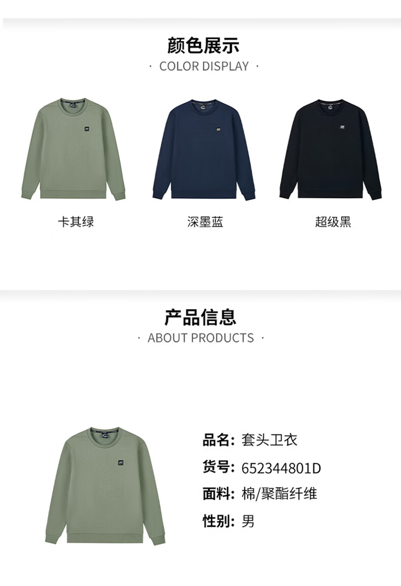 361°卫衣男装秋冬季长袖运动服休闲圆领宽松加绒上衣服652344801D-6