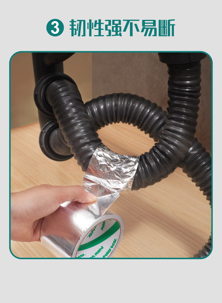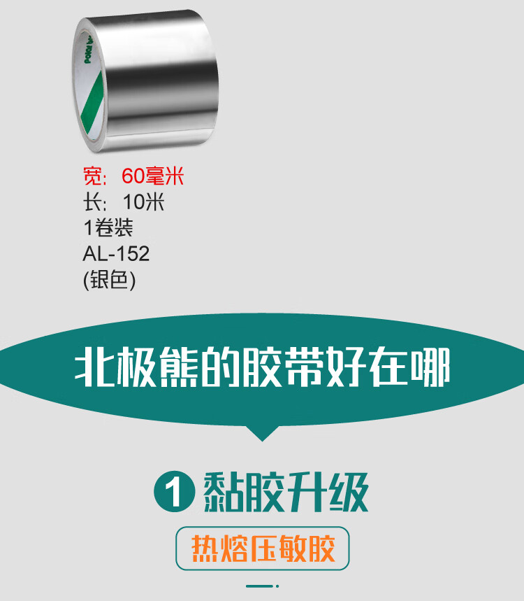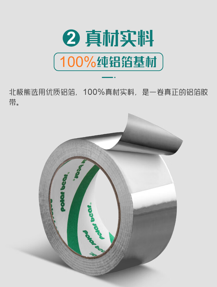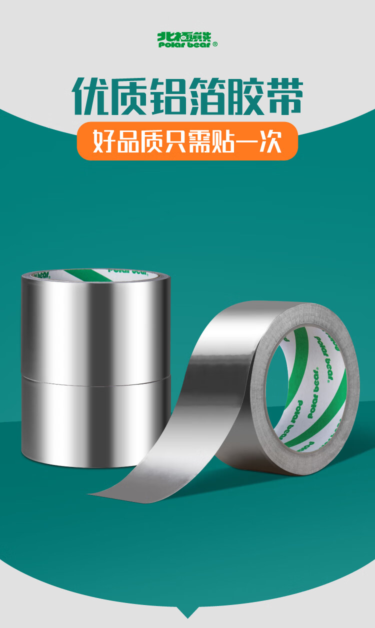 北极熊(Polar bear)铝箔胶带 防静电耐高温耐油耐腐脱排机接口加厚纯铝美缝贴 厨房灶台防油防水48mm*10m 1卷AL-151
