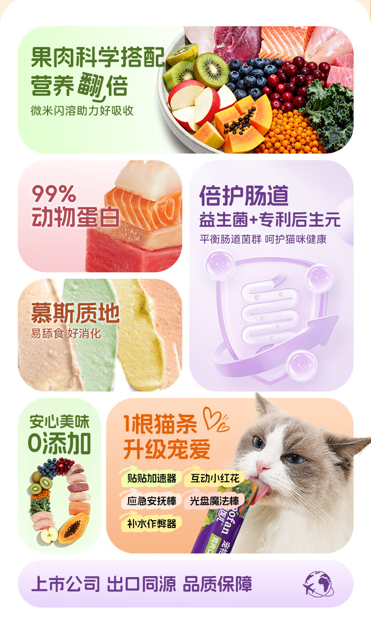 顽皮(Wanpy)果饭儿猫条12g*100混合口味配方优化猫零食湿粮猫条0添加0诱食