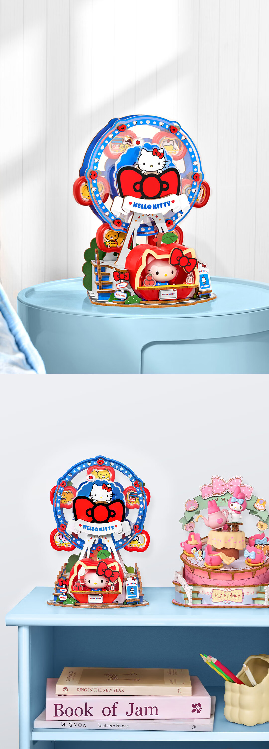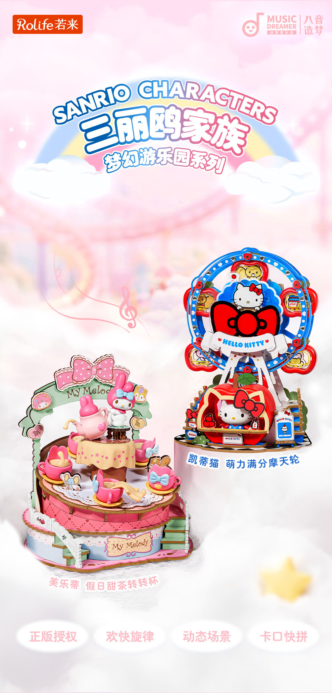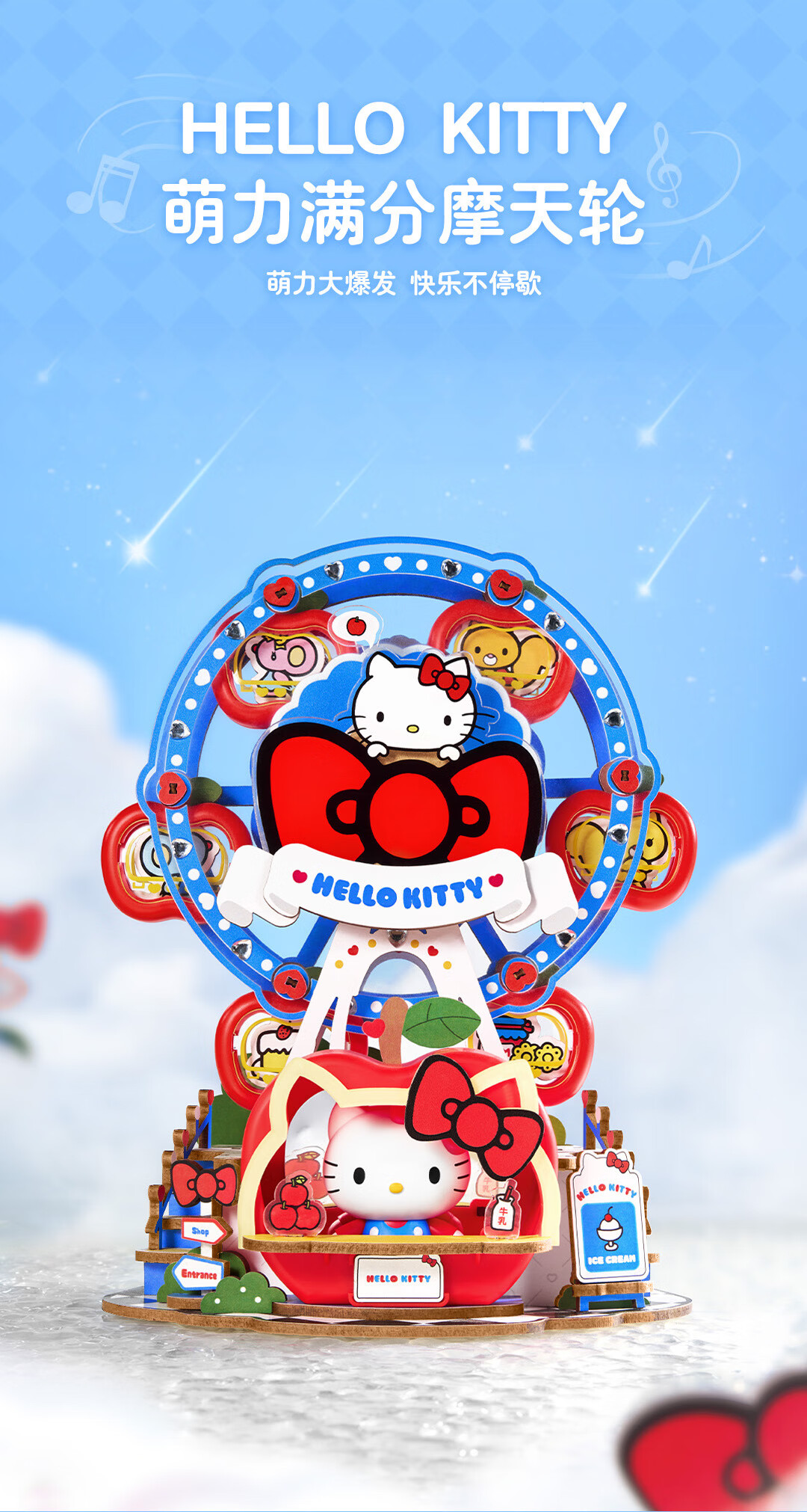 若来(Rolife)hello kitty摩天轮三丽鸥八音盒diy手工音乐盒积木拼装玩具礼物