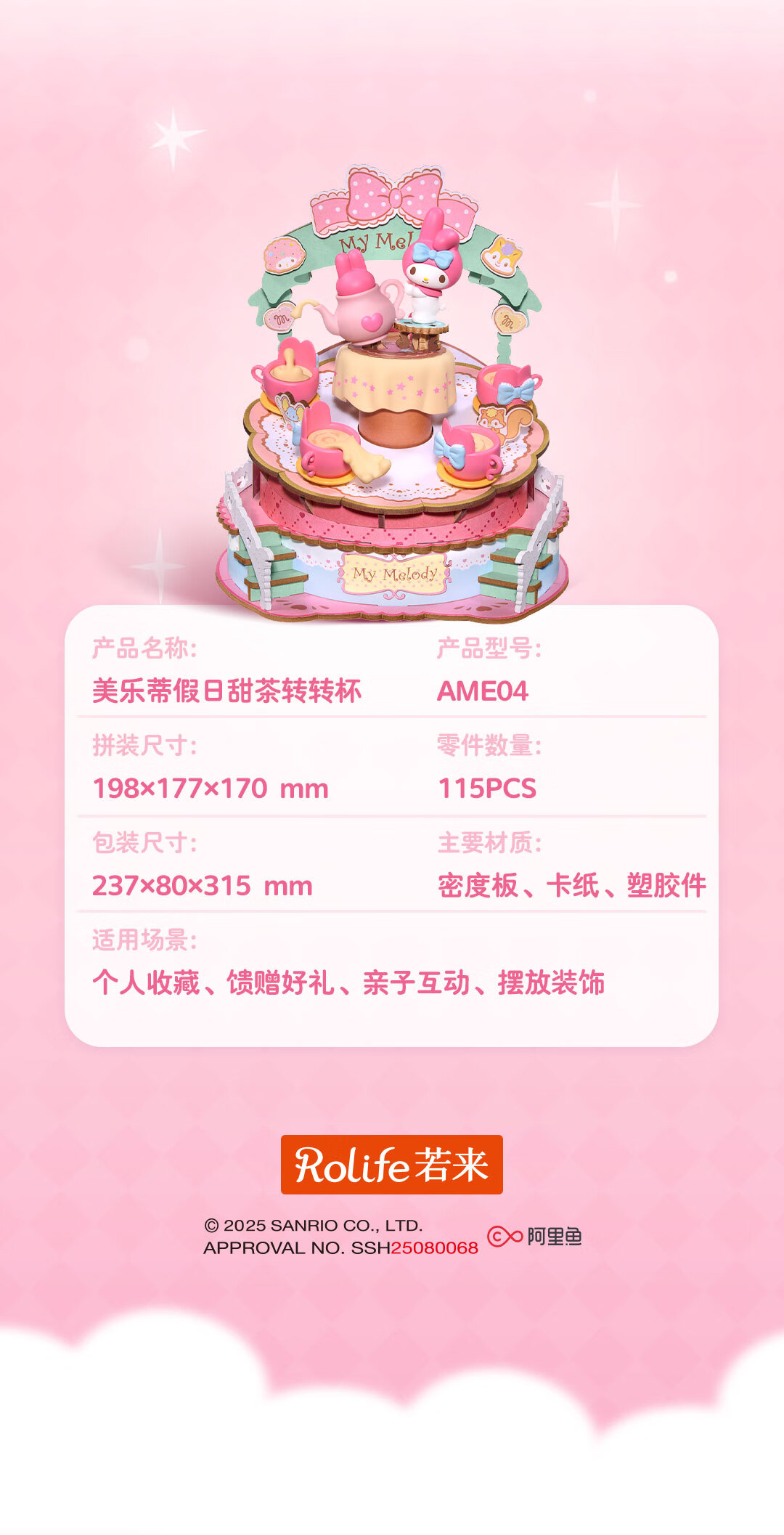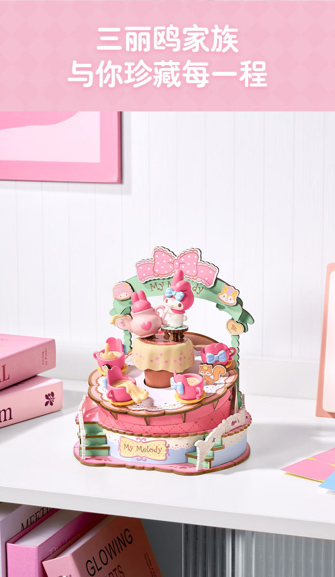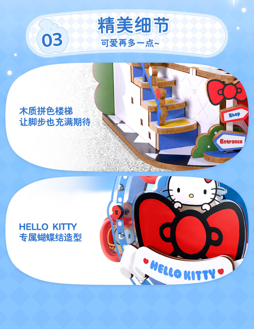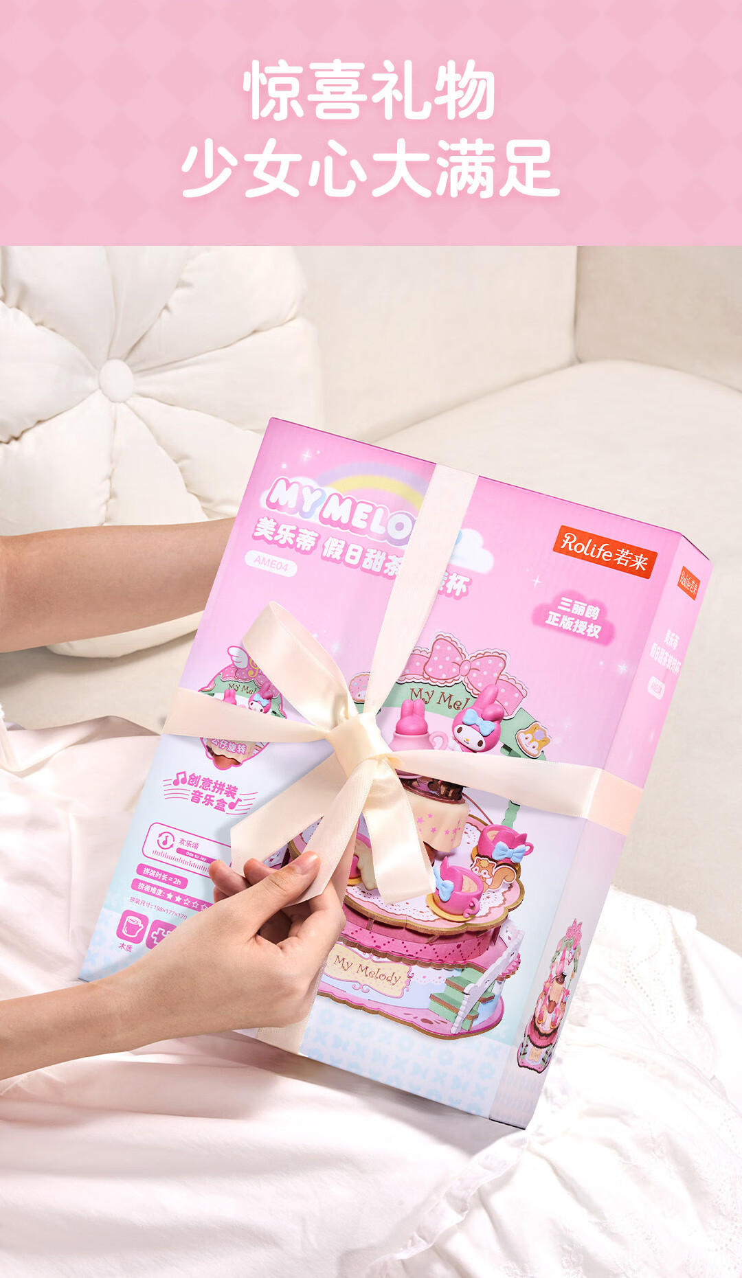 若来(Rolife)hello kitty摩天轮三丽鸥八音盒diy手工音乐盒积木拼装玩具礼物