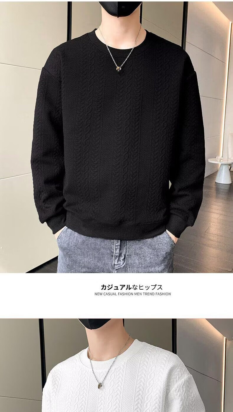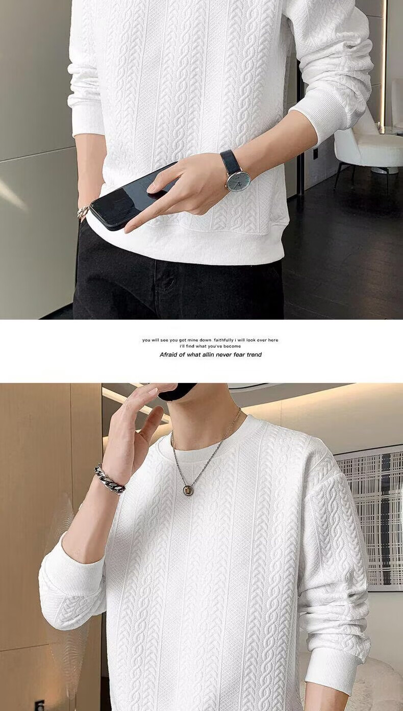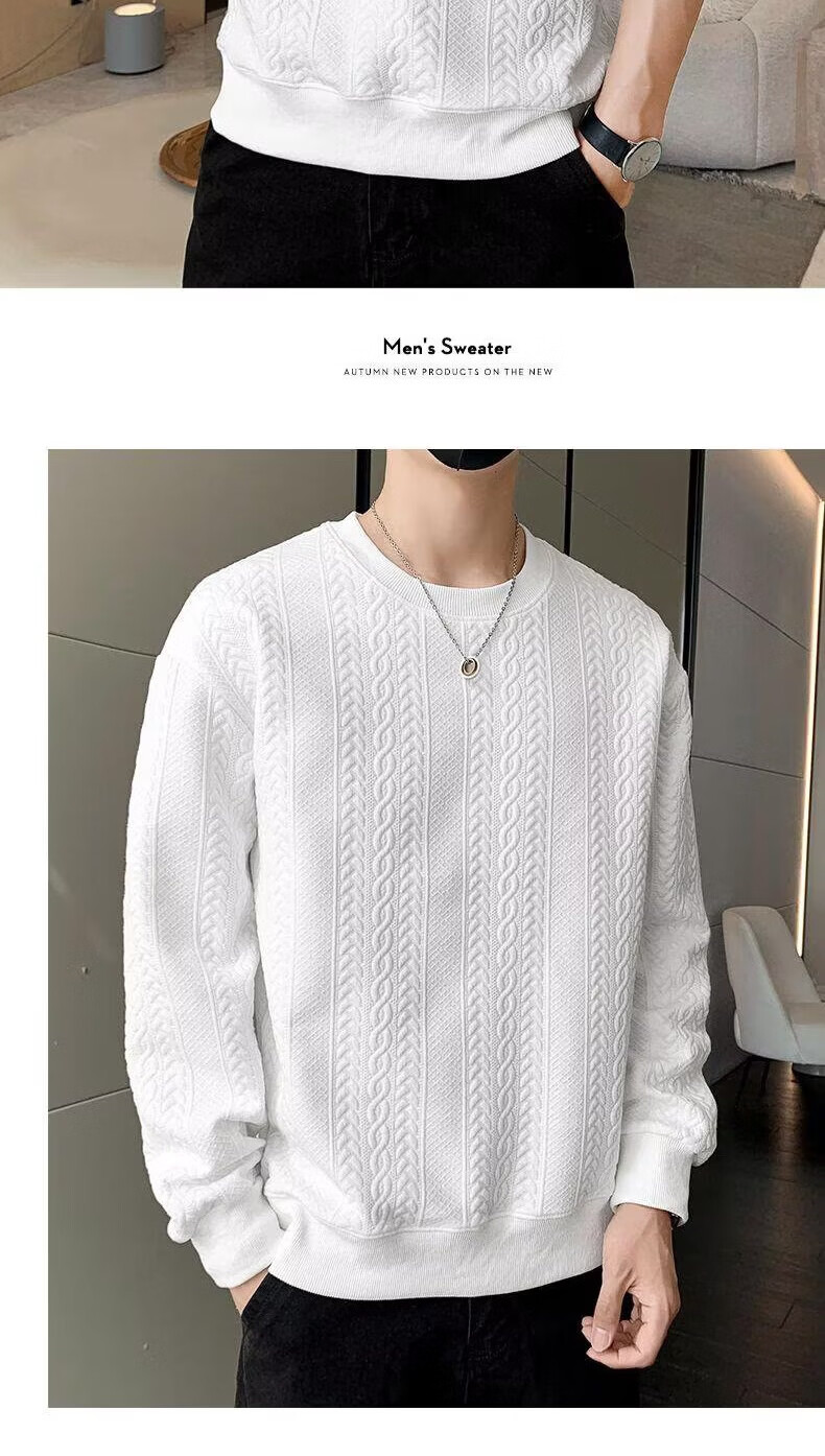 WAMLBN卫衣男士热风2026春季新款肌理圆领通勤宽松舒适百搭气质通勤 白色 4XL 【建议160-180斤】