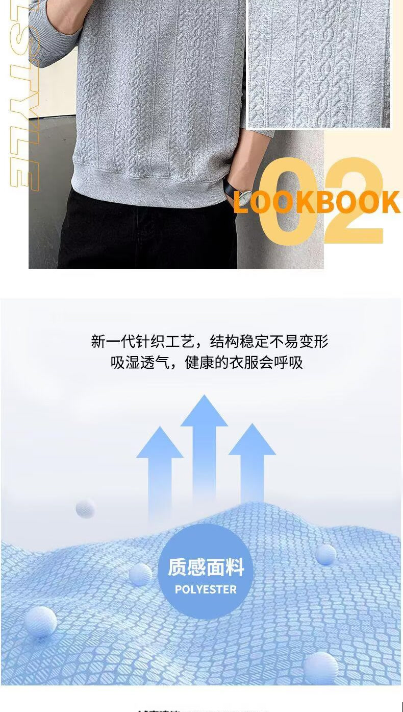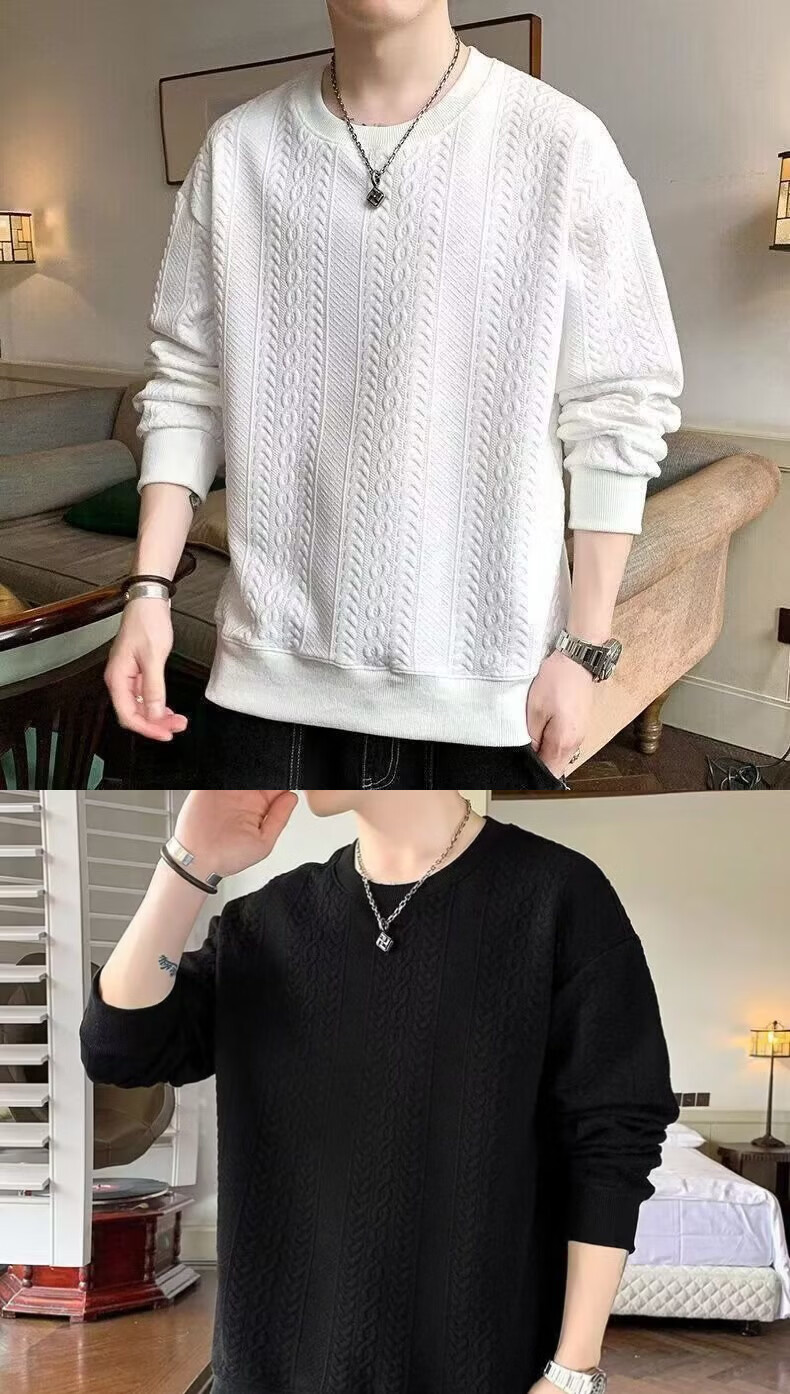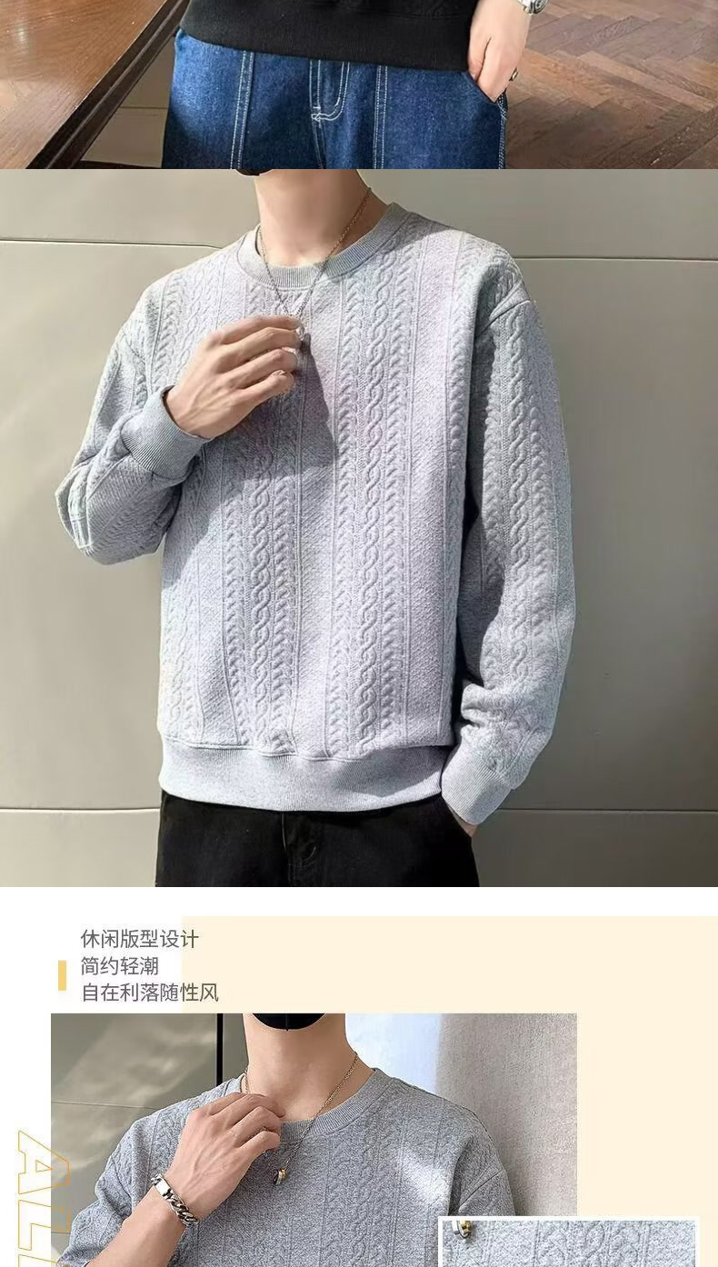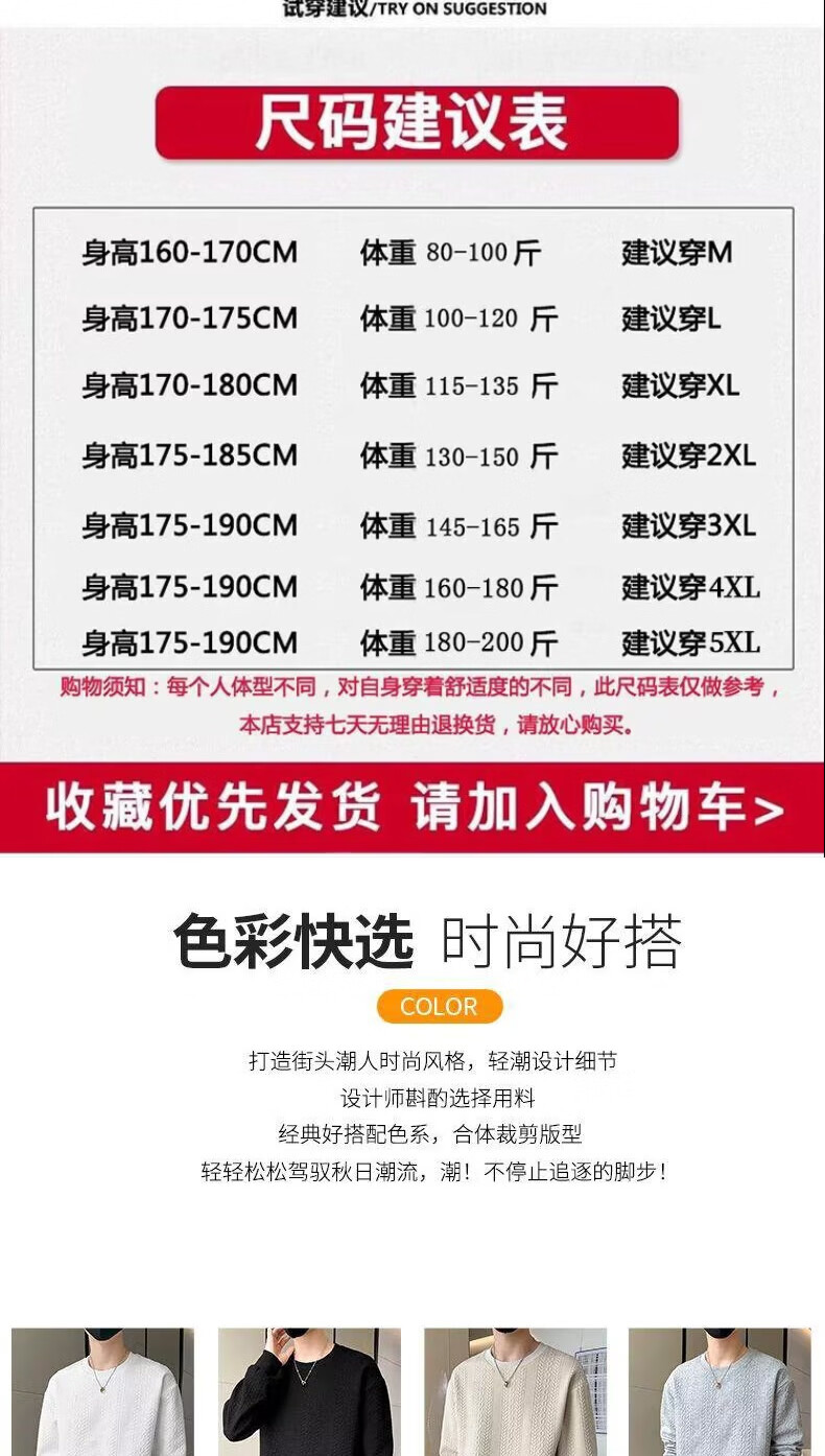 WAMLBN卫衣男士热风2026春季新款肌理圆领通勤宽松舒适百搭气质通勤 白色 4XL 【建议160-180斤】