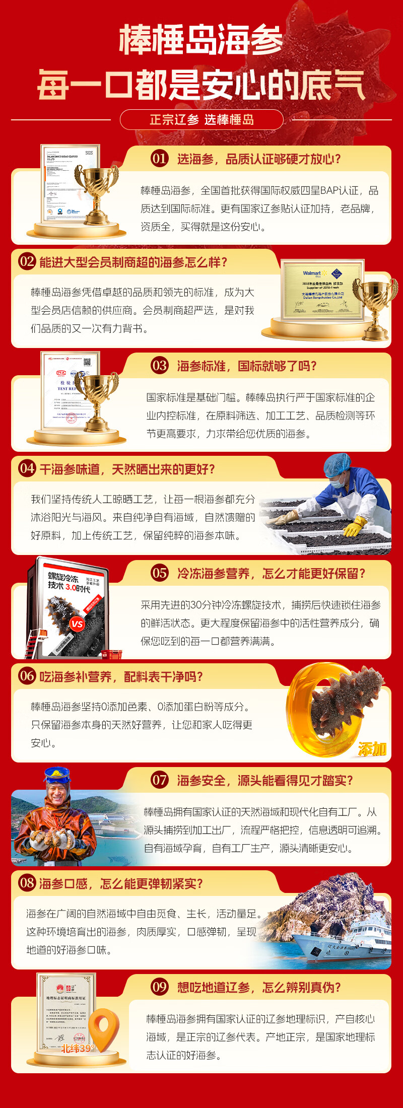 棒棰岛大连特产深海干海参辽刺参辽参海鲜干货送礼年货礼盒孕妇滋补老人 13-15只50g*1礼盒款
