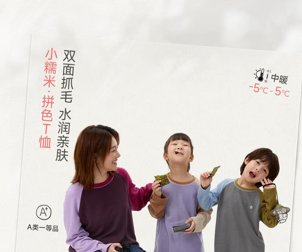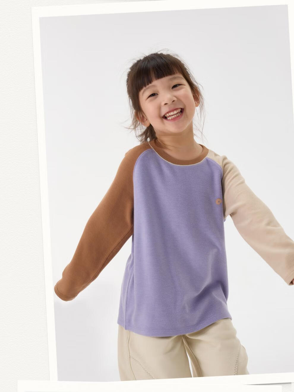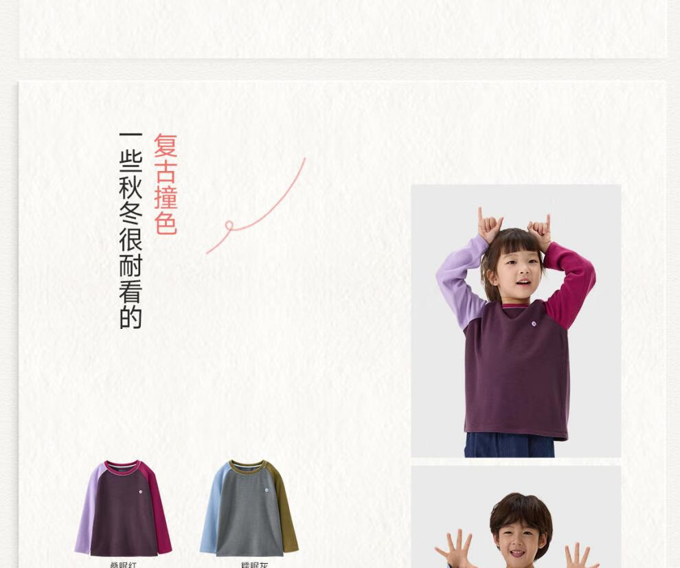 Q21直播小糯米儿童拼色长袖T恤男女童吸湿发热A类打底上衣水润亲肤 糯眠灰 110 cm