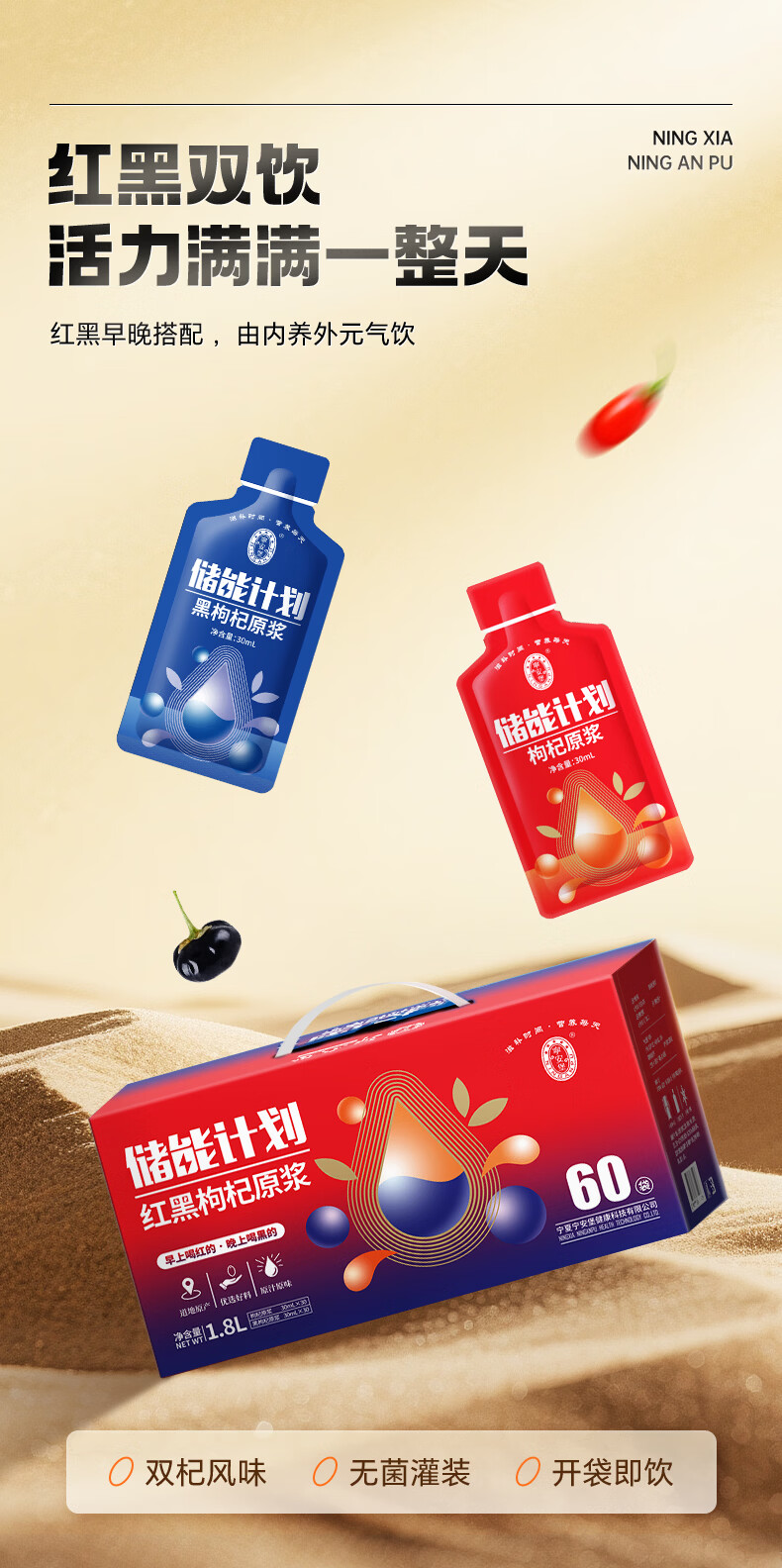 宁安堡枸杞原浆 花青素青海黑枸杞汁小袋装滋补养生 年货礼品送长辈 【早红晚黑】红黑枸杞原浆 90袋*1箱