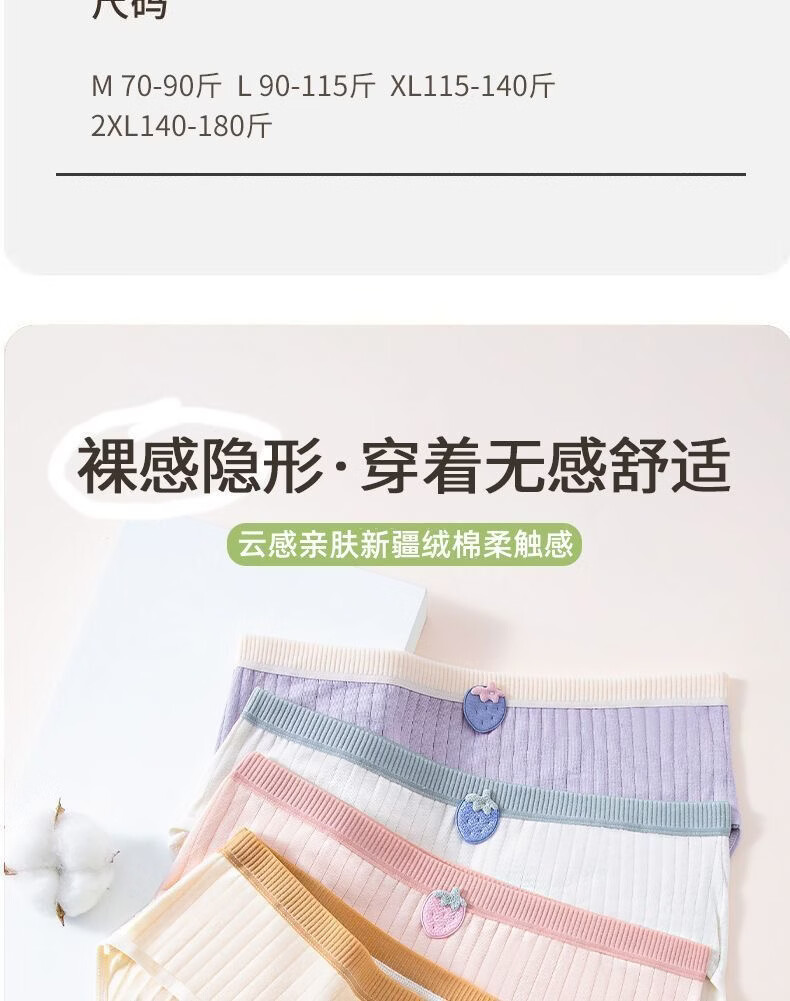 DAPHNE达芙妮内裤女纯棉可爱学生中腰全棉抑菌女士甜美三角裤 纯棉内裤【5条装】颜色随机 XL【建议105-125斤】