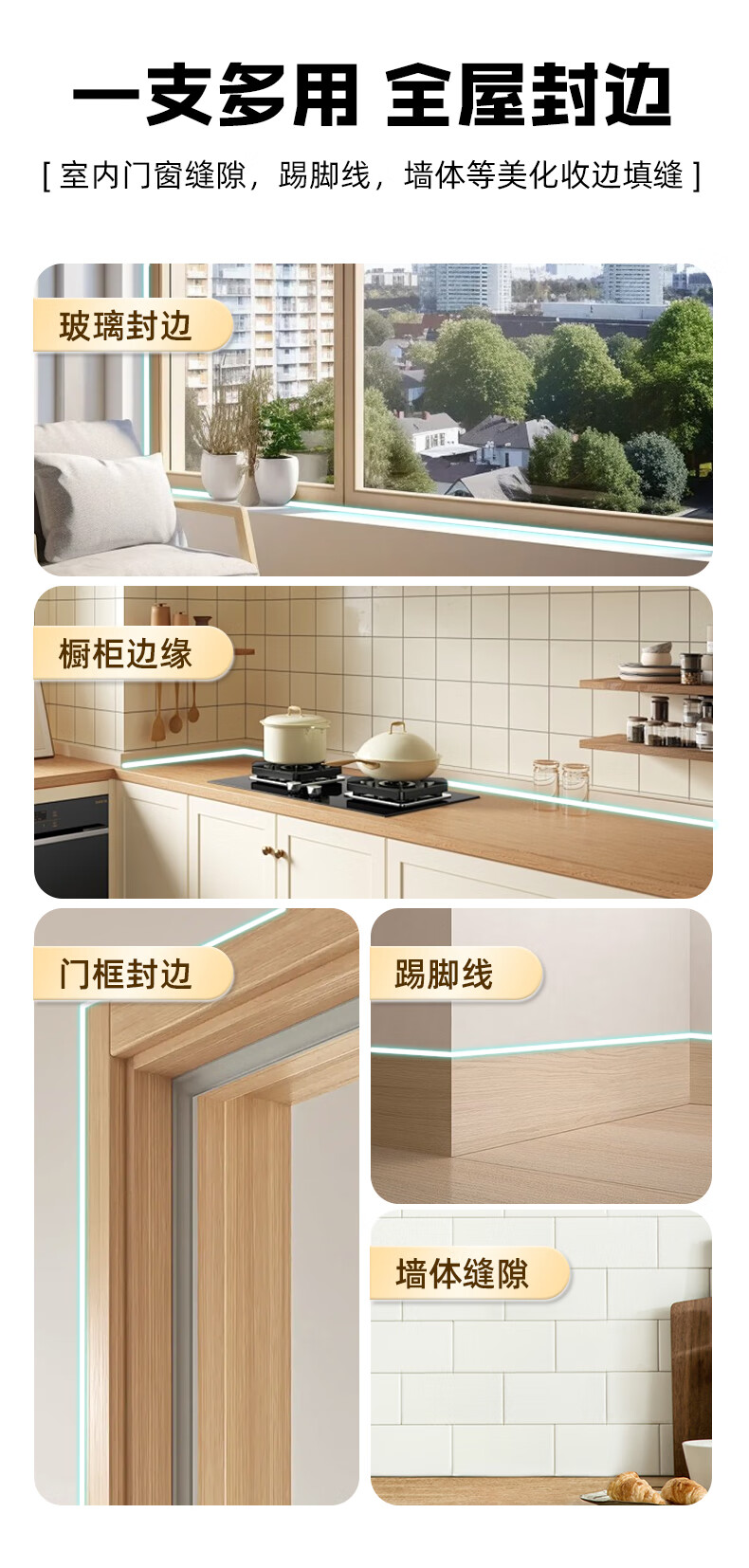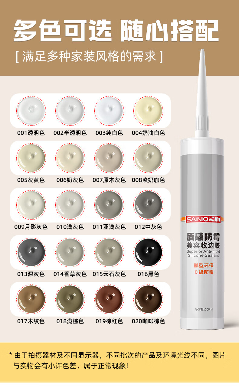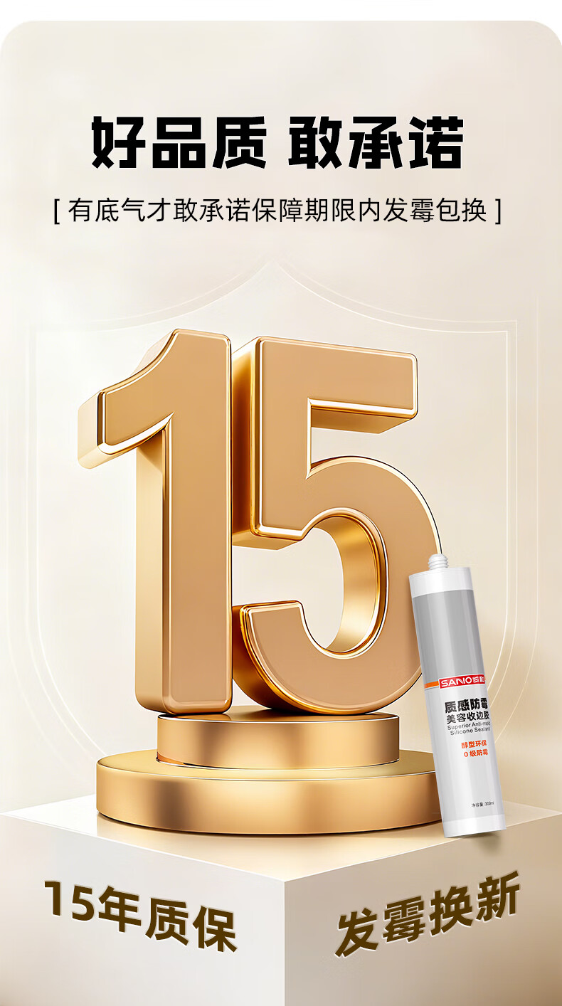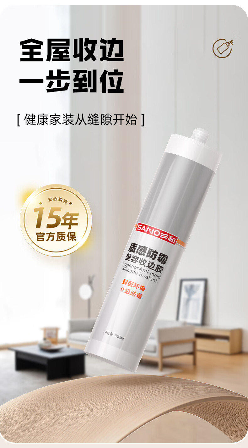 三和防霉玻璃胶美容胶填缝密封胶防水耐候硅胶马桶收边胶 醇型环保 0甲醛-白色300ml