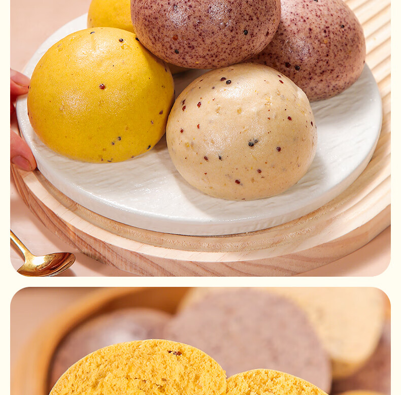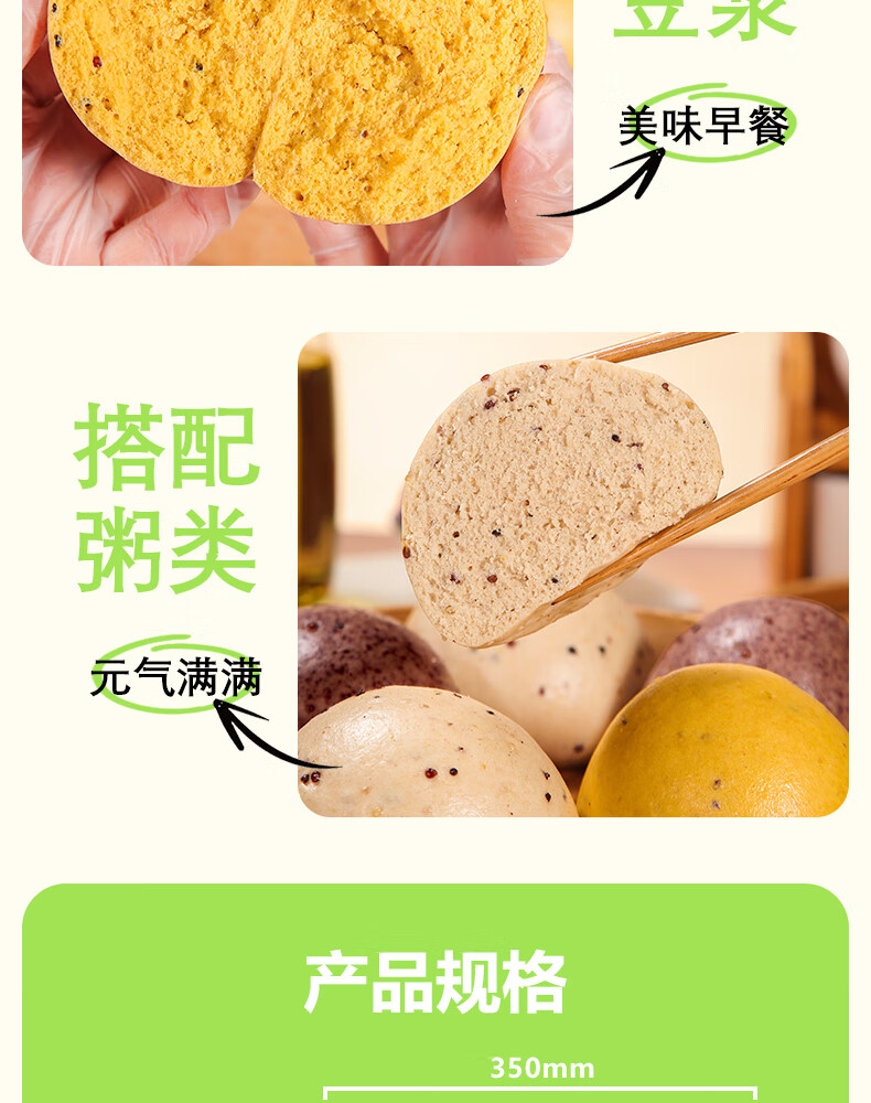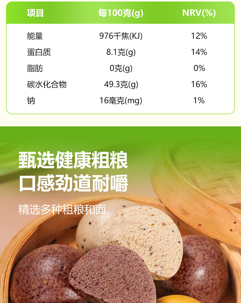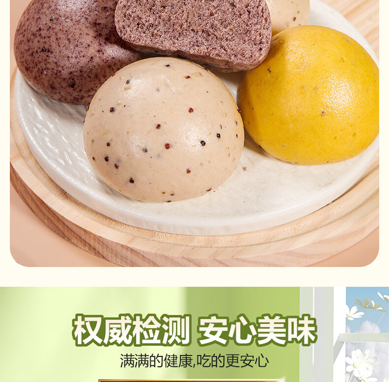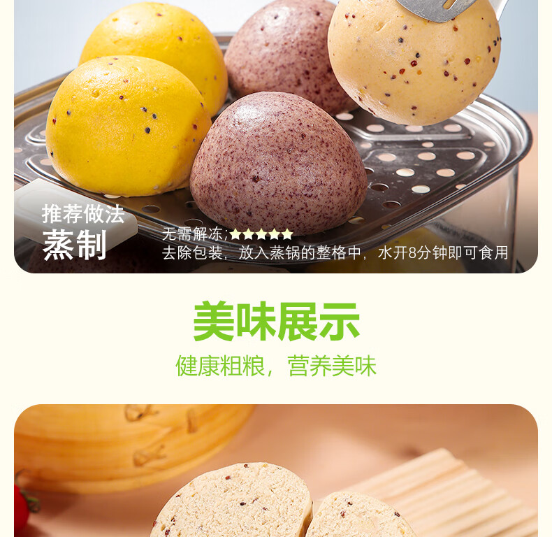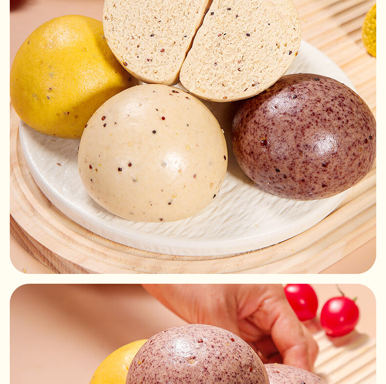 华田禾邦三色藜麦全麦杂粮馒头600g*2袋12个纯手工五谷杂粮包速食面点早餐