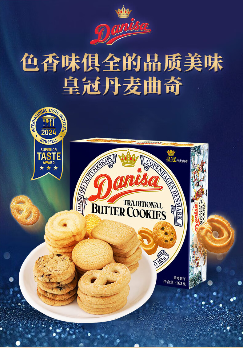 皇冠(danisa)丹麦曲奇饼干163g 休闲零食团购喜饼诞生礼囤货送礼物 印尼进口