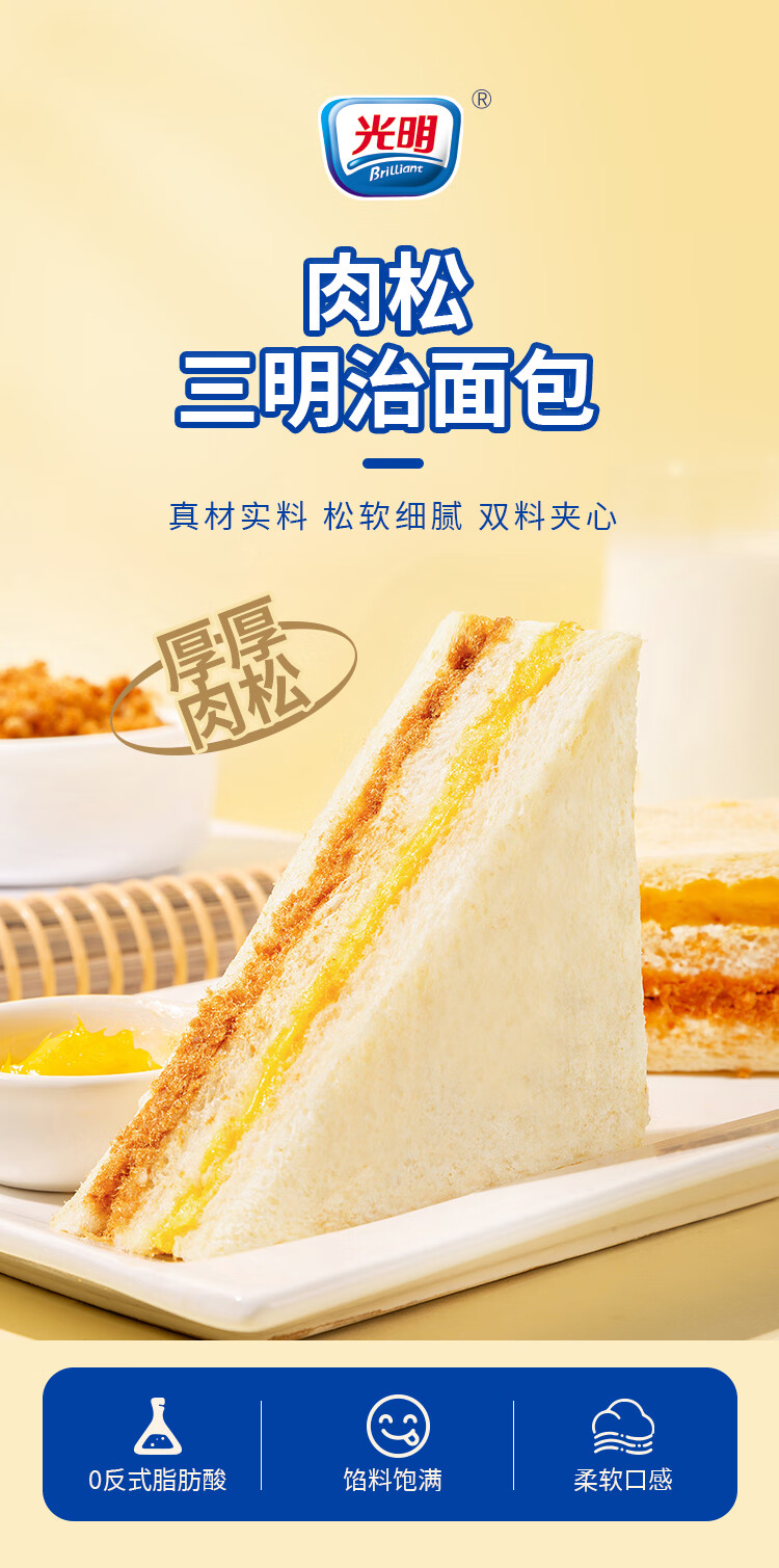 光明肉松三明治420g 夹心吐司全麦面包蛋糕早餐零食代餐