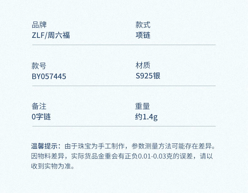 周六福(ZLF)新年礼物 S925银饰项链女百搭简约无吊坠银饰素链子O字链配饰 素链42cm