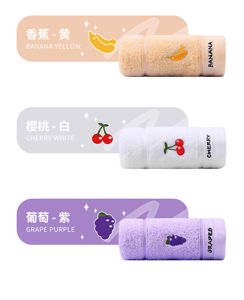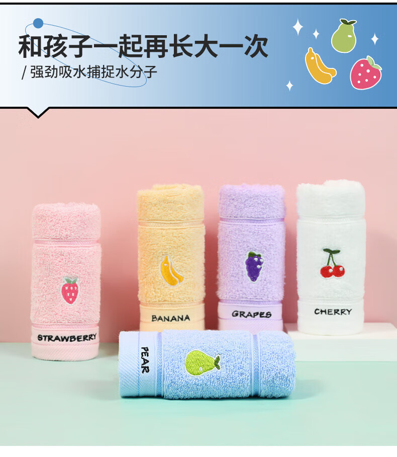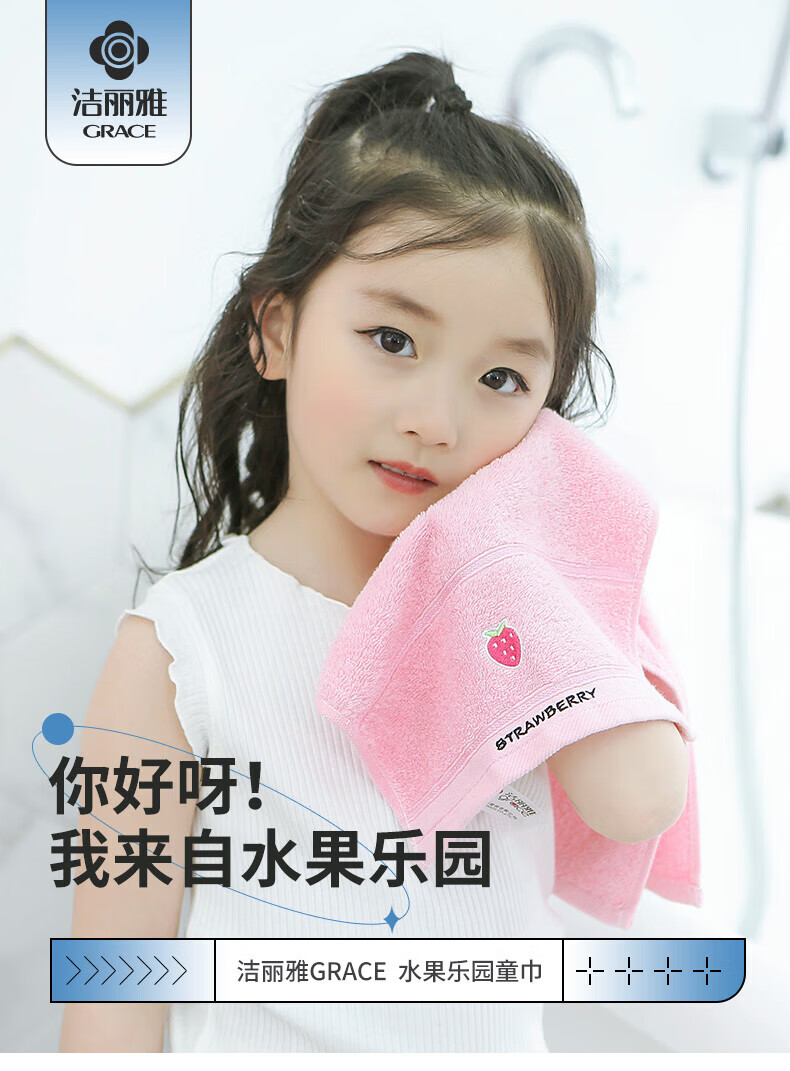 洁丽雅(grace)A类四条装儿童毛巾纯棉卡通吸水毛巾洗脸面巾中巾口水巾 【小鸡系列 蓝紫粉黄】4条装