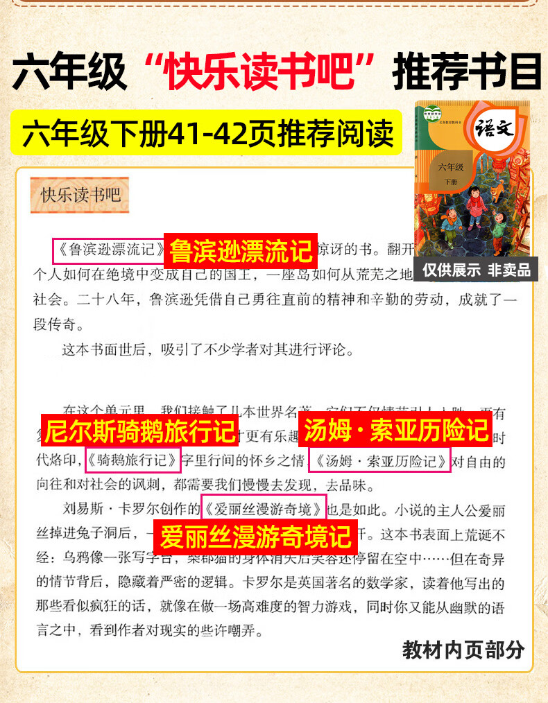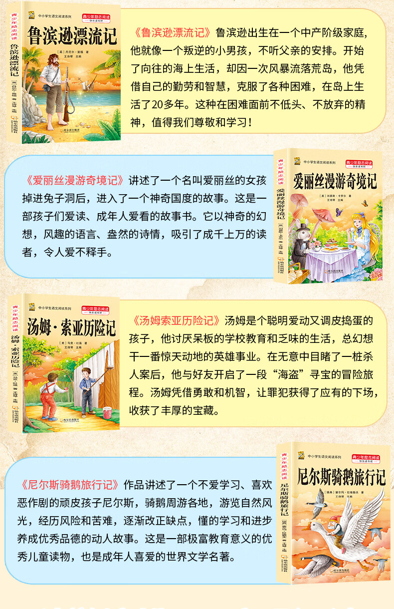鲁滨逊漂流记人教版语文六年级下册快乐读书吧尼尔斯骑鹅旅行记汤姆索亚历险记爱丽丝漫游奇境记六年级下册必读的课外书原著完整版 【六下课外书】鲁滨逊+爱丽丝+汤姆索亚+骑鹅旅行记