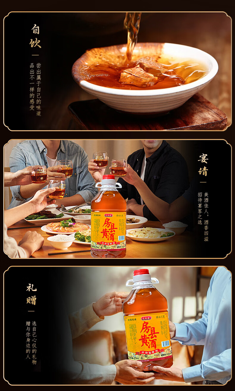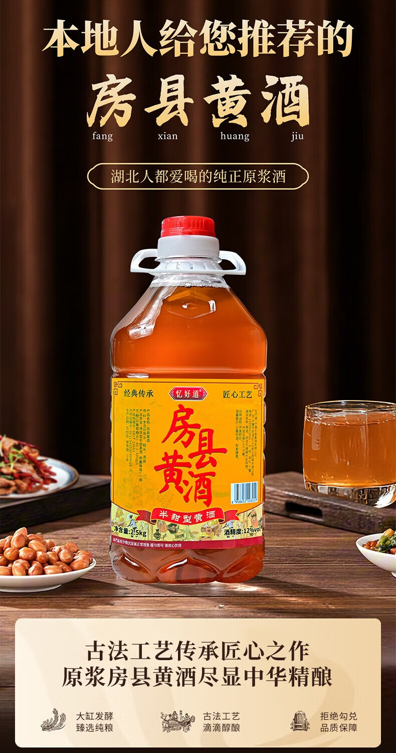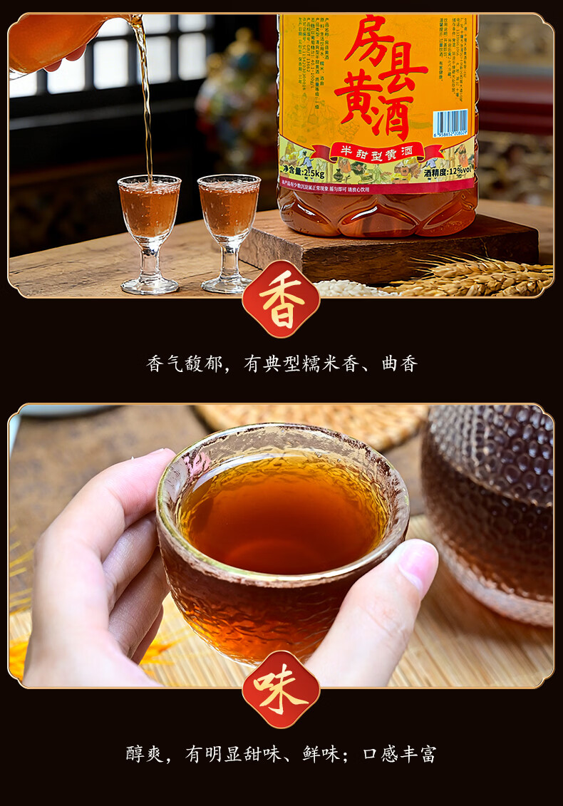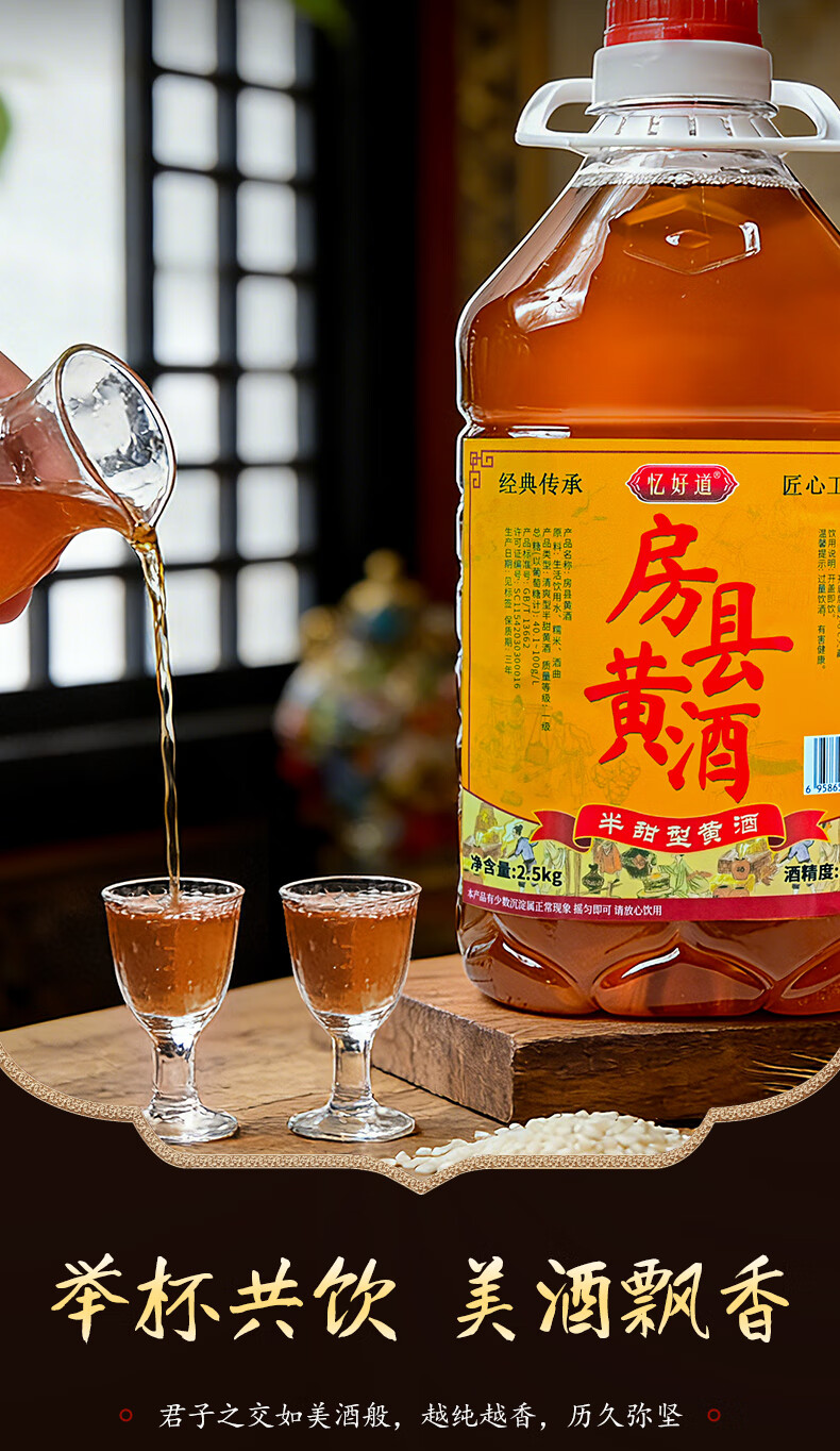 忆好道 正宗房县黄酒洑汁 农家自酿半甜型12度糯米酒 0添加一级微甜黄酒 【实惠装】房县黄酒 5斤装