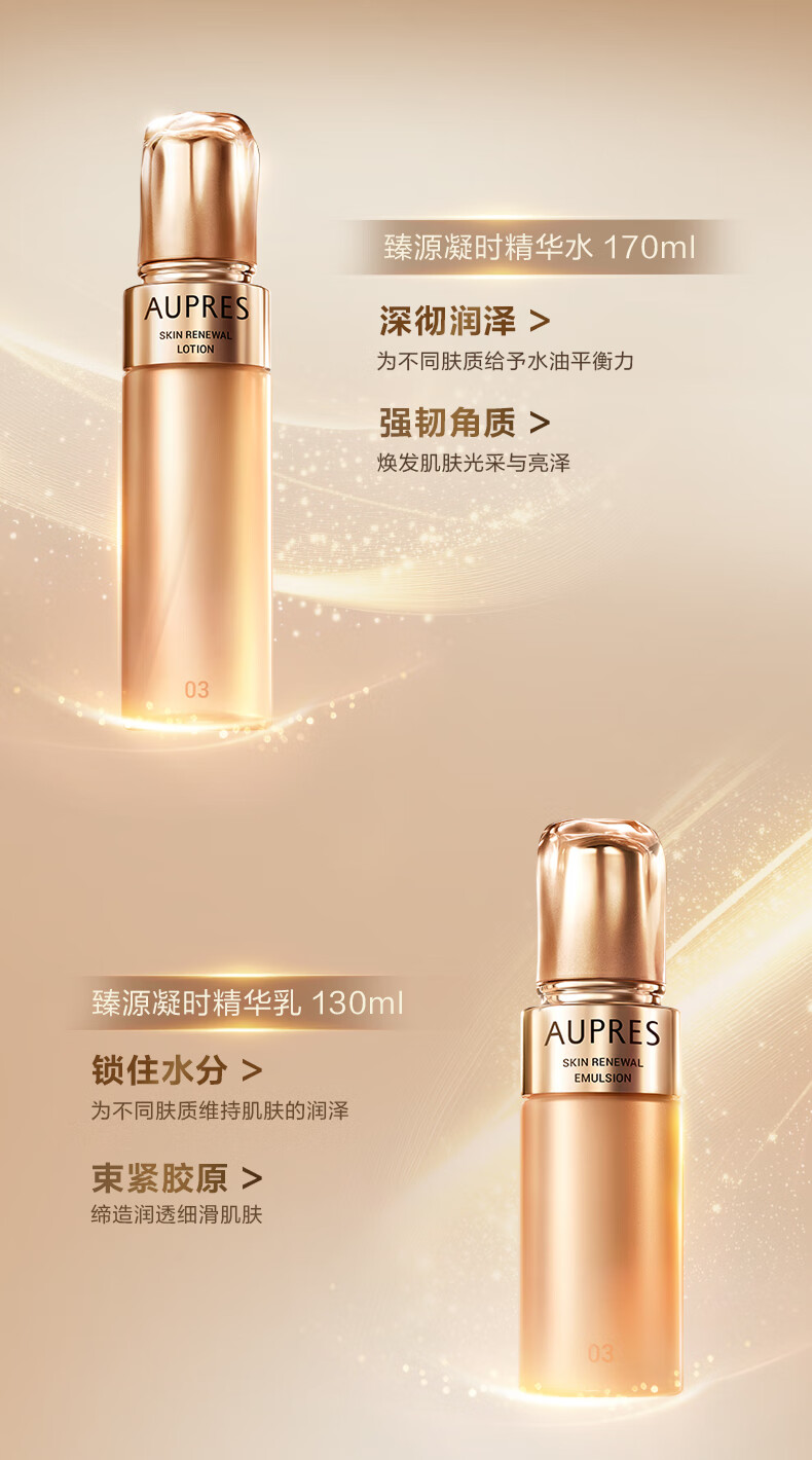 欧珀莱(AUPRES)元旦礼物紧致饱满淡化细纹 滋润型臻源凝时精华水*2 含替换