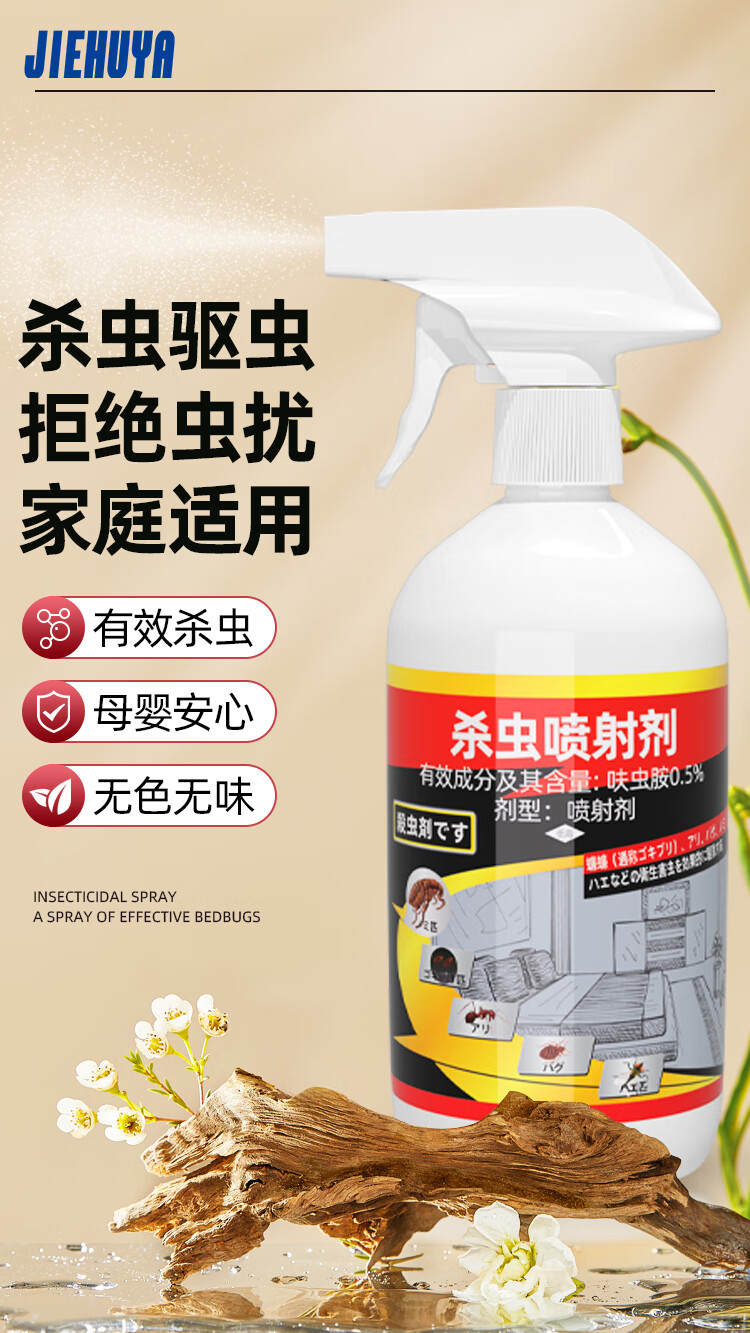 洁护雅跳蚤杀虫喷剂家庭床铺可用驱虫杀虫药剂喷雾呋虫胺专杀跳蚤杀虫剂 三瓶装