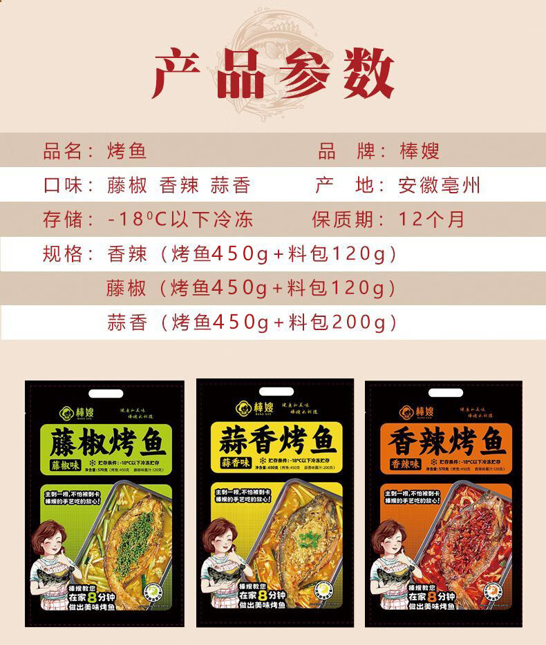 棒嫂【清江烤鱼/巴沙烤鱼】半成品懒人预制菜即食快手菜夜宵三味可选 藤椒+蒜香各1袋送烤盘+土豆粉 巴沙鱼