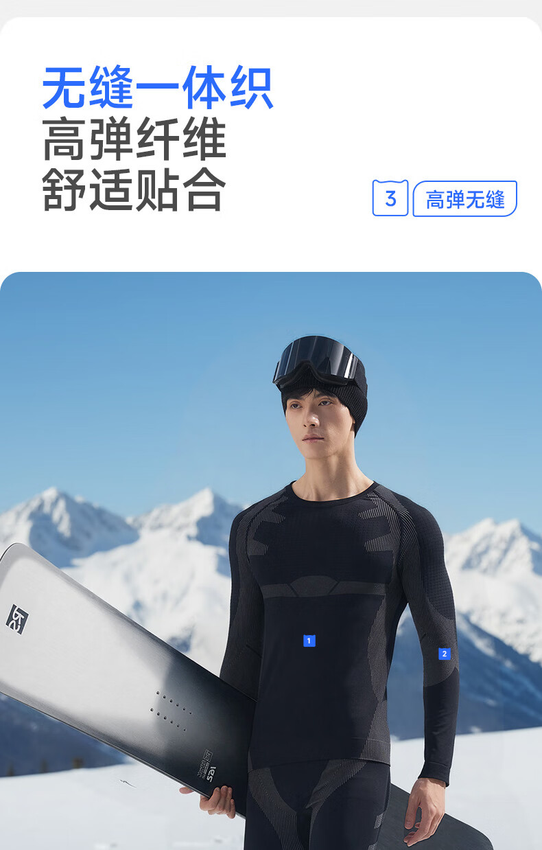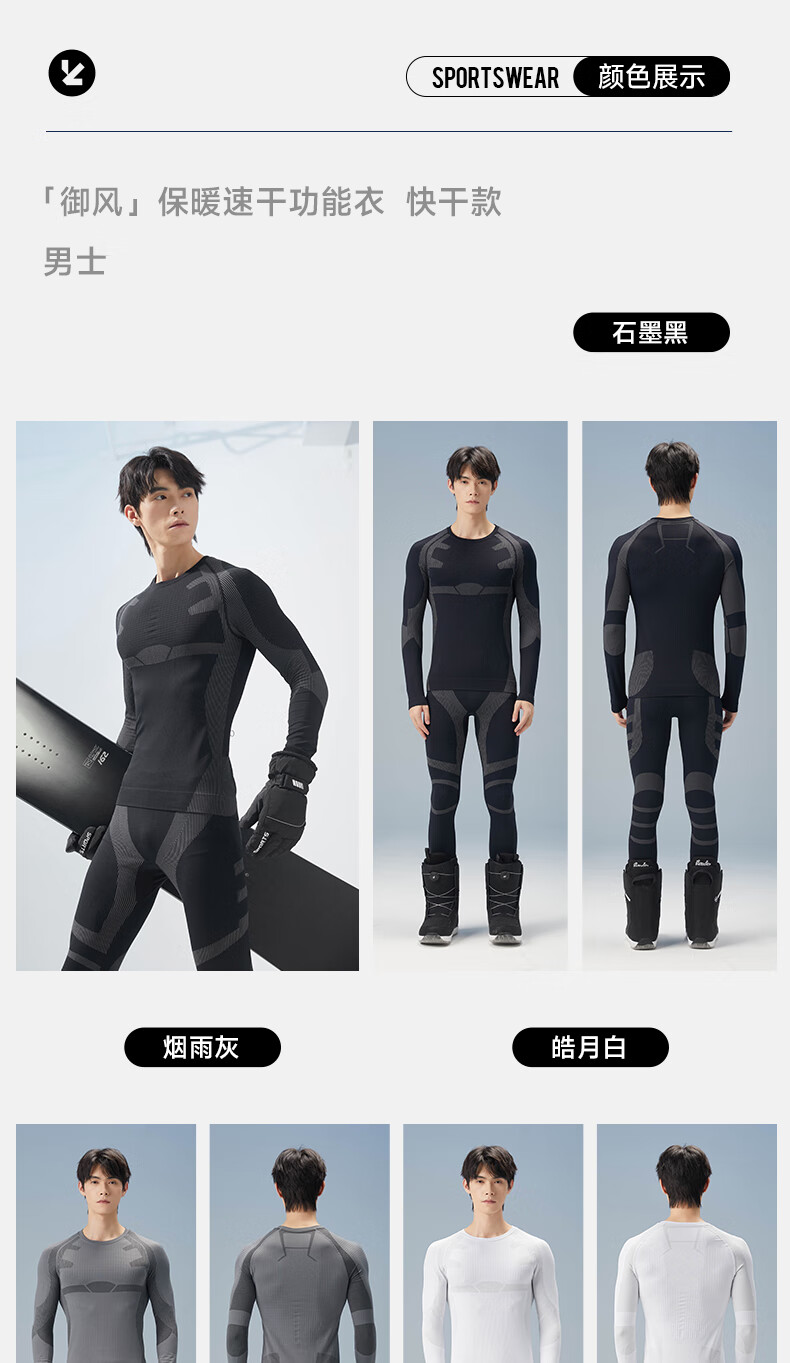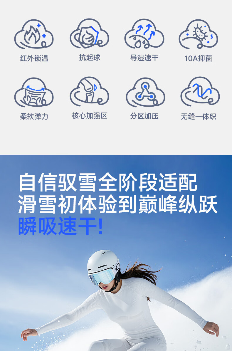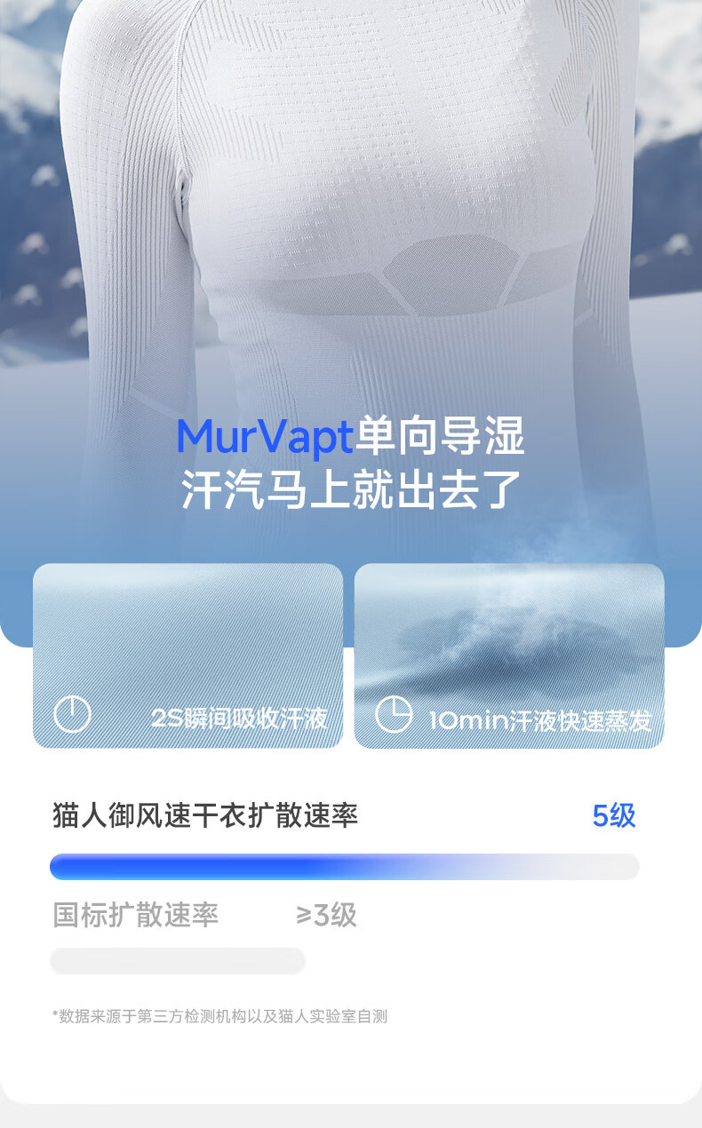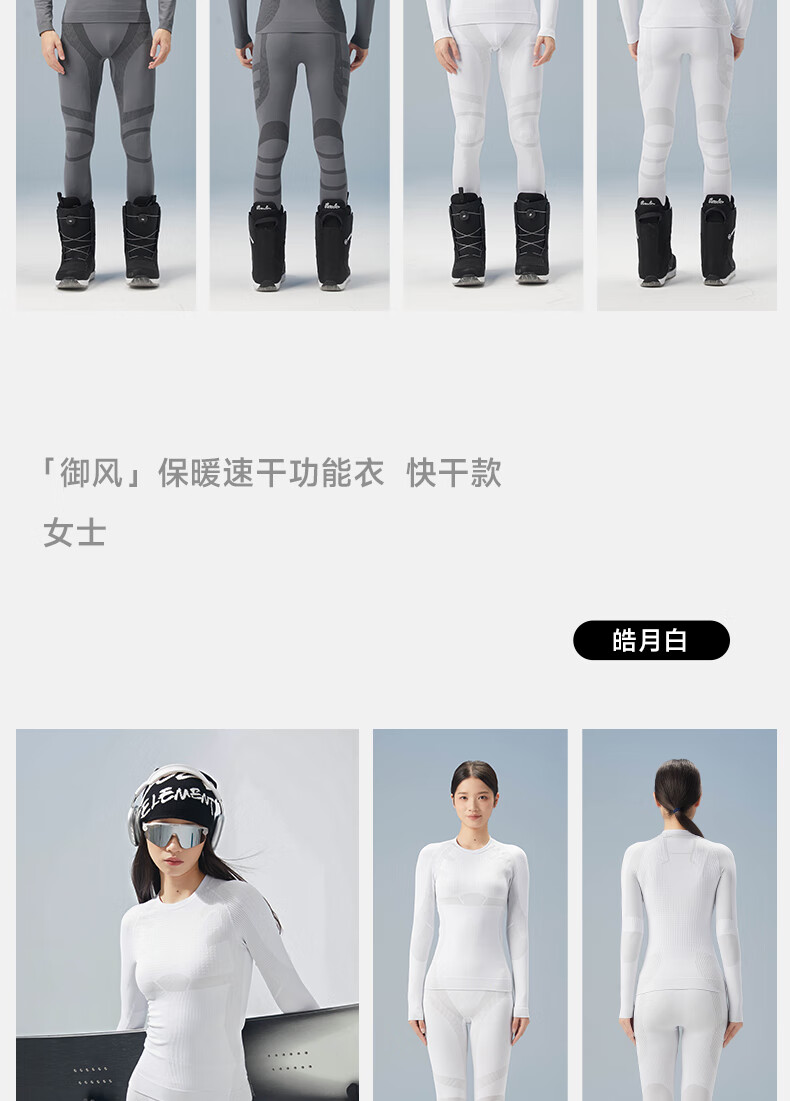 猫人「御风」滑雪速干衣男女户外功能运动套装压缩衣排汗保暖内衣 男皓月白 蓄热保暖 XL