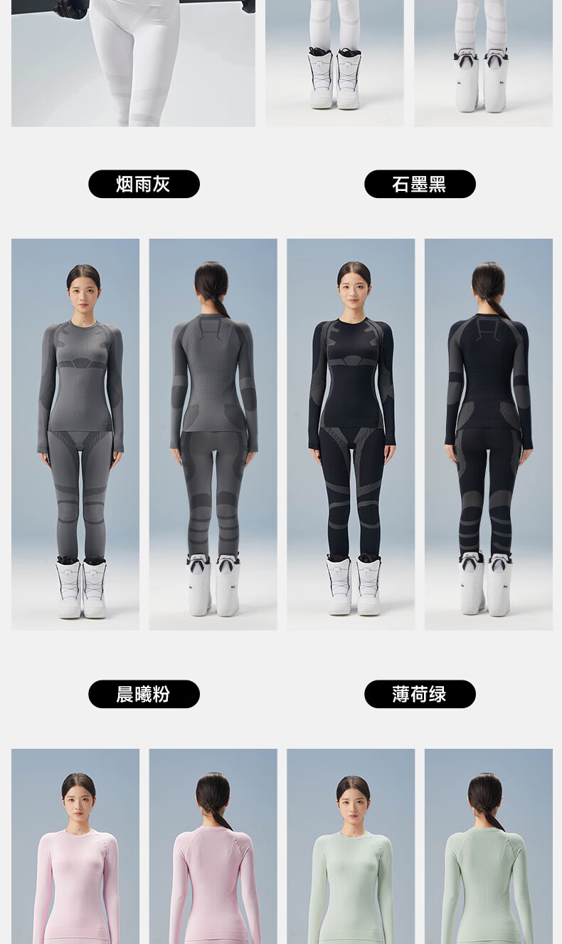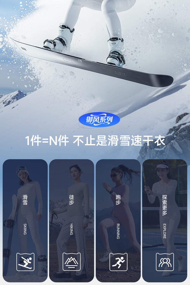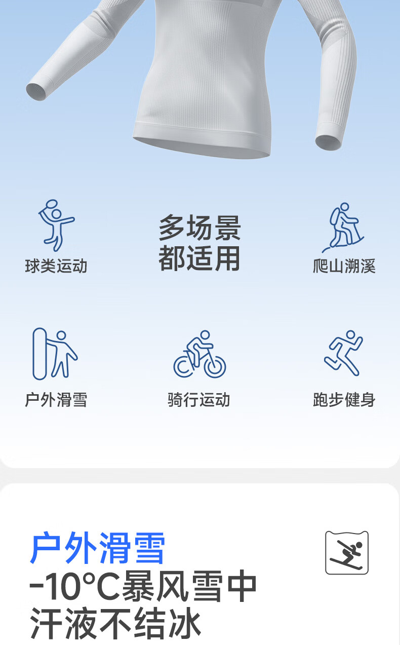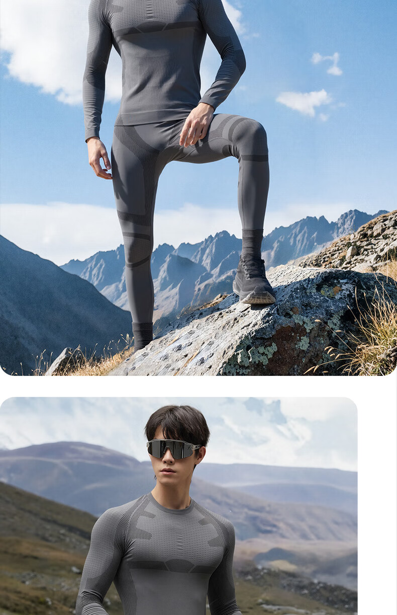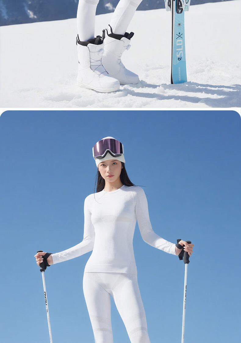 猫人「御风」滑雪速干衣男女户外功能运动套装压缩衣排汗保暖内衣 男皓月白 蓄热保暖 XL