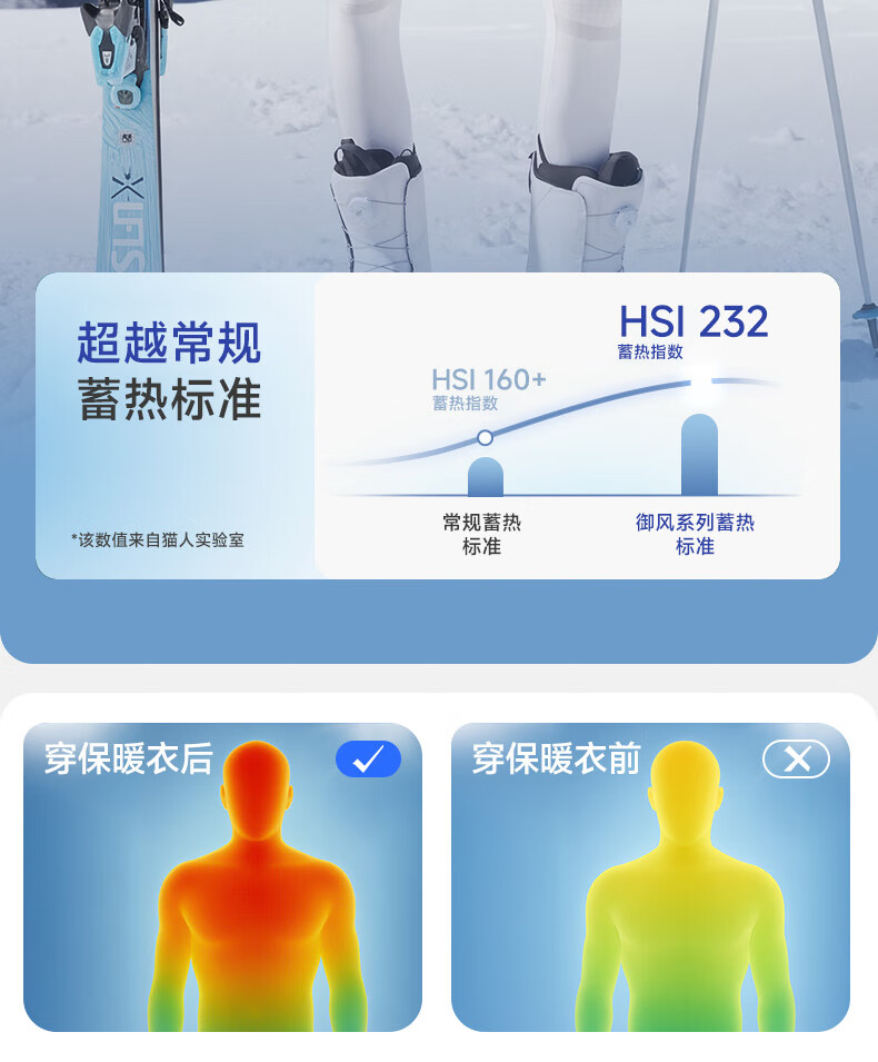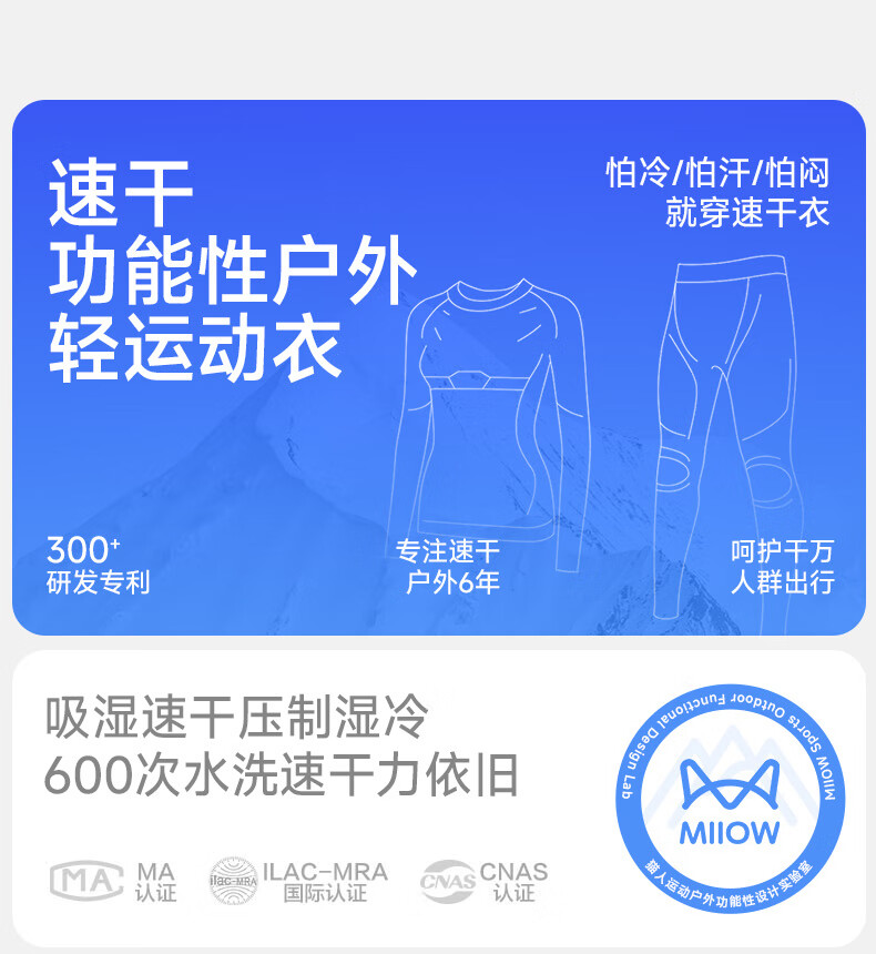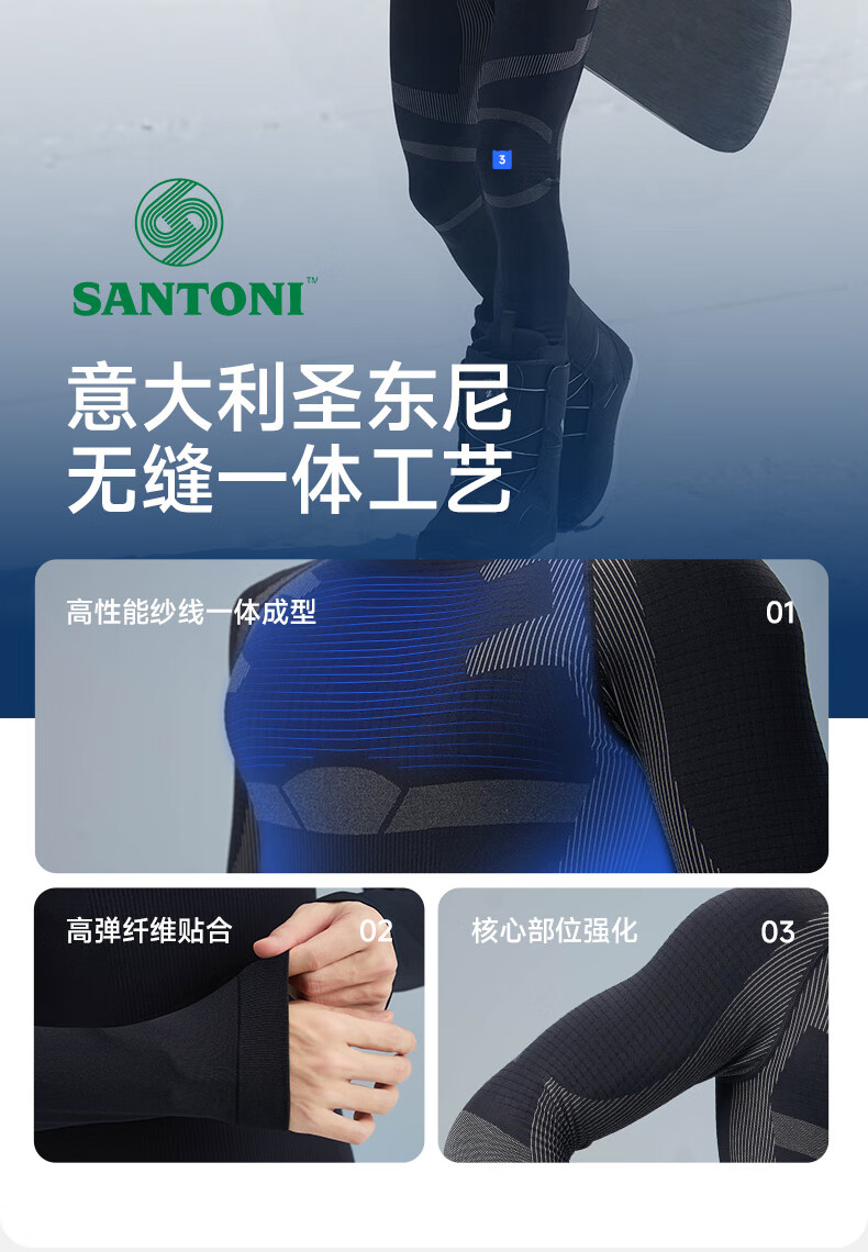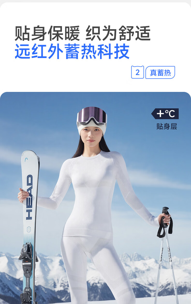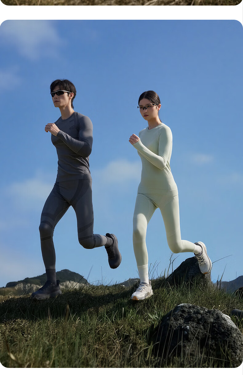 猫人「御风」滑雪速干衣男女户外功能运动套装压缩衣排汗保暖内衣 男皓月白 蓄热保暖 XL