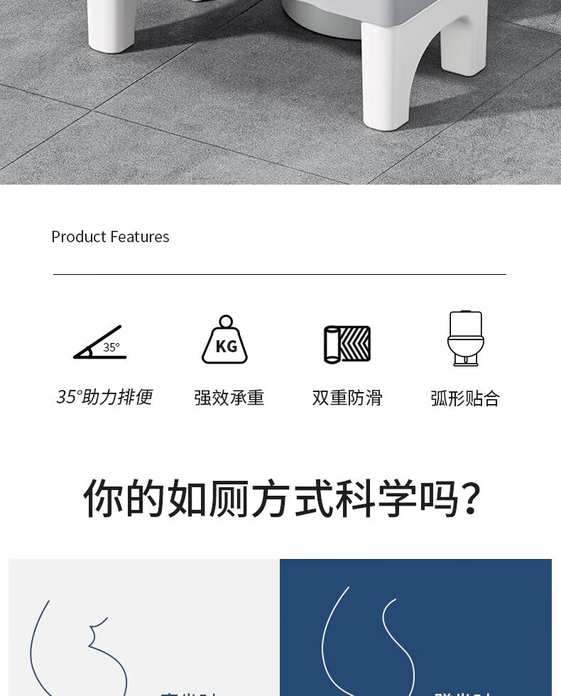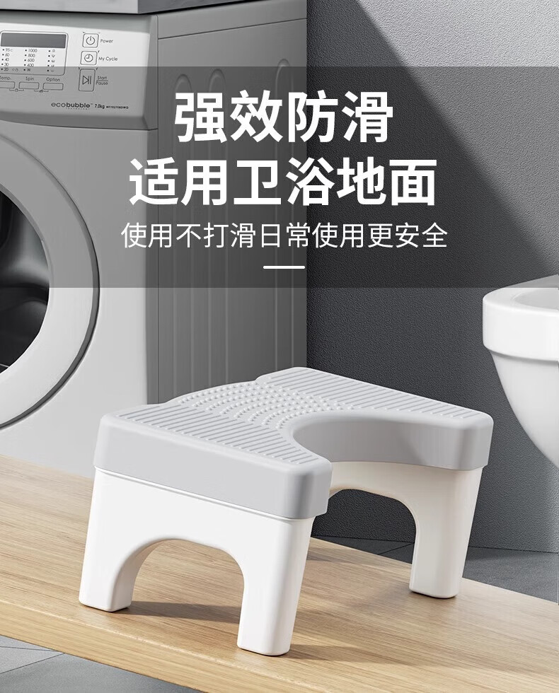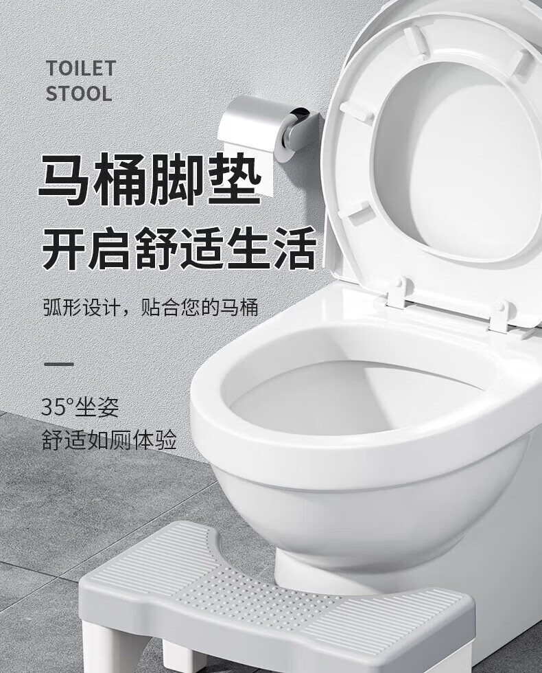 木格格马桶凳脚踏马桶脚踩凳垫脚凳厕所塑料凳子小矮凳洗澡凳脚蹬换鞋凳 加厚防滑马桶垫脚凳【灰白腿】