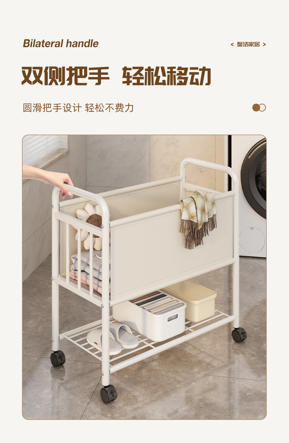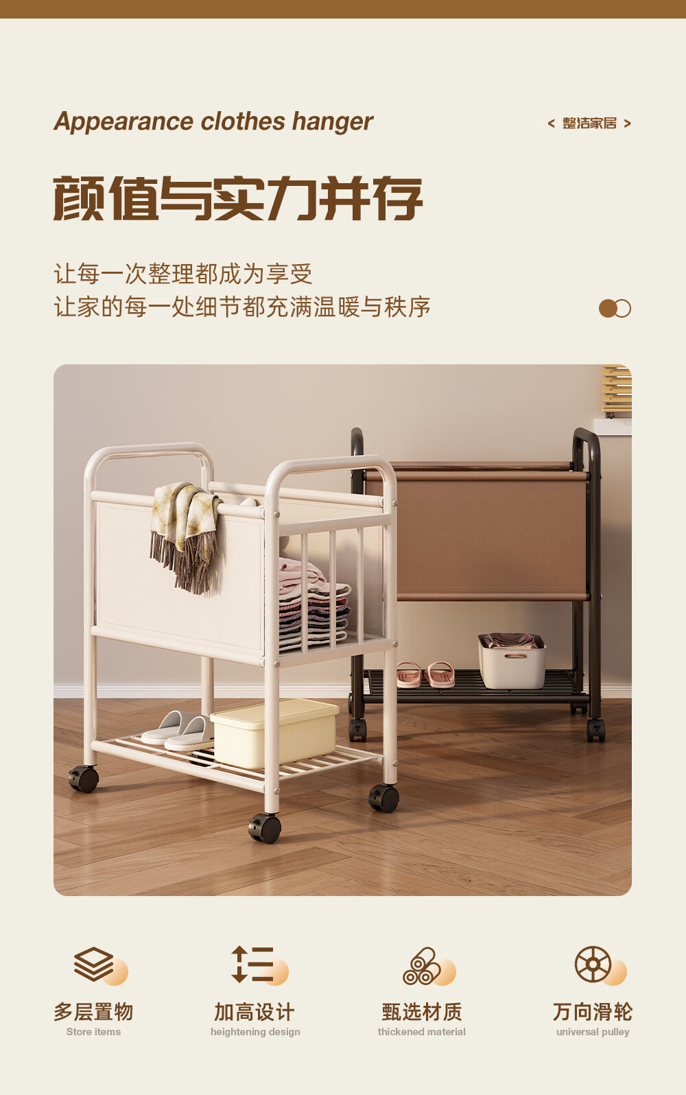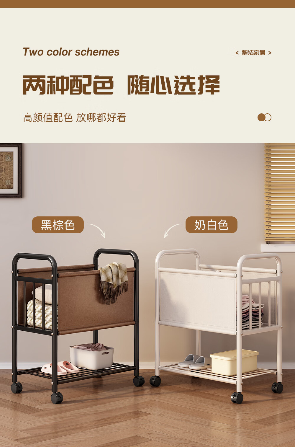 衣炫中古风脏衣篓网红脏衣篮家用洗衣篮大容量脏衣篓可移动收纳小推车 40CM【黑棕】 双层置物可移动