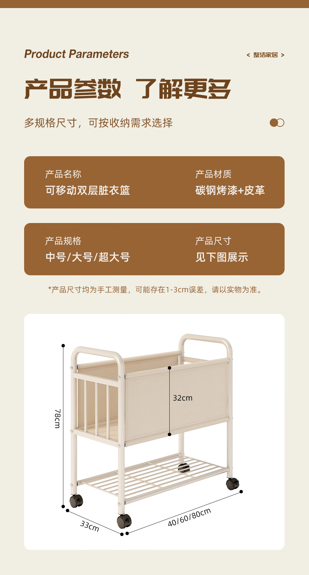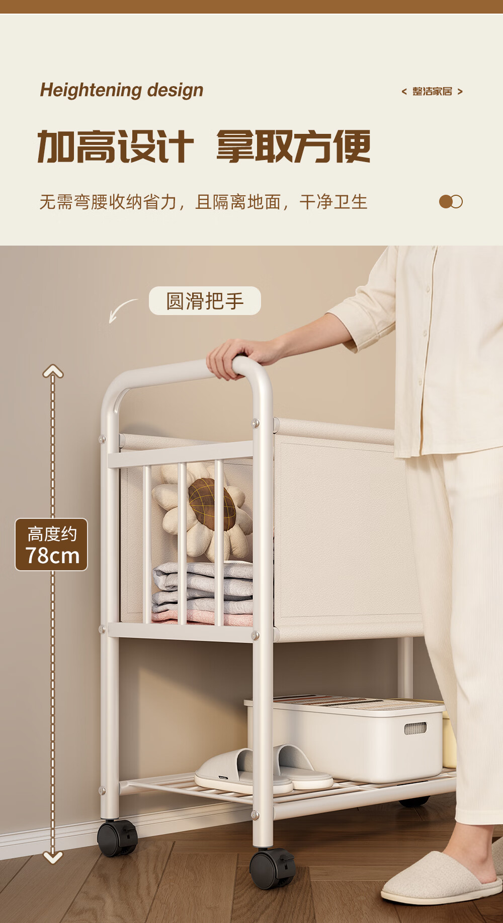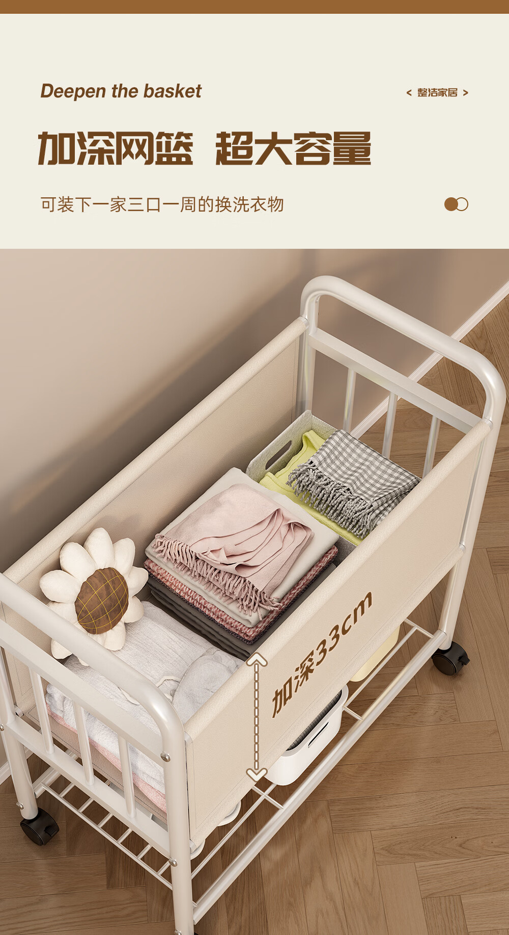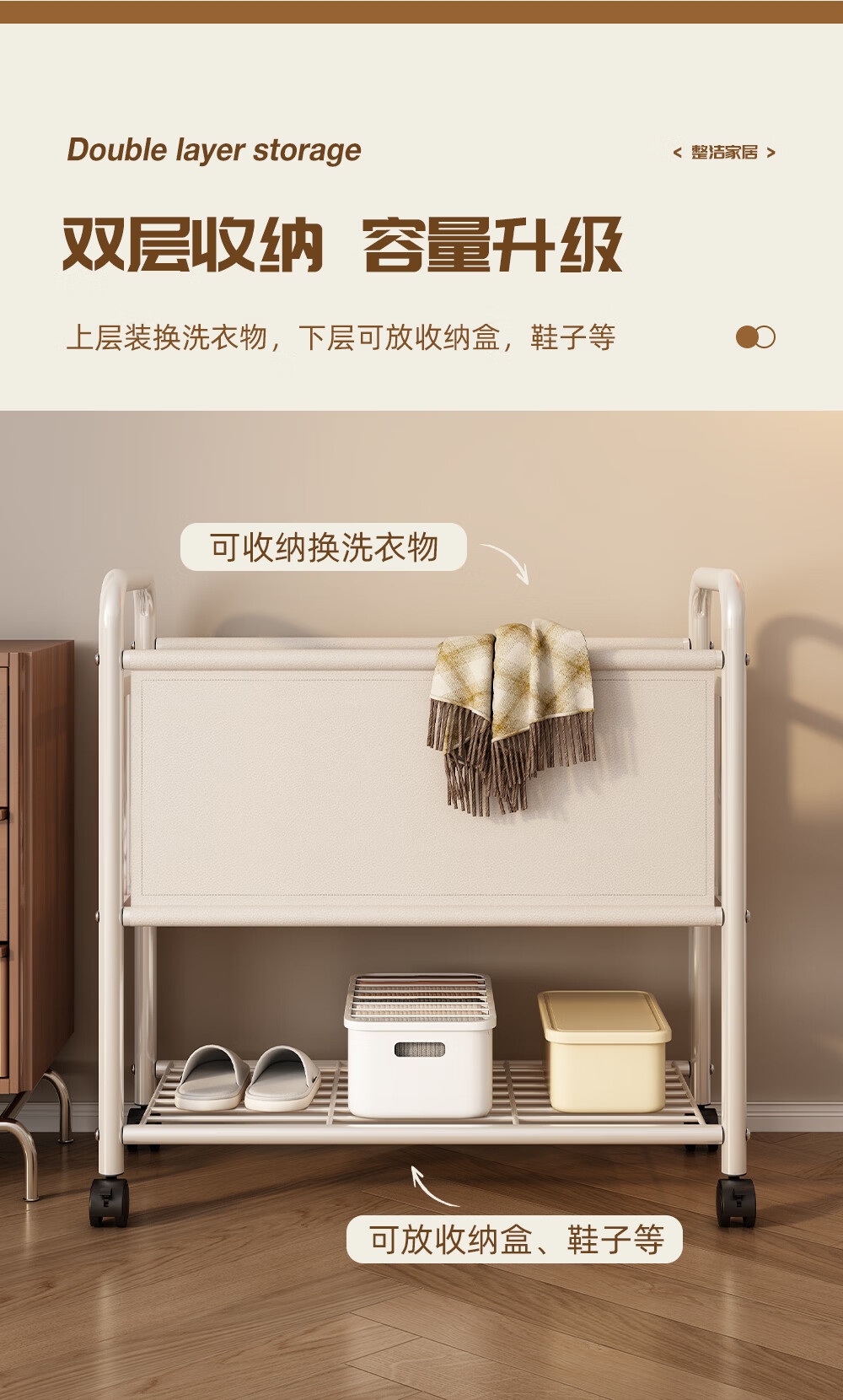 衣炫中古风脏衣篓网红脏衣篮家用洗衣篮大容量脏衣篓可移动收纳小推车 40CM【黑棕】 双层置物可移动