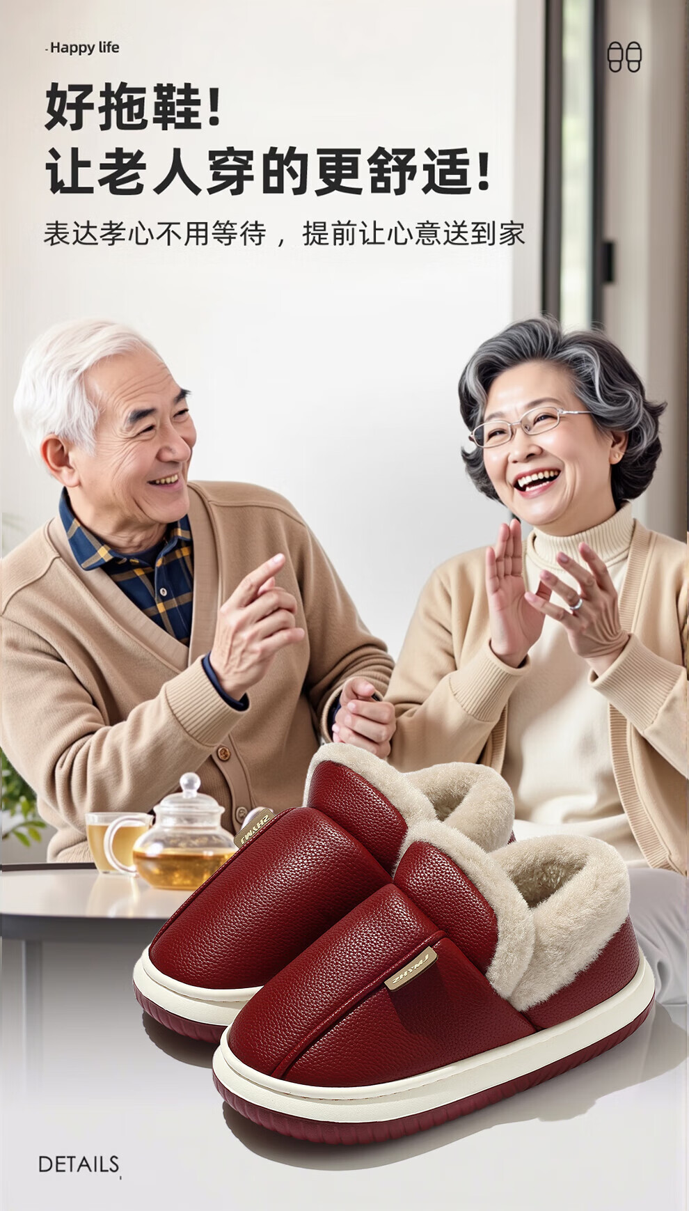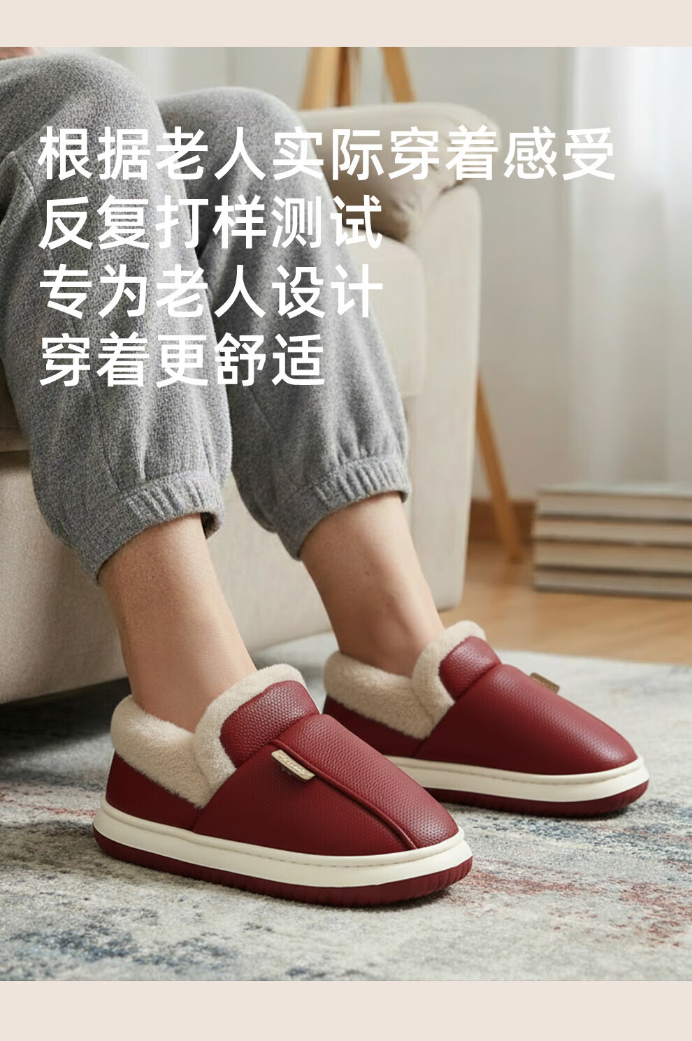 步瀛斋冬季棉鞋中老年加绒保暖老北京布鞋一脚蹬软底防滑爸爸鞋 黑色 42