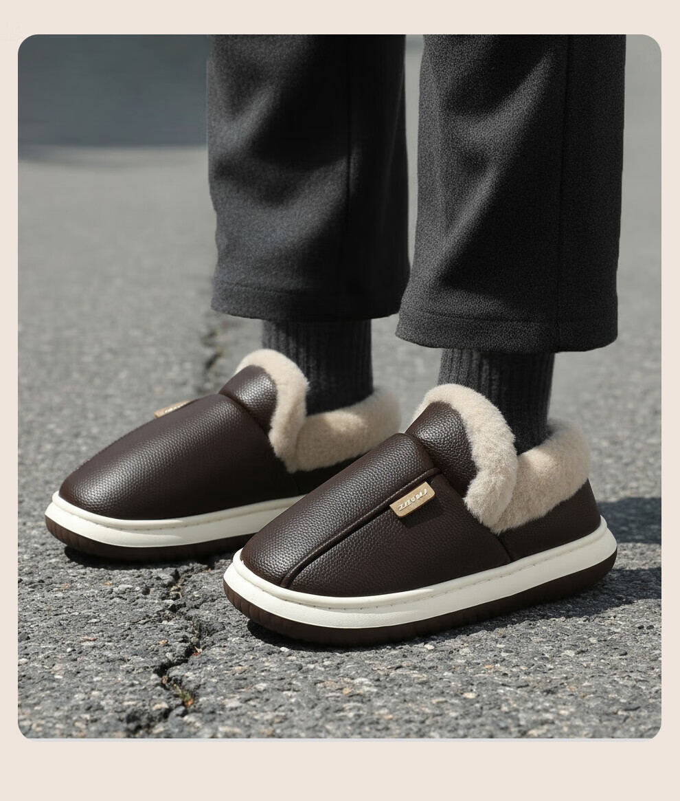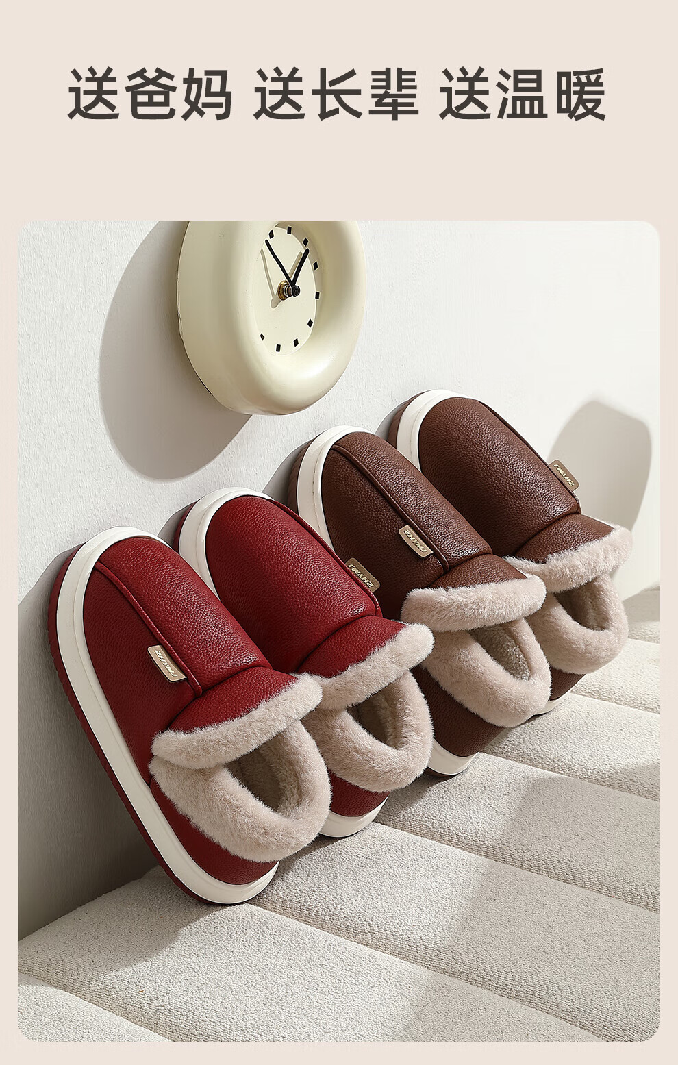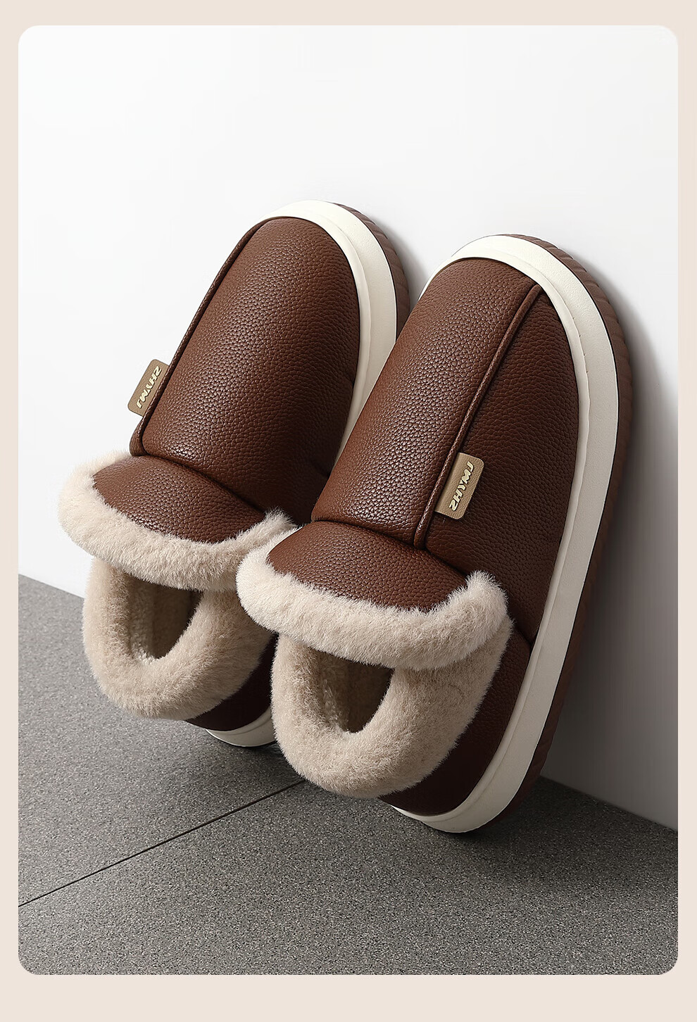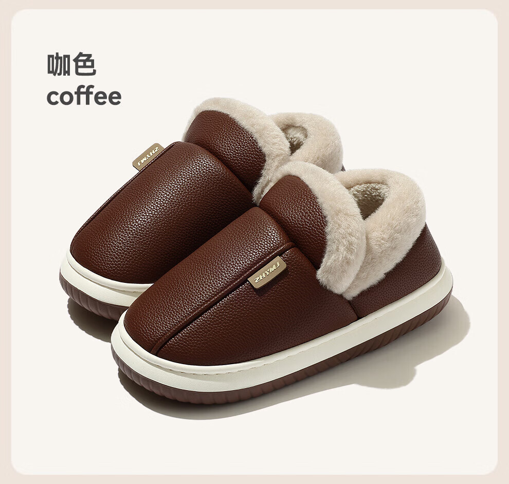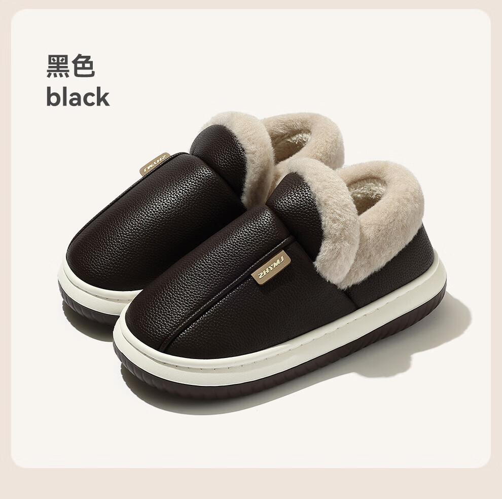 FZT冬季新款棉拖鞋女士加绒加厚保暖家居踩屎感可外穿包跟棉拖鞋男士 黑色 36-37 适合35-36