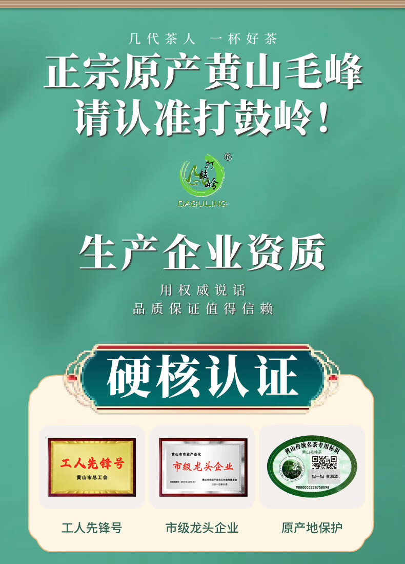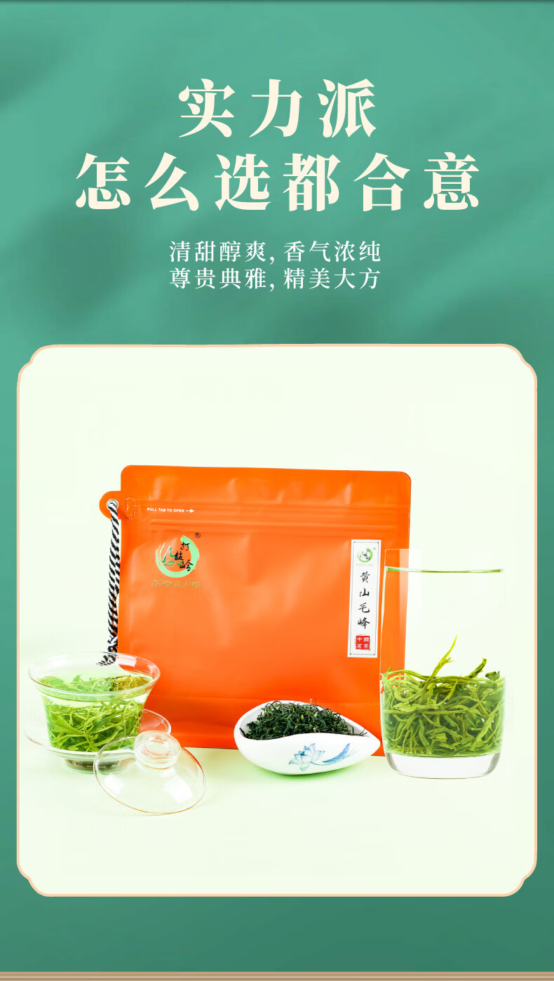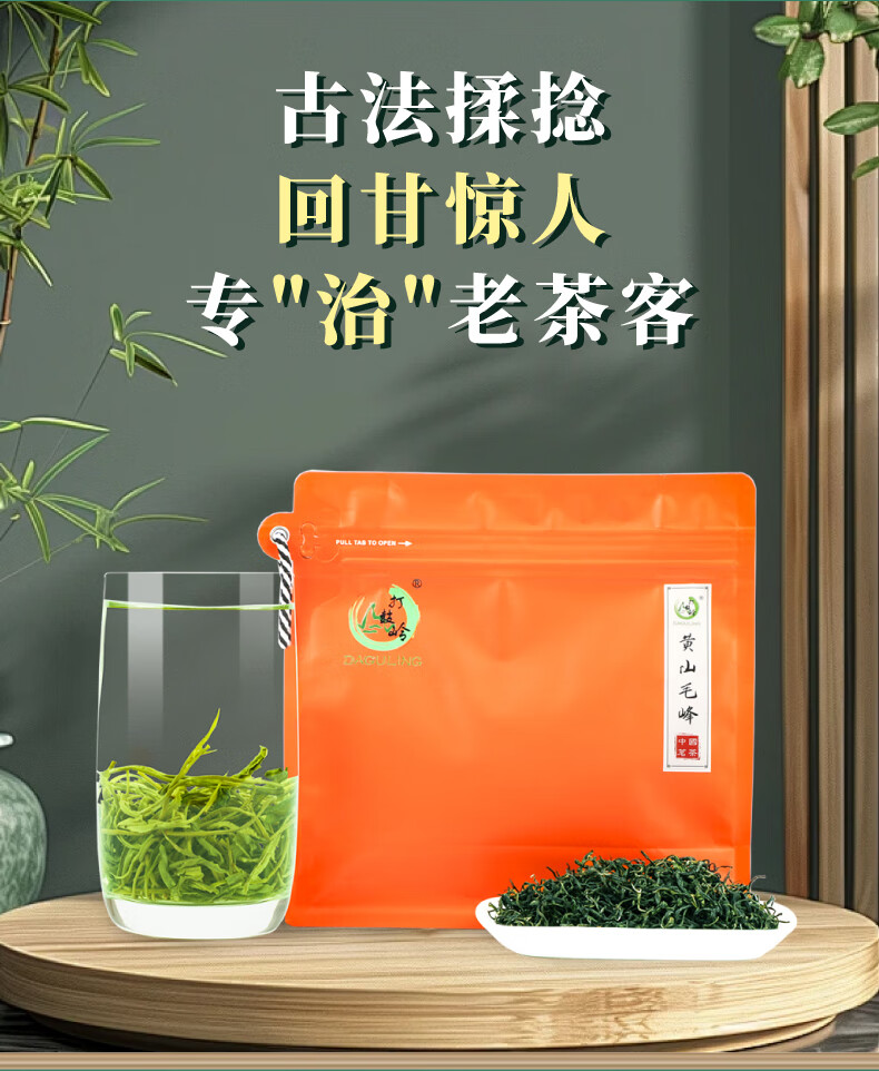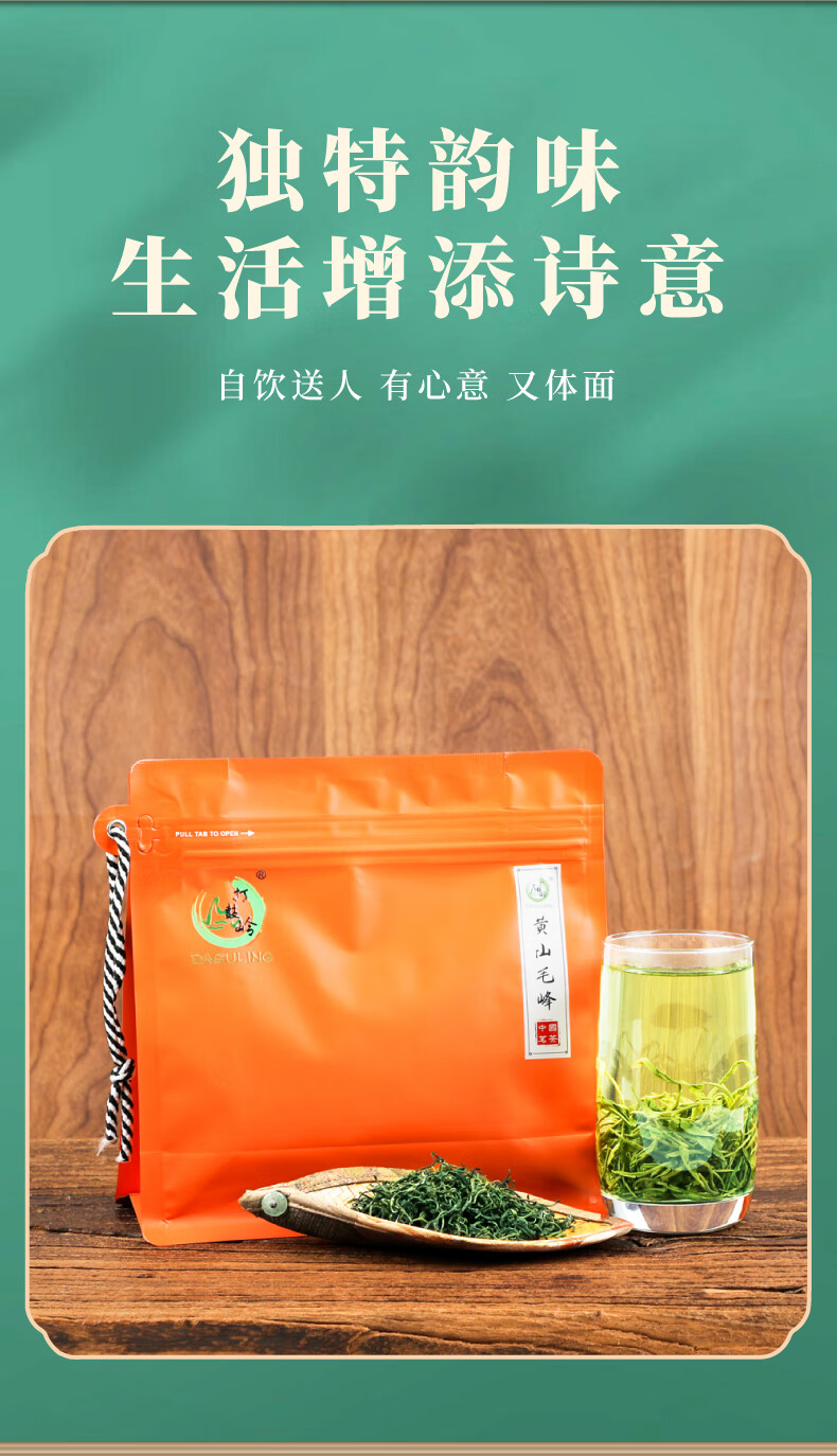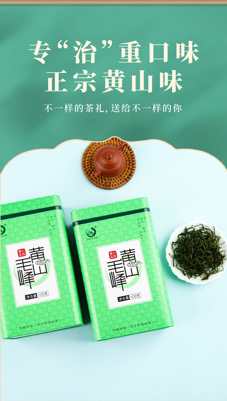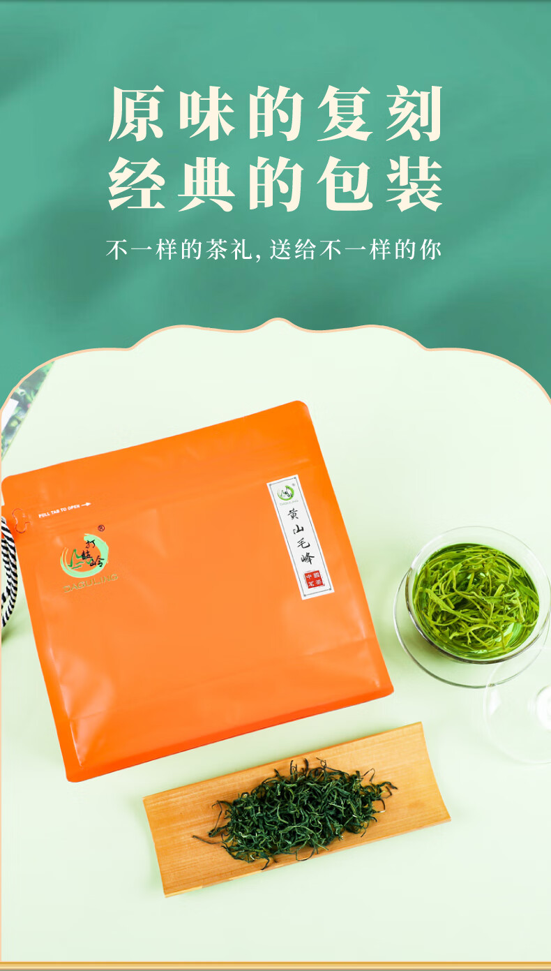打鼓岭 茶叶绿茶 揉捻型黄山毛峰春茶新茶 专“治”老茶客 茶叶自己喝 200克(100g*2)送礼袋