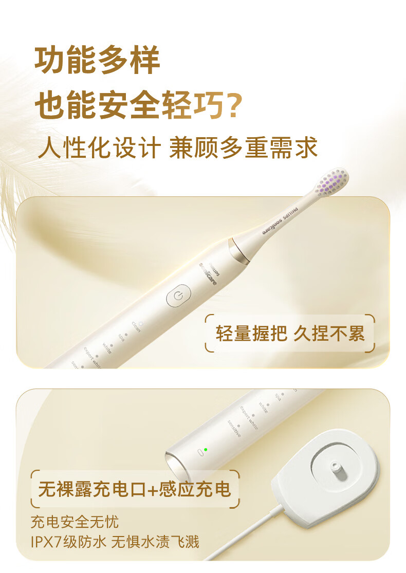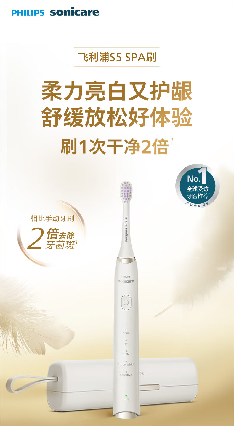 飞利浦(PHILIPS)电动牙刷SPA水疗刷S5 年货节礼物 情人节情侣送男生/女友5种模式柔力亮白护龈HX2491白2451升级款