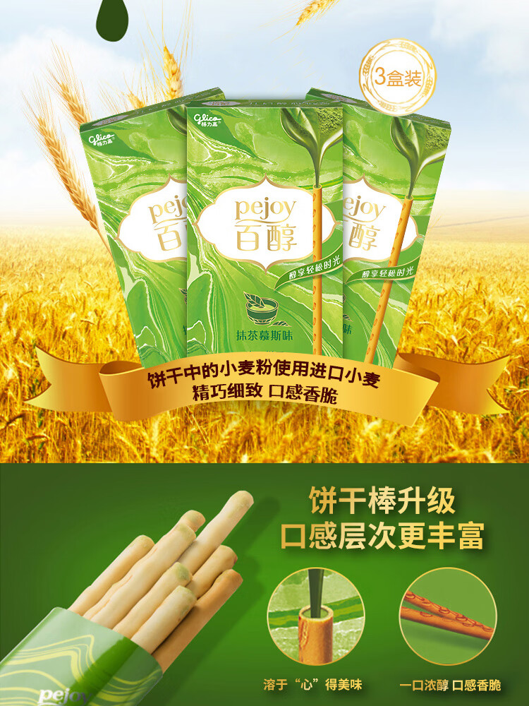 格力高(glico)百醇系列 百醇抹茶慕斯味48g*3盒 注心饼干零食礼物