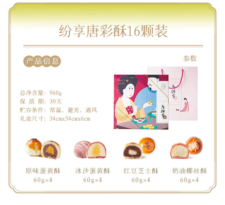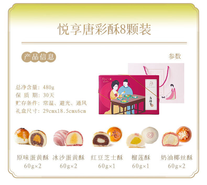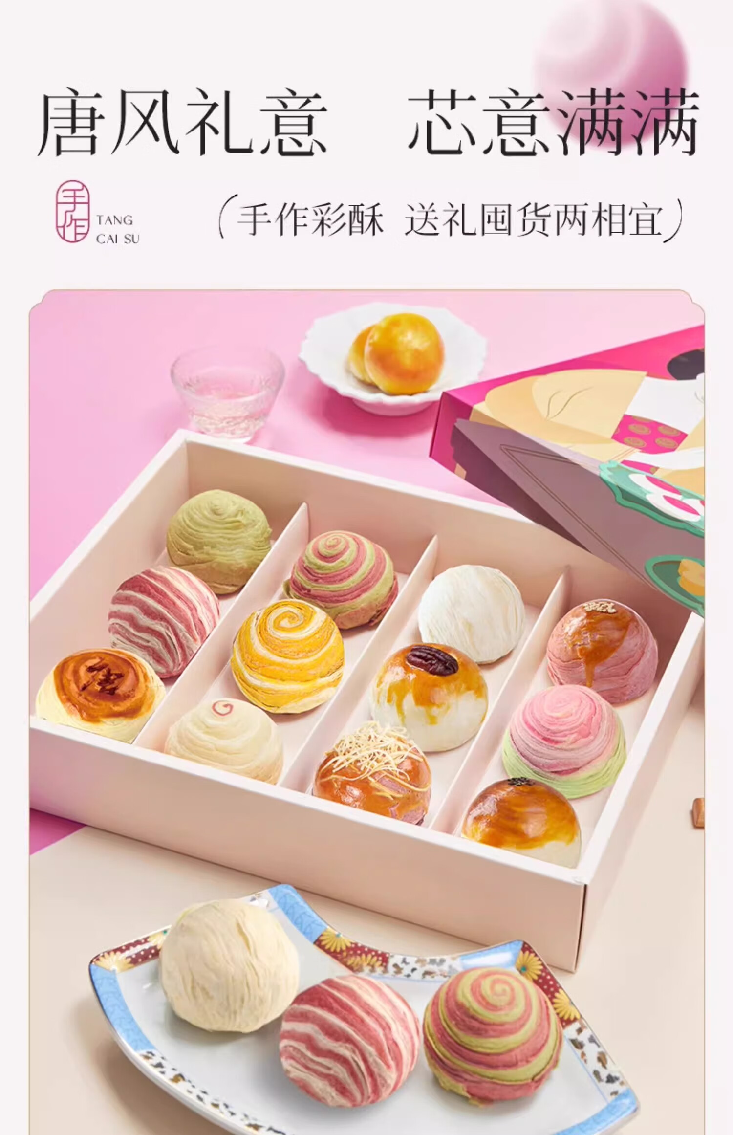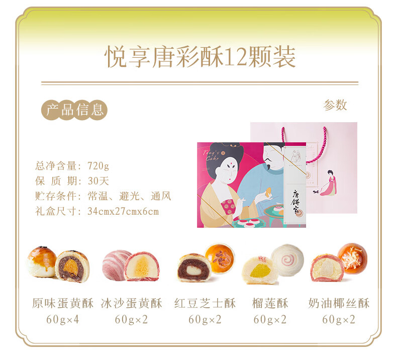 唐饼家糕点礼盒蛋黄酥上海特产点心零食下午茶小吃团购送礼伴手礼 悦享唐彩酥礼盒12枚共720g