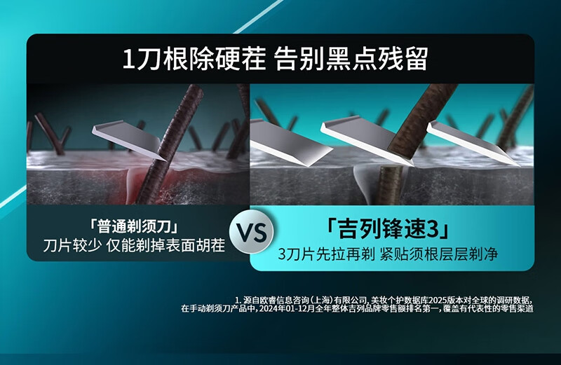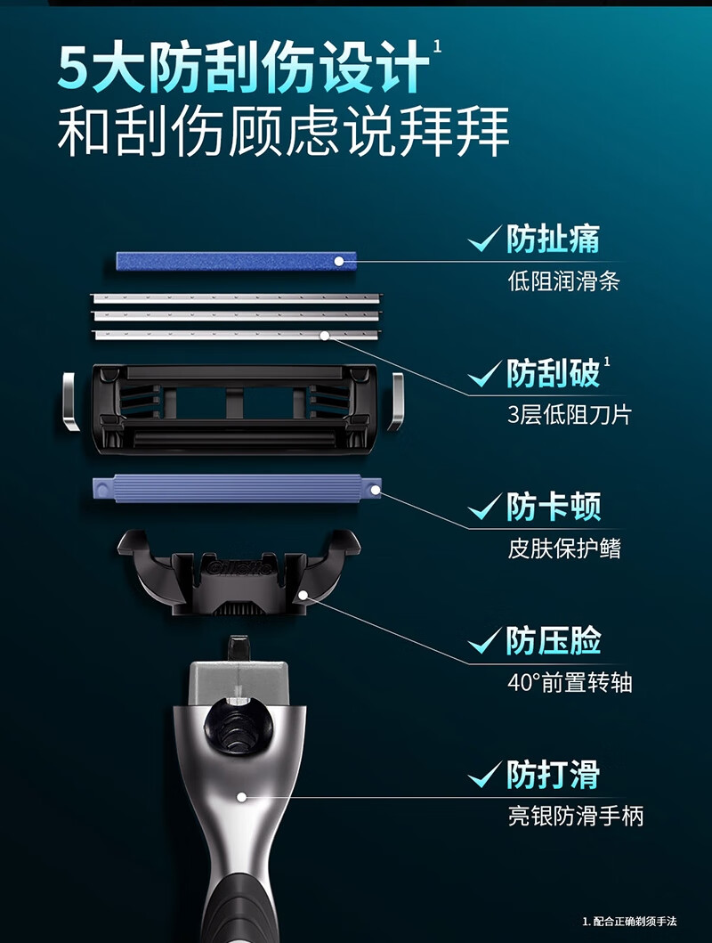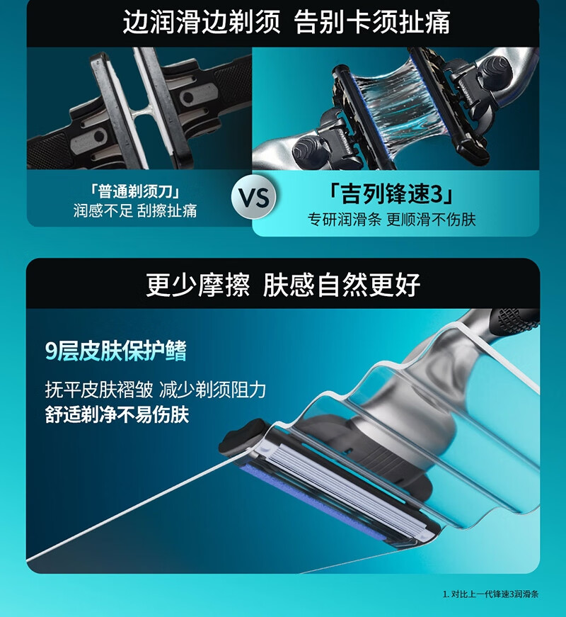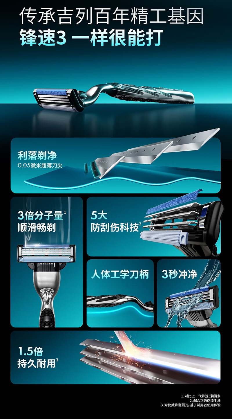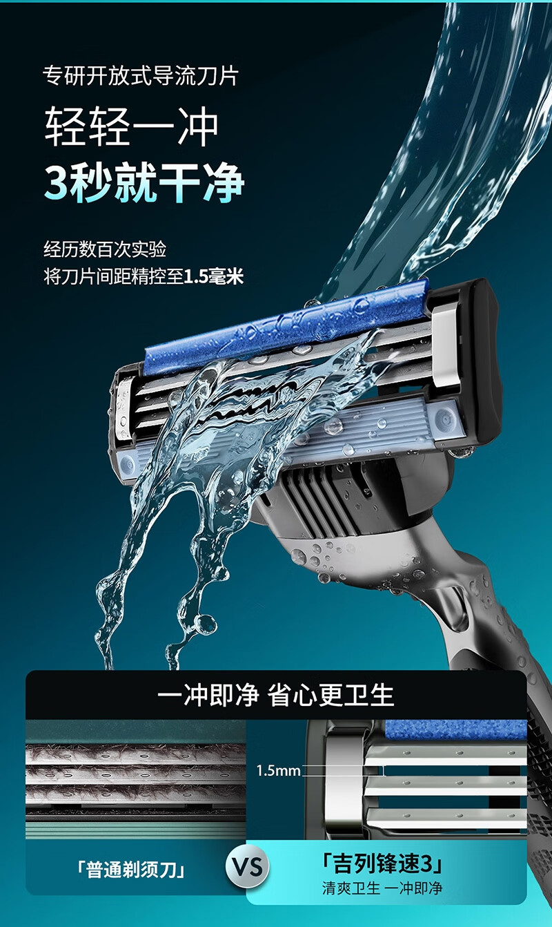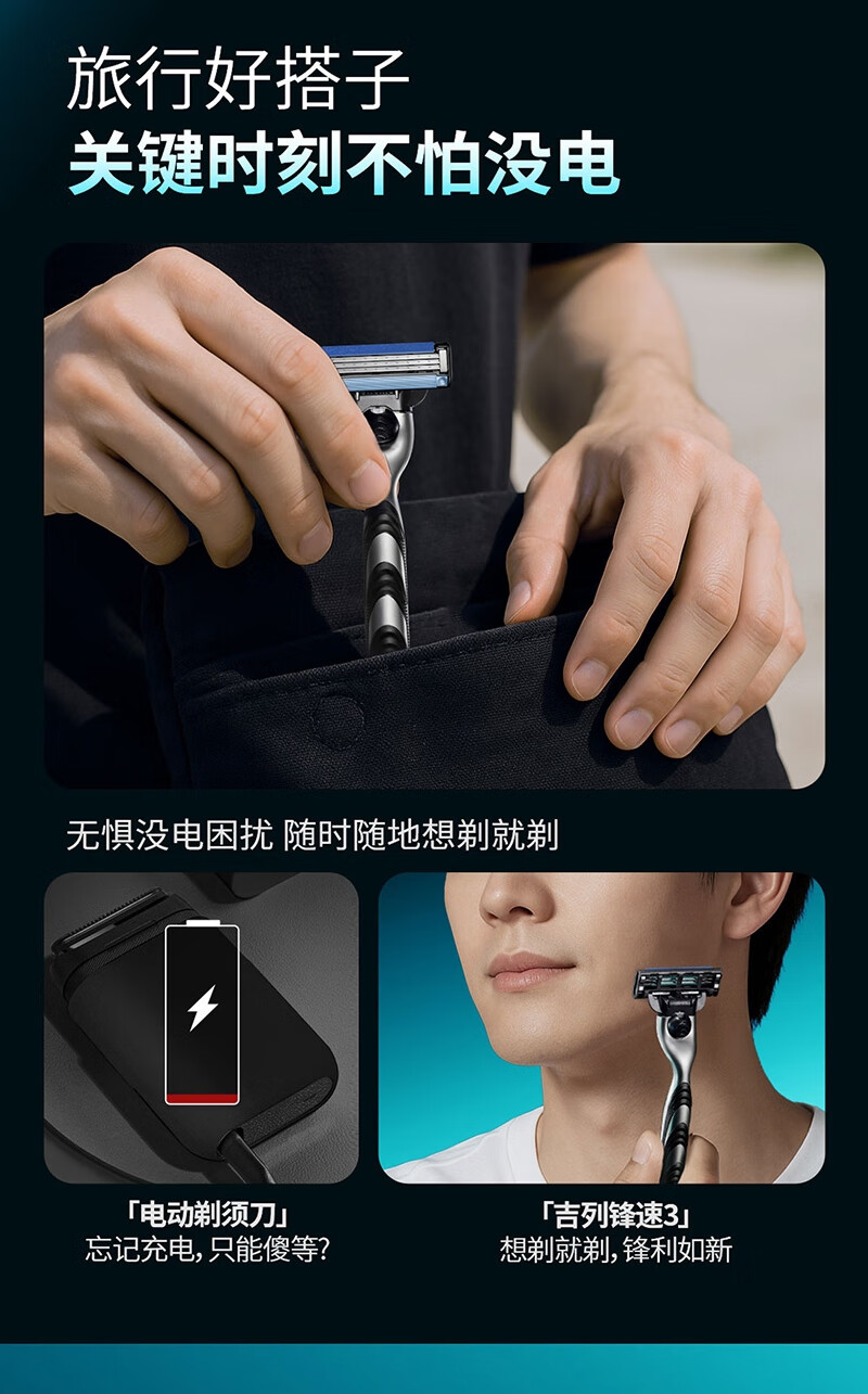 吉列锋速3经典 剃刮胡须刀手动便携款 1刀架4刀头 3层刀片男士情人节礼物 京东自营旗舰 非吉利 年货