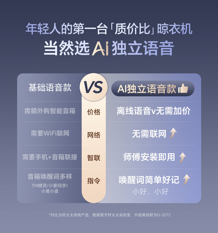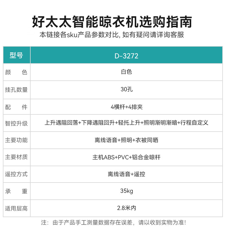 好太太(Hotata)【国家补贴】智能晾衣机隐形超薄升降电动晾衣架D-3272离线语音