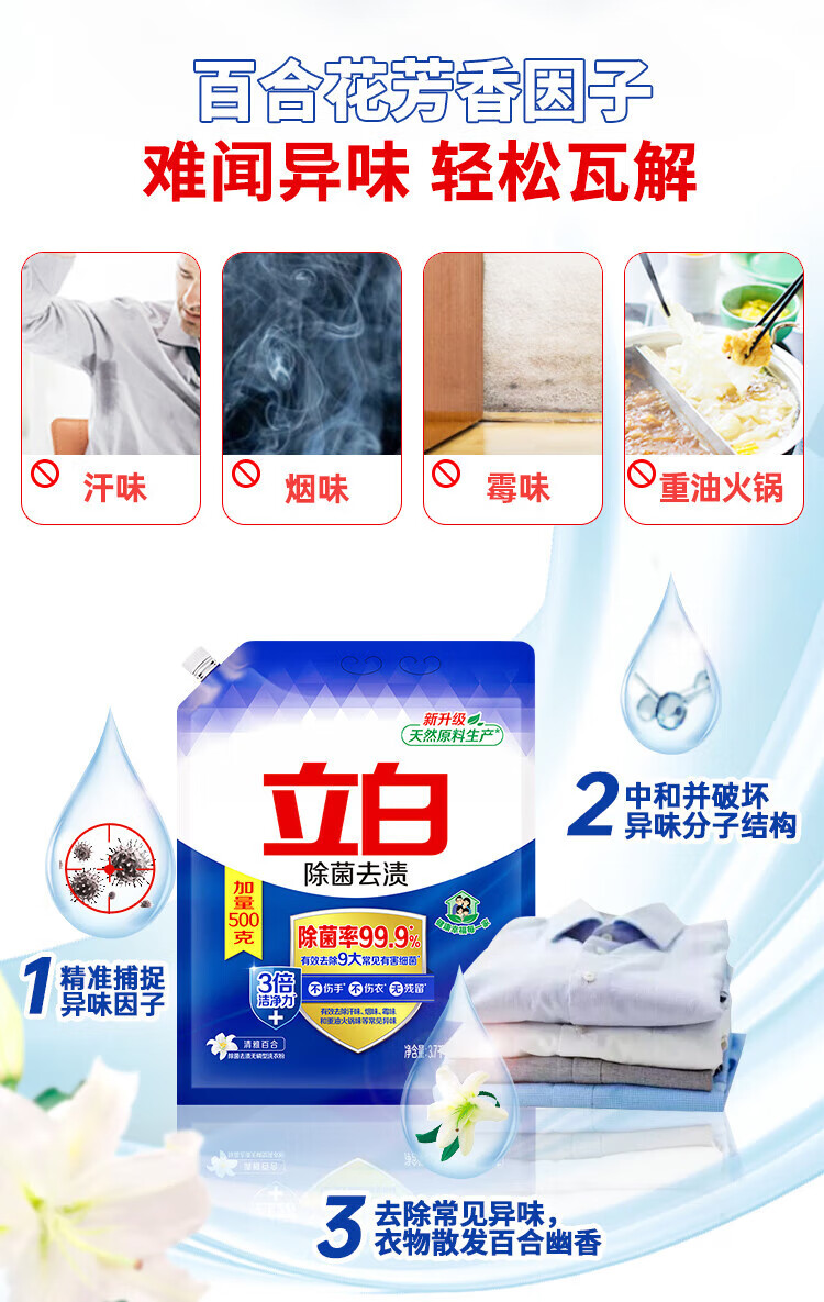 立白除菌去渍洗衣粉99.9%除菌率3倍洁净除异味留香洗衣粉校服净家用 【3倍洁净】除菌去清洗衣粉450g