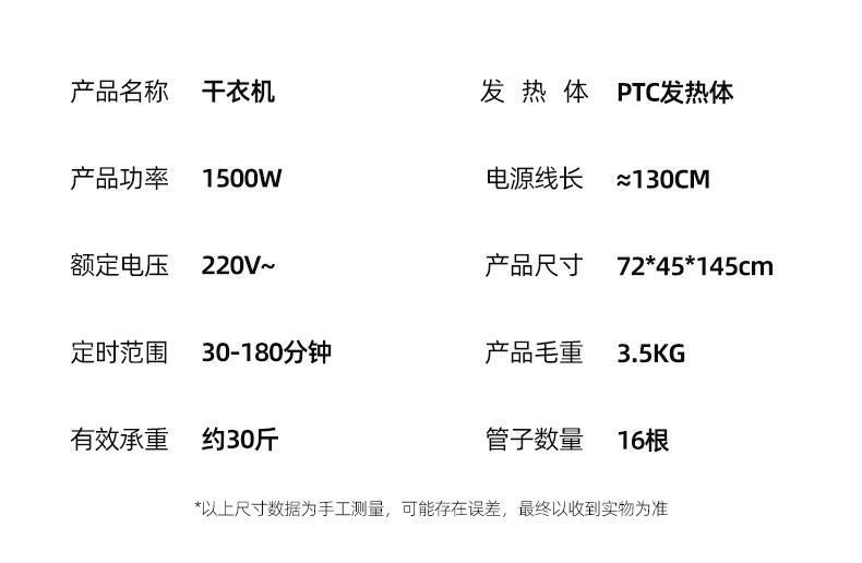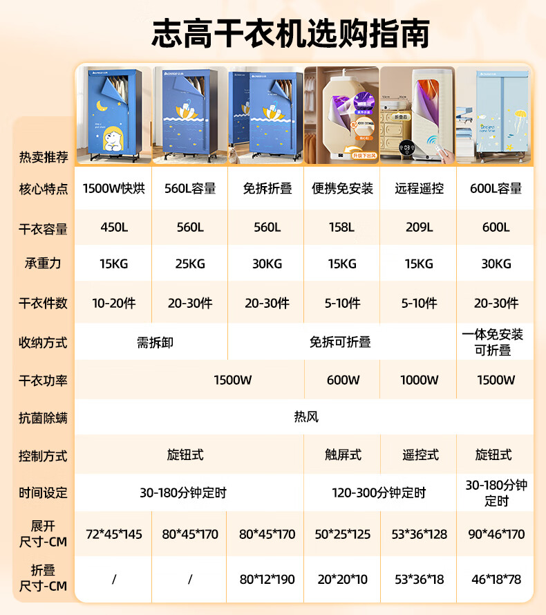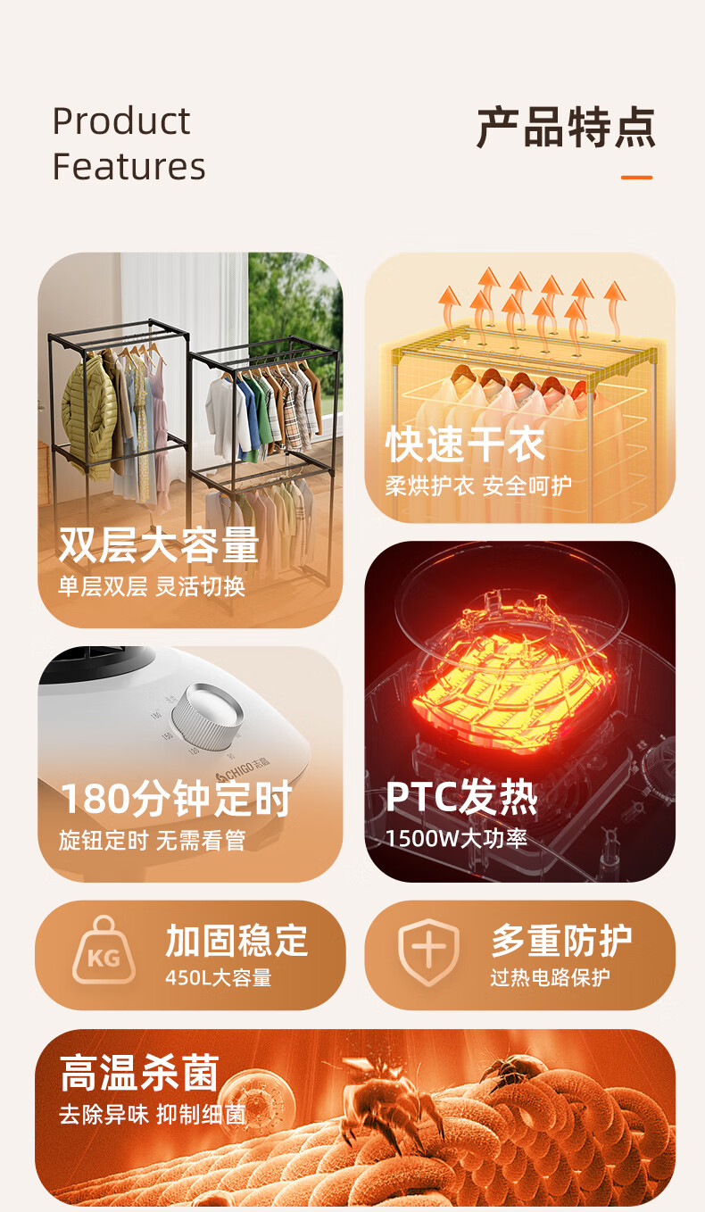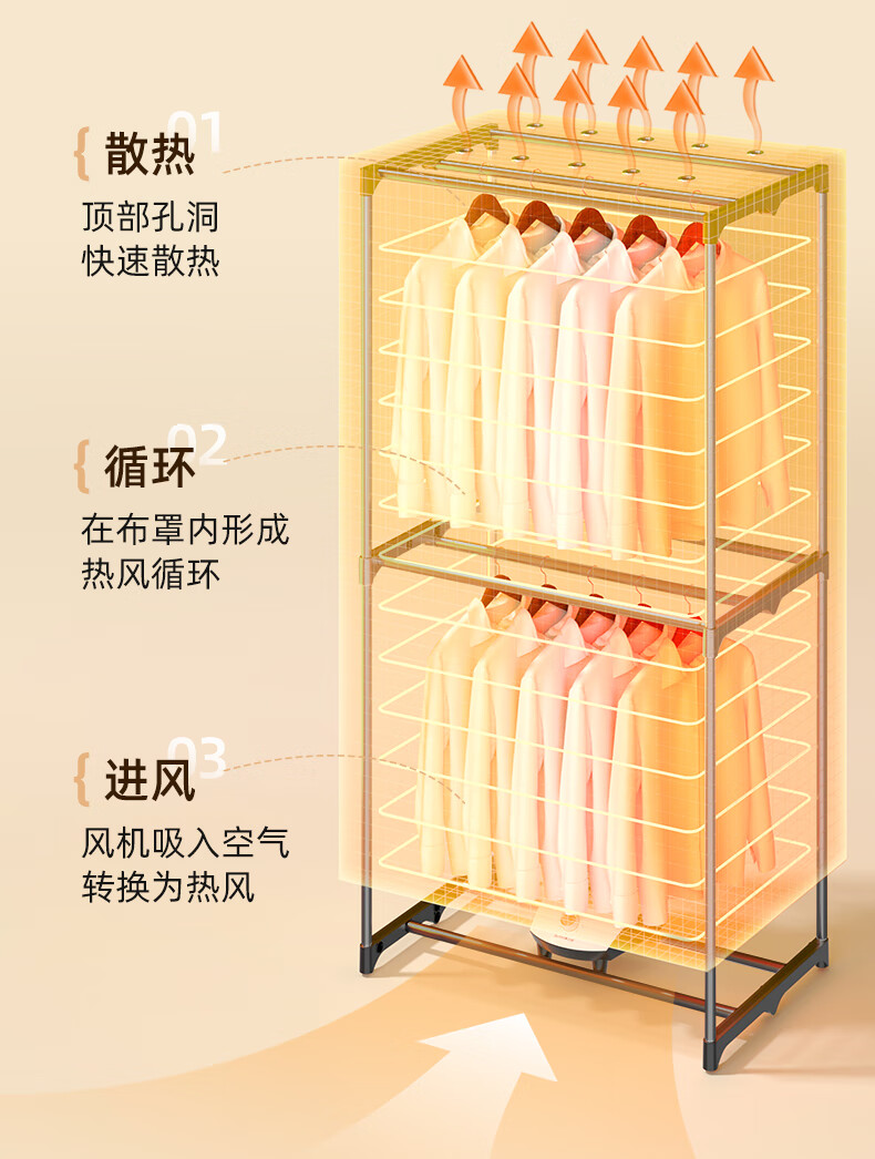 志高(CHIGO)【1500W快烘+450L】干衣机家用烘干机烘衣机烘衣服神器婴儿衣物暖风风干机大容量定时烘干衣柜JT16