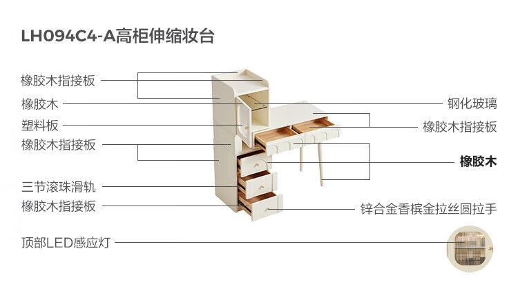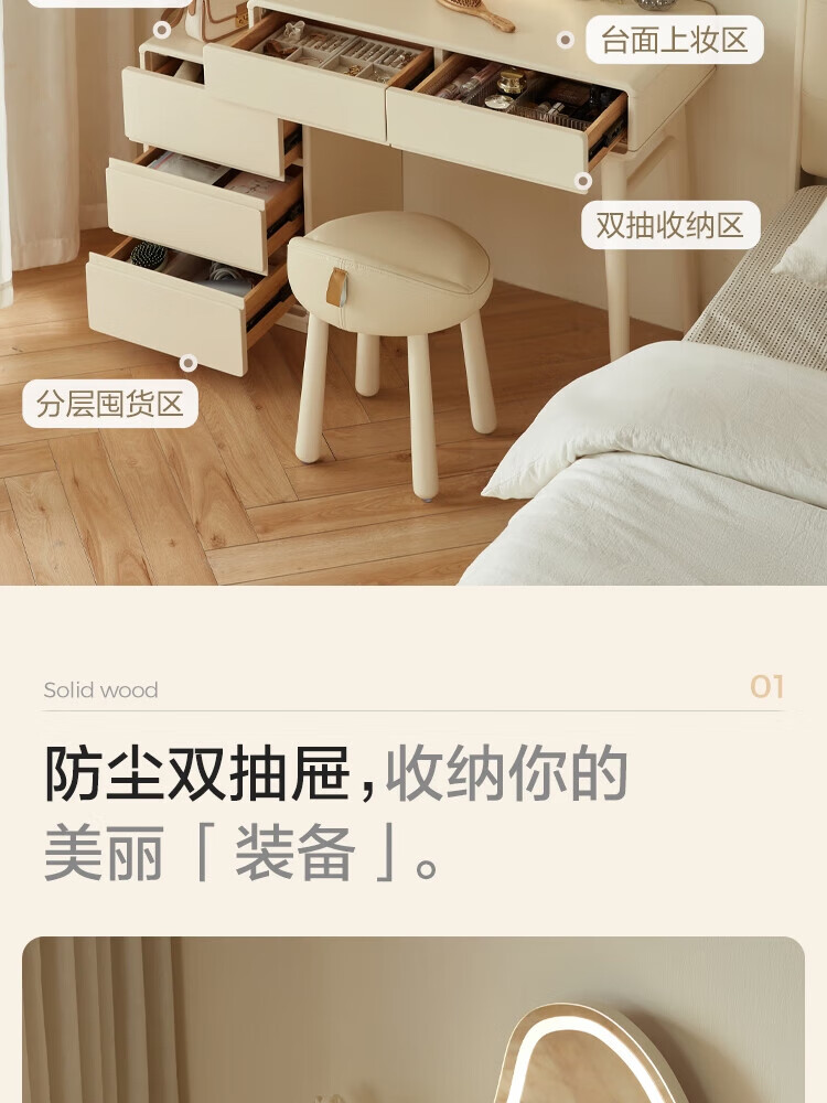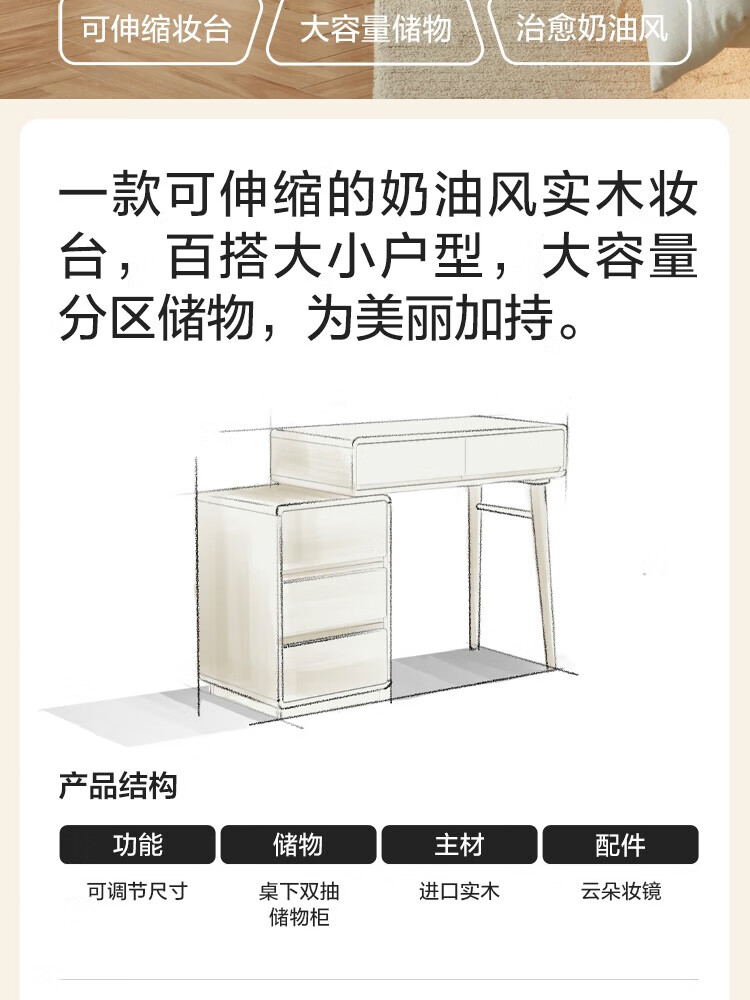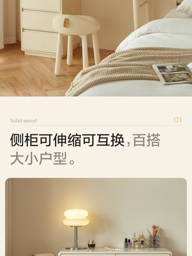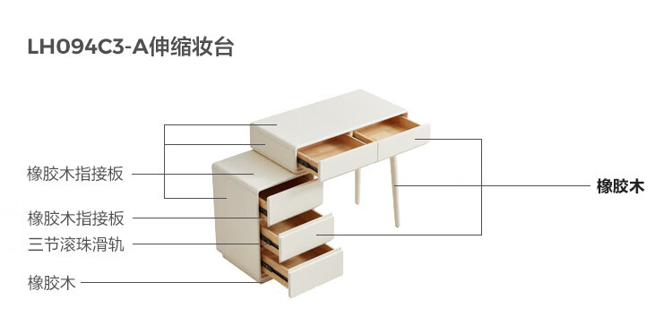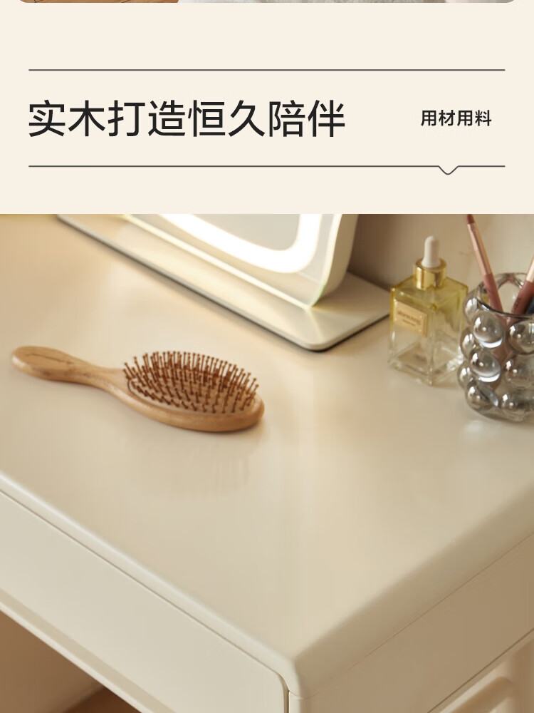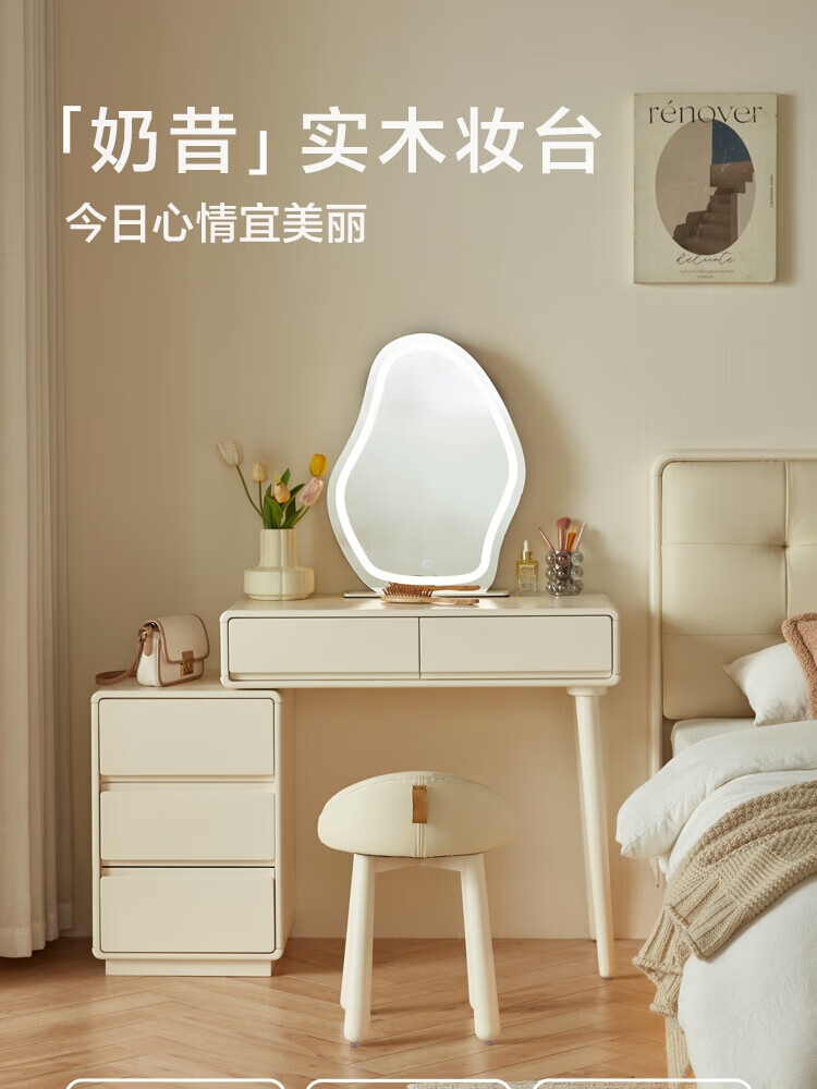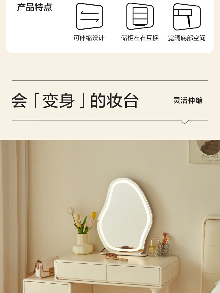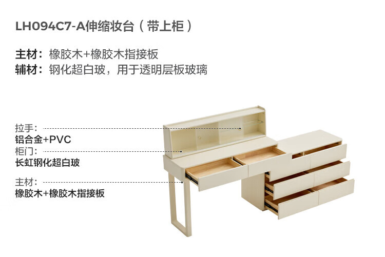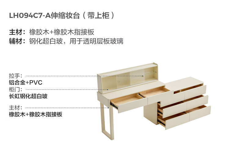 林氏家居奶油风实木梳妆台卧室斗柜一体可选小型化妆桌凳白月光系列LH094 【全实木】伸缩梳妆台C3