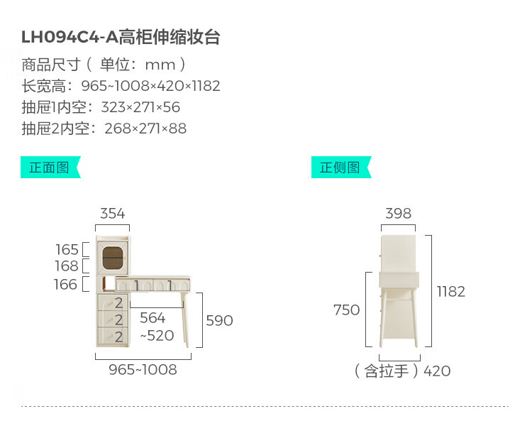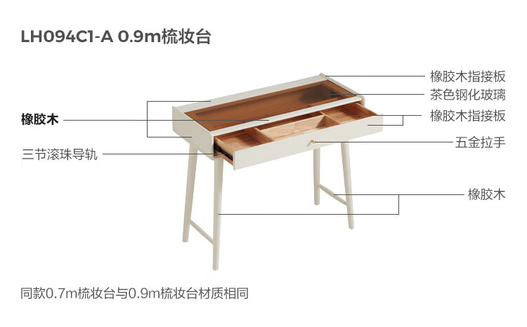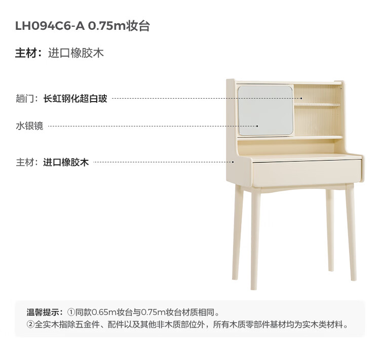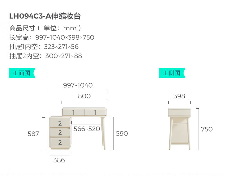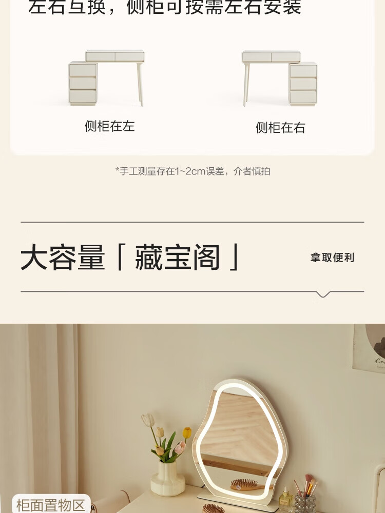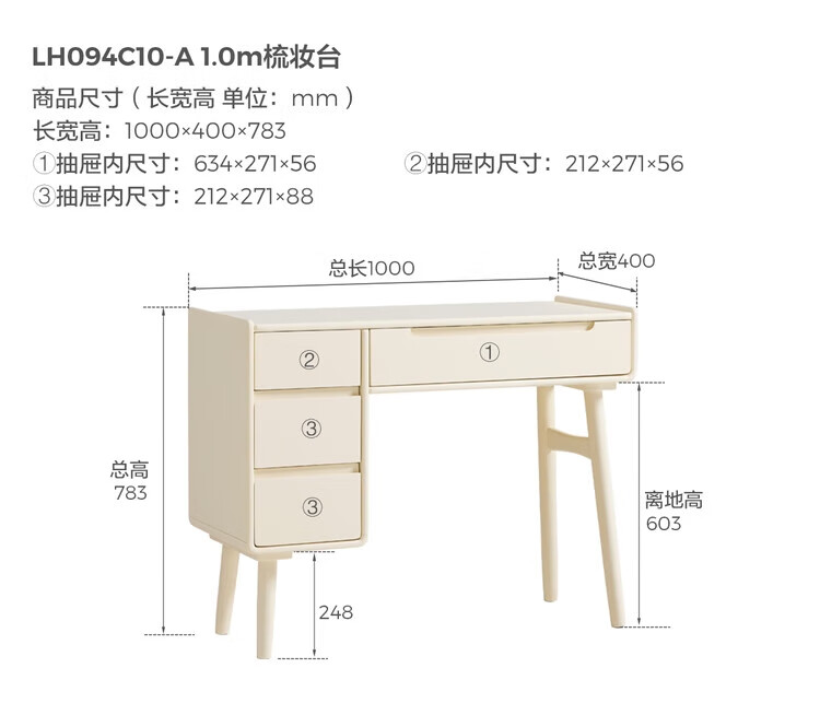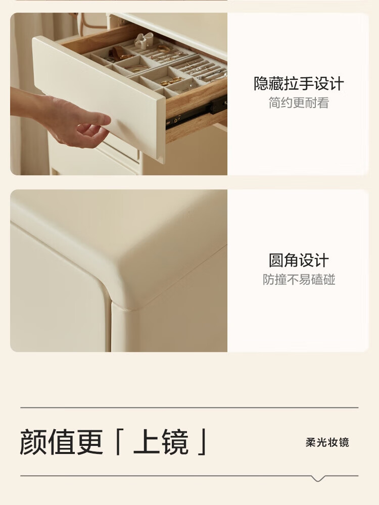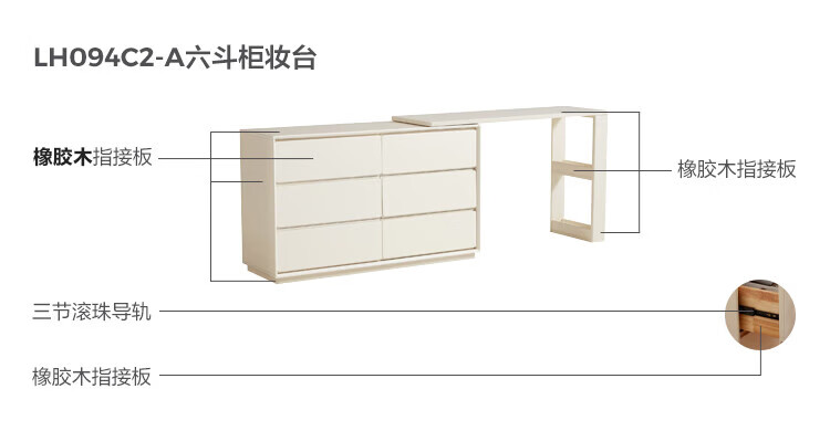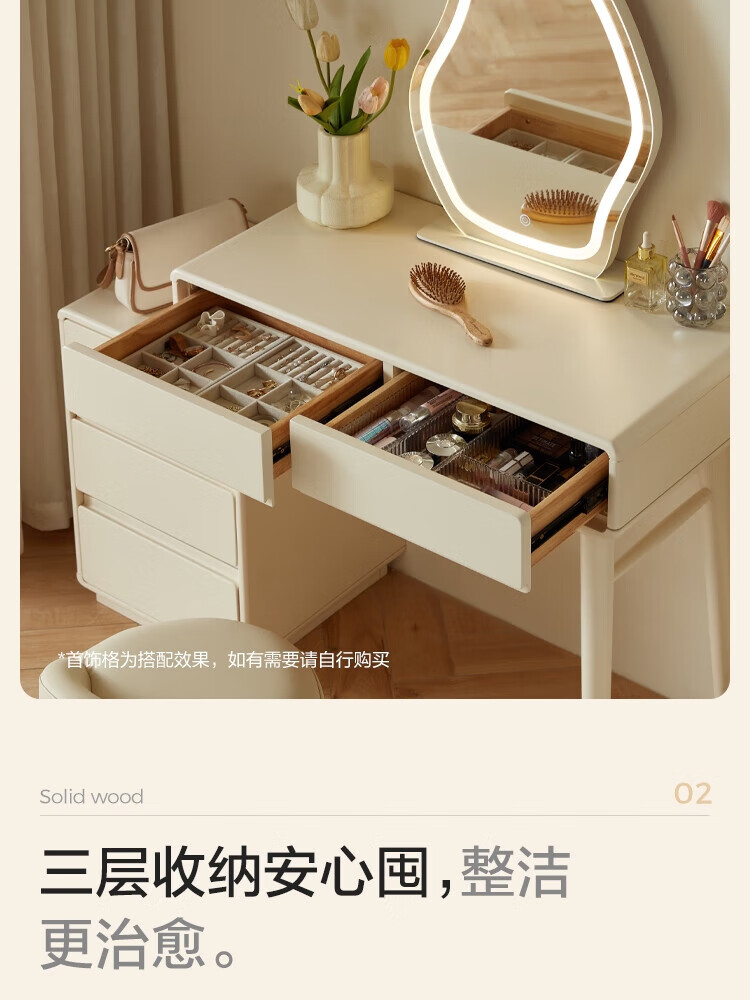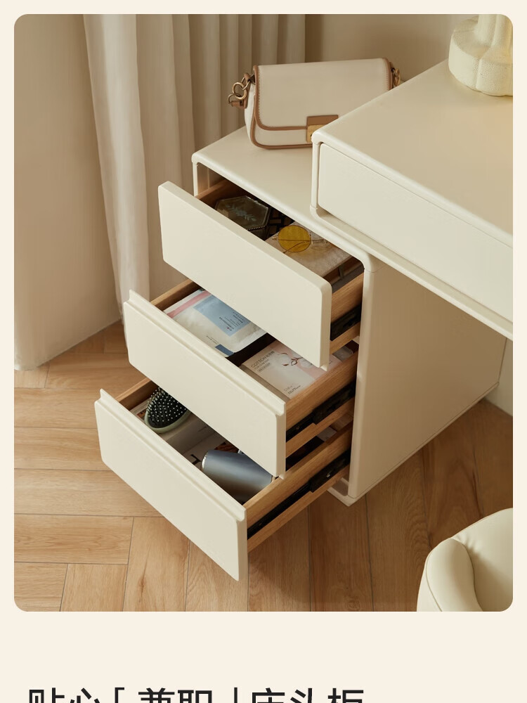林氏家居奶油风实木梳妆台卧室斗柜一体可选小型化妆桌凳白月光系列LH094 【全实木】伸缩梳妆台C3