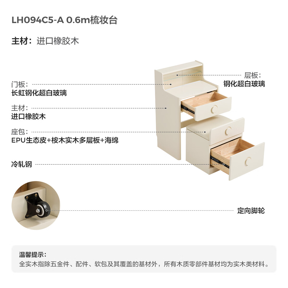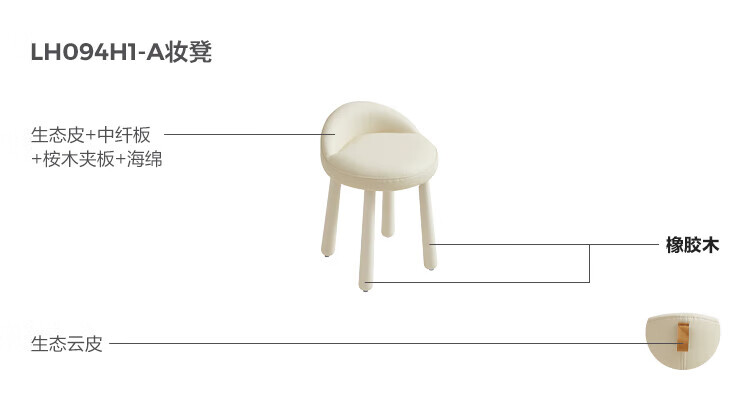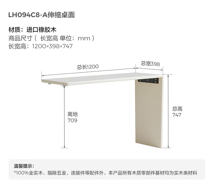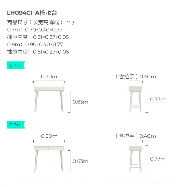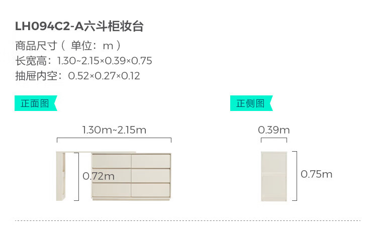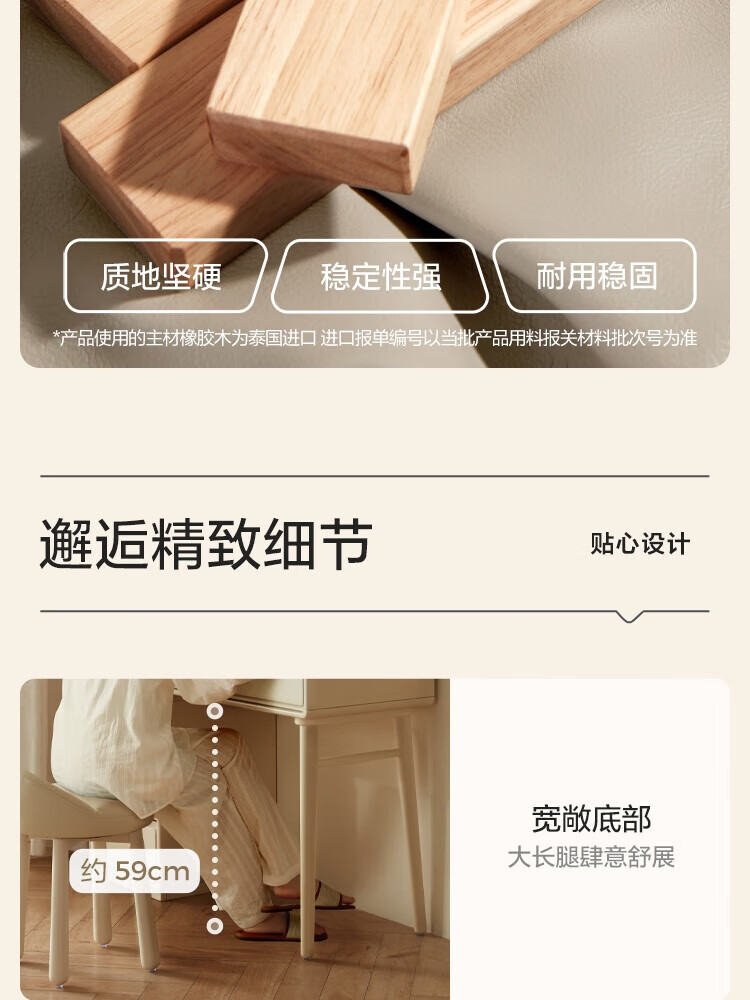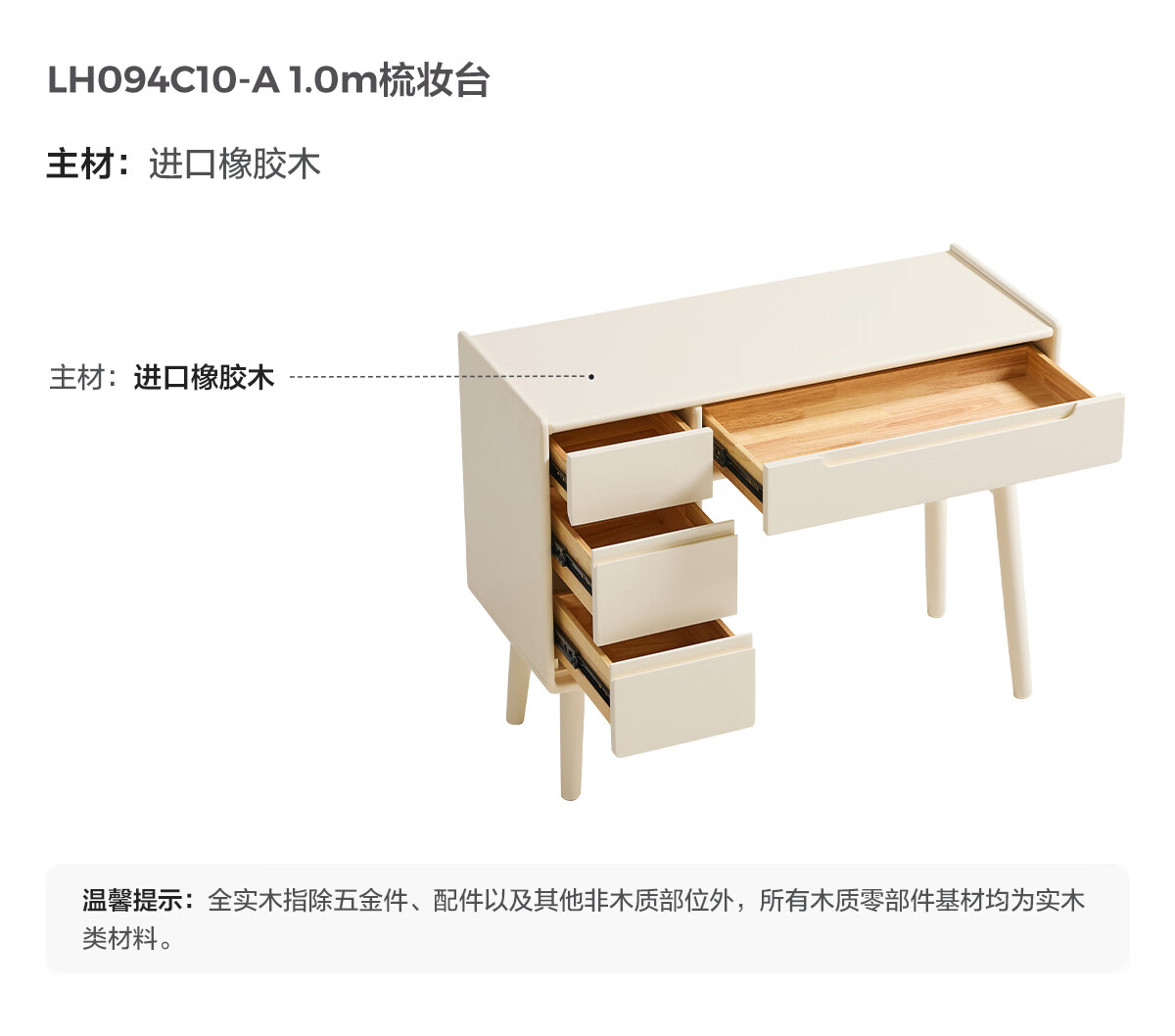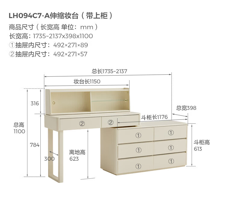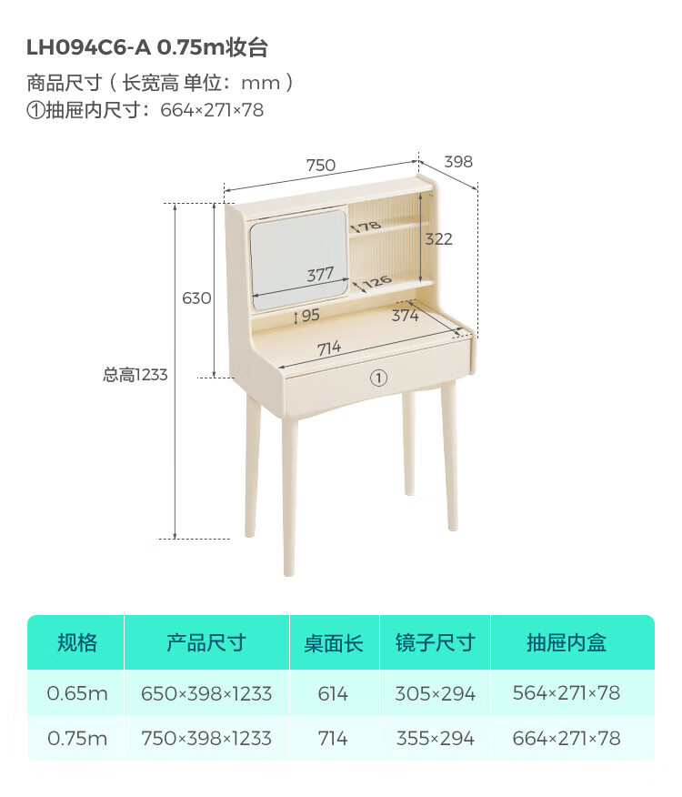 林氏家居奶油风实木梳妆台卧室斗柜一体可选小型化妆桌凳白月光系列LH094 【全实木】伸缩梳妆台C3