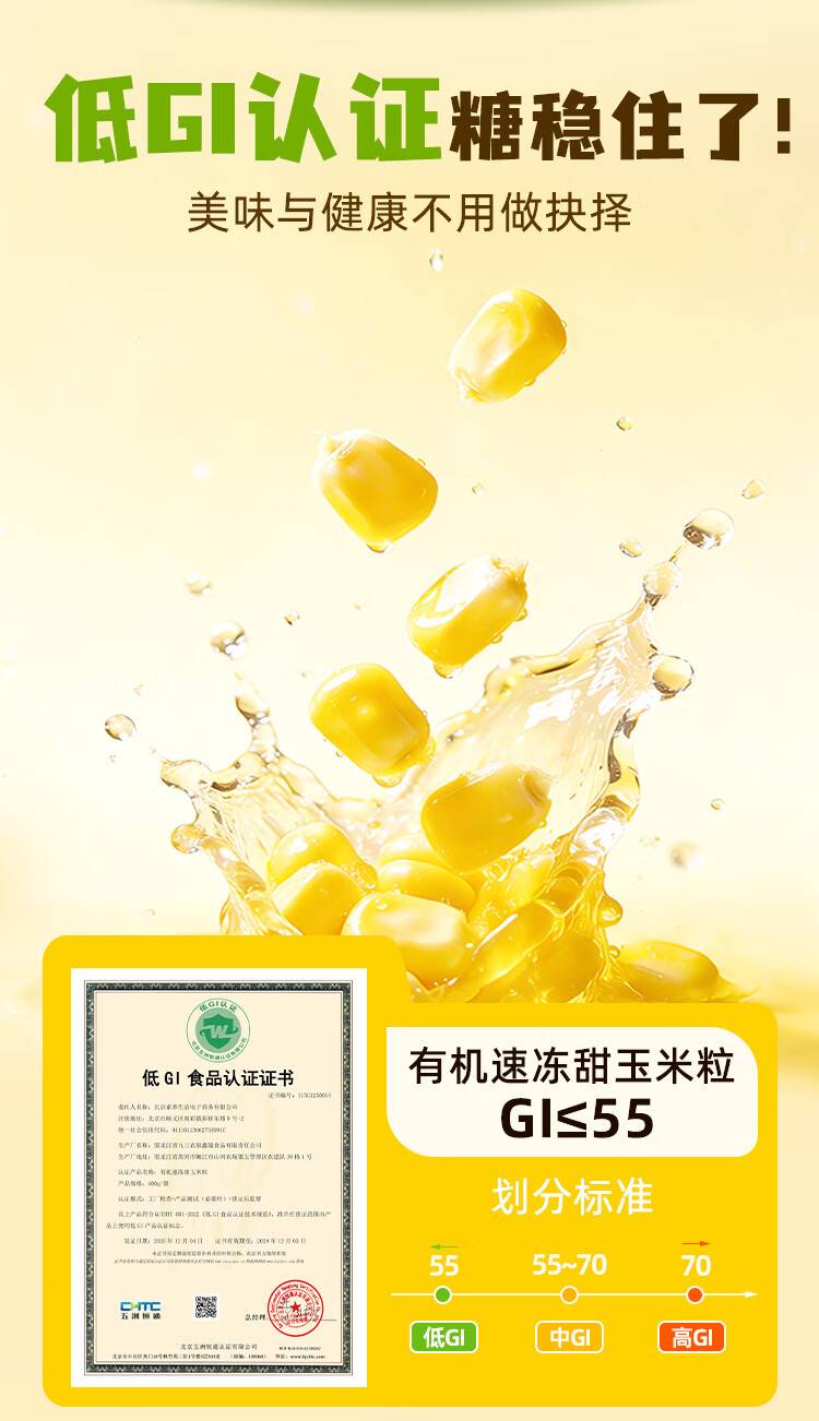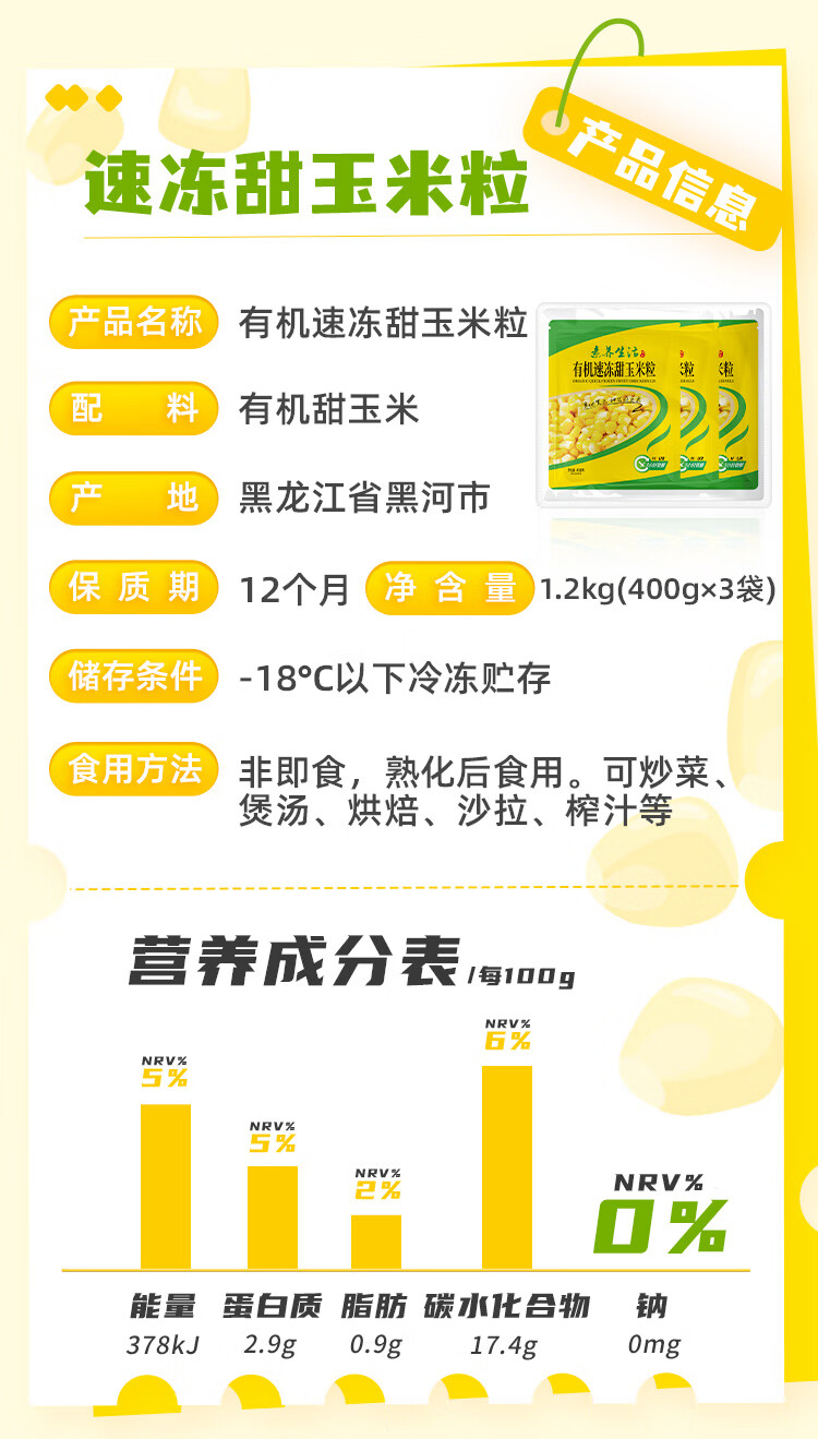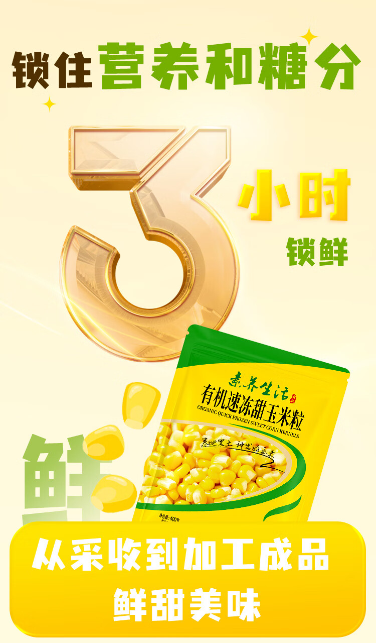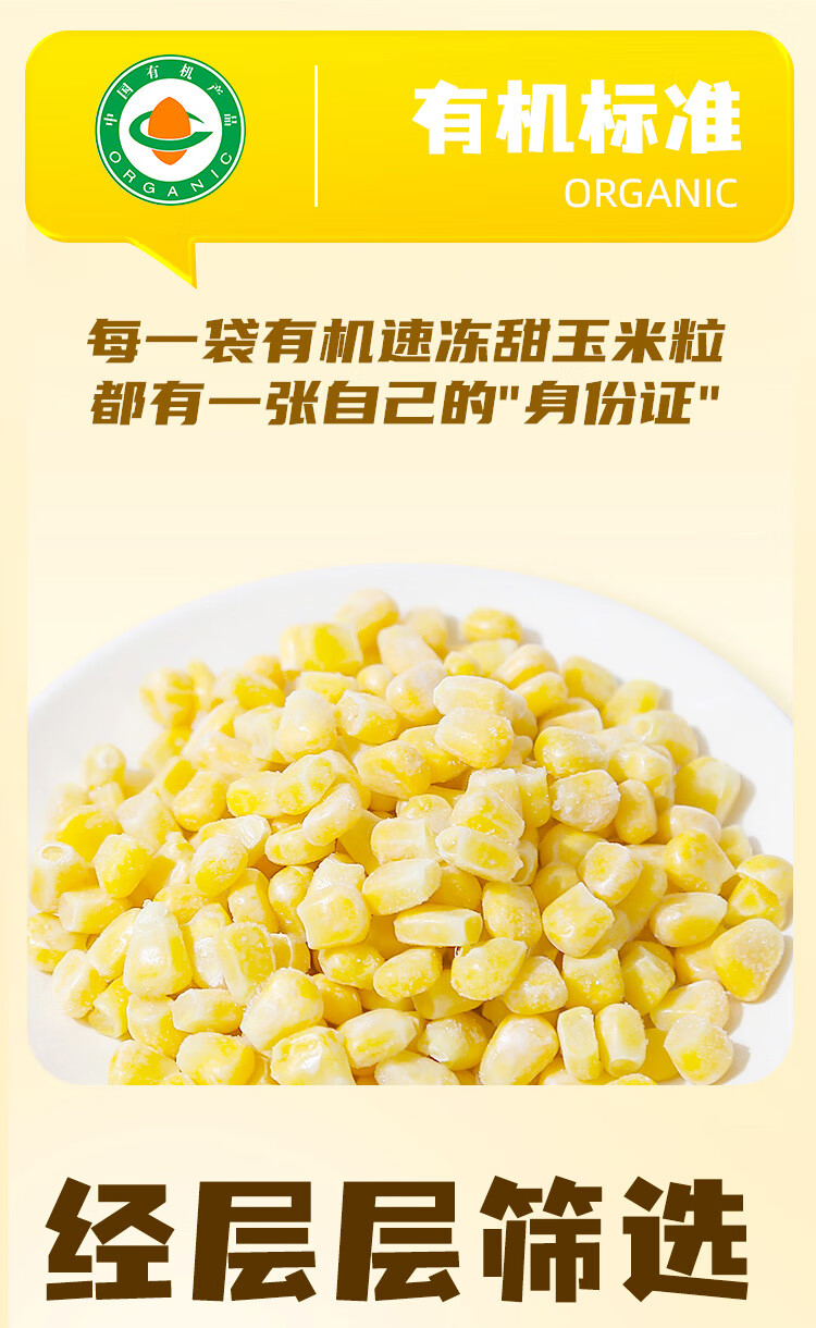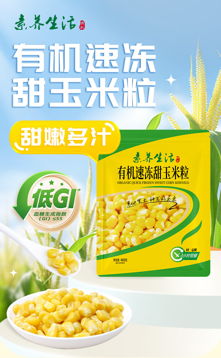 素养生活 有机速冻甜玉米粒1.2kg(400g*3)冷冻蔬菜 低GI认证玉米