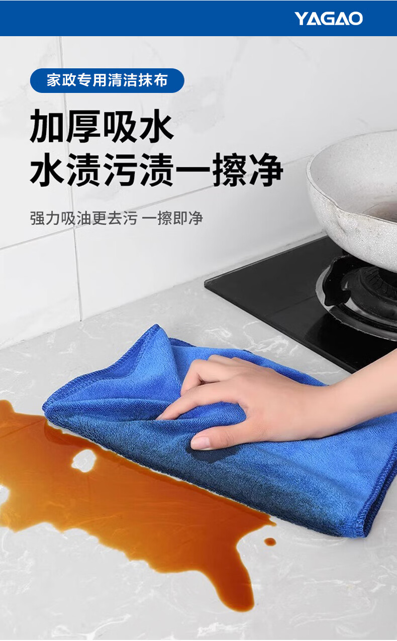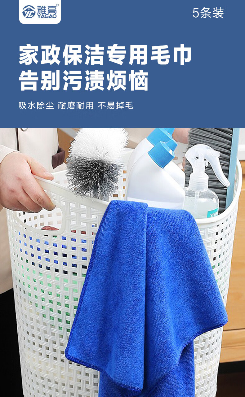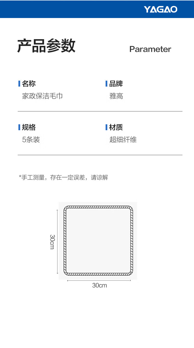 雅高抹布30*30CM5条装厨房家政抹布洗碗洗车毛巾加厚保洁家务清洁